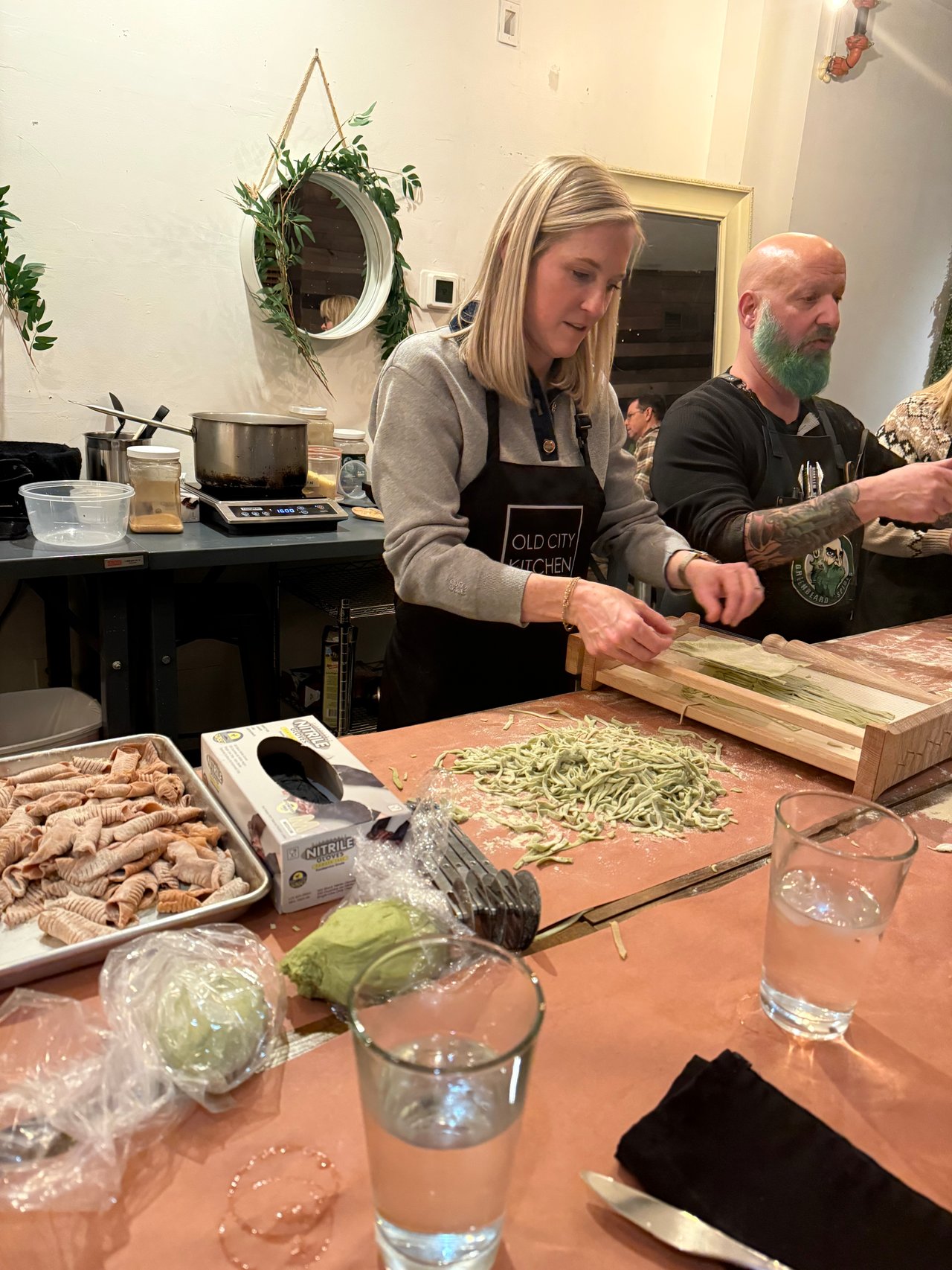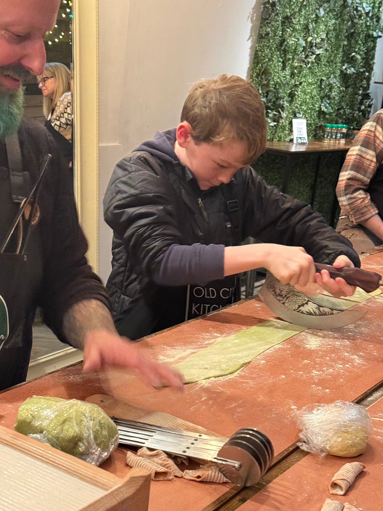 One of the highlights was a family pasta-making class at Old City Kitchen, and it truly exceeded expectations. From the moment we started, it was clear this wasn’t a class where kids just stand back and watch. They were fully involved in every step of the process. Rolling the dough, running it through the pasta machines, shaping different types of pasta, stirring sauces, using fun kitchen tools, and even learning basic knife skills with close supervision. They were trusted to actually do the work, which made them feel capable and proud.