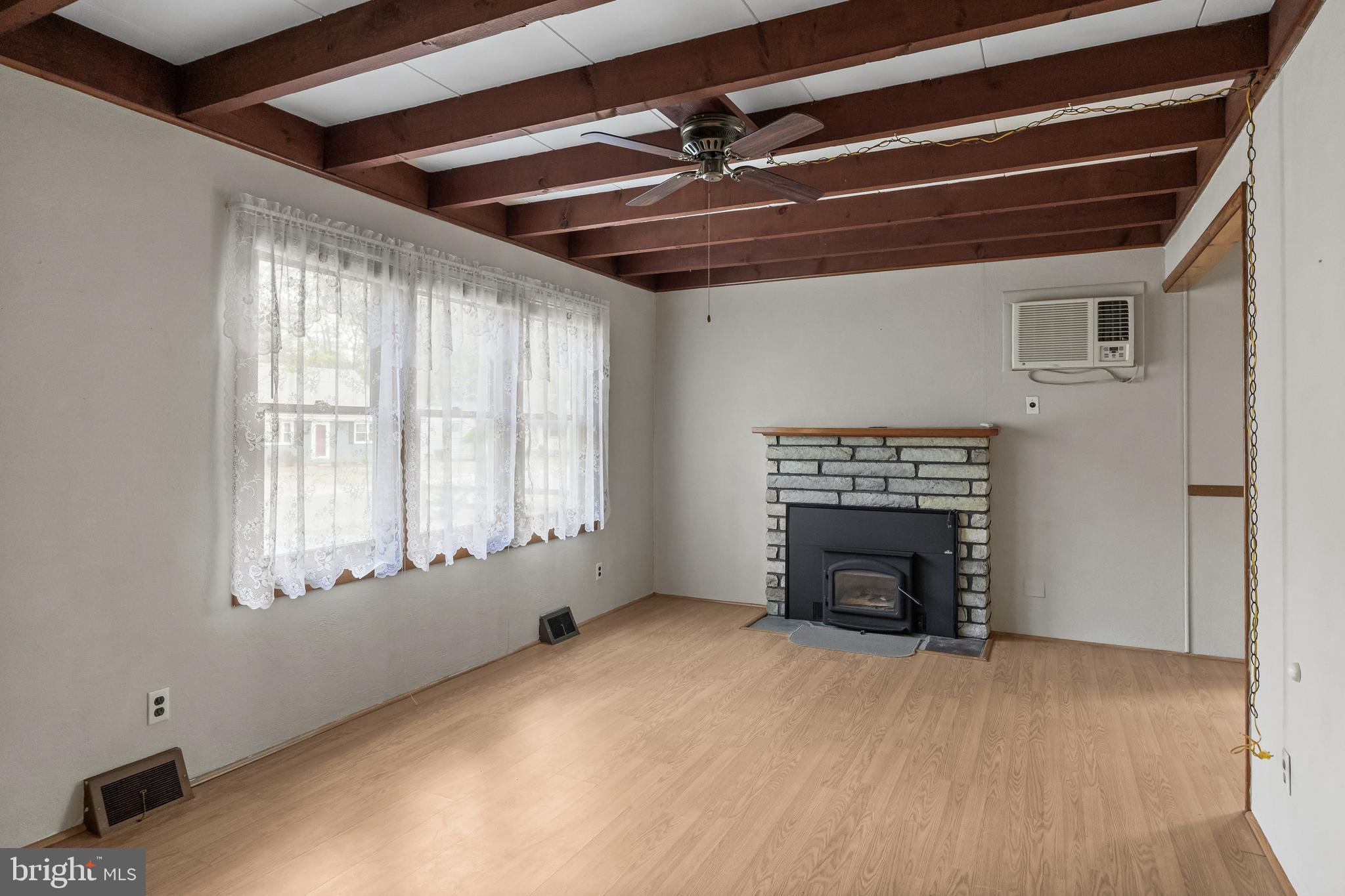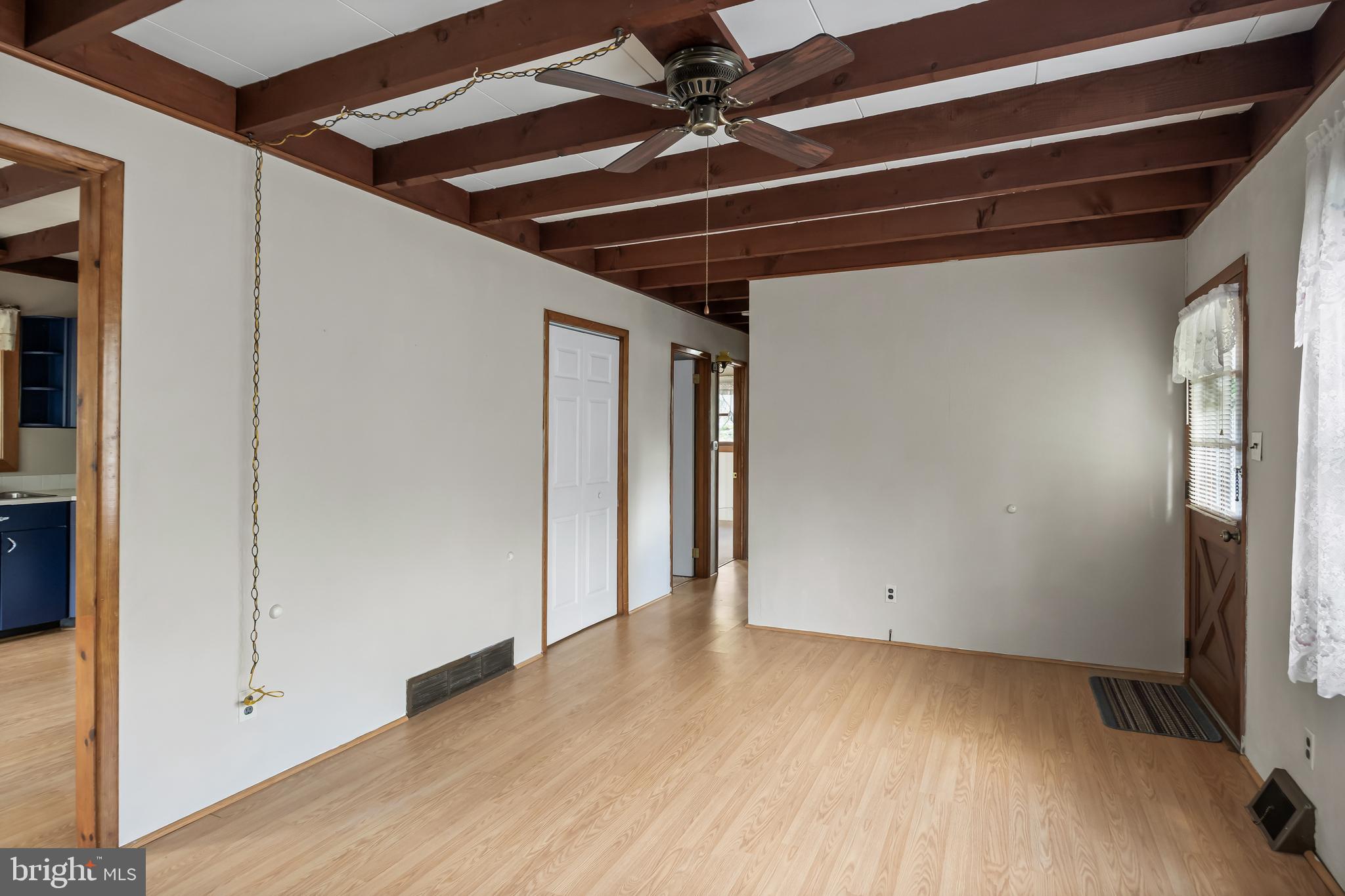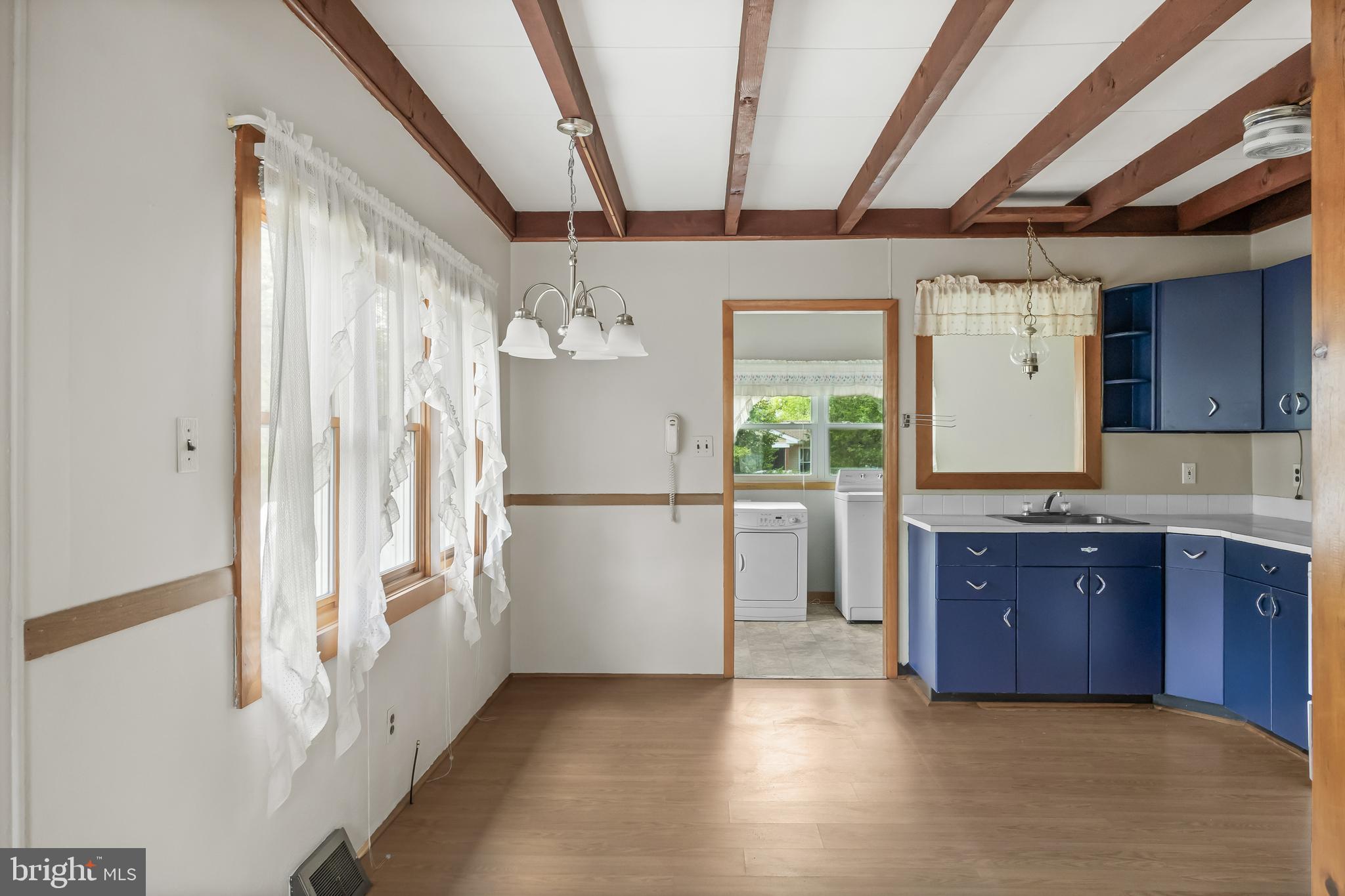 Experience comfortable, single-level living in this charming 976 sq ft rancher--perfectly suited for first-time buyers, downsizers, or savvy investors. Step inside to discover three bright bedrooms and a full bath, all anchored by an inviting eat-in kitchen that flows seamlessly into a spacious laundry/utility room. Underfoot you'll find durable laminate plank flooring throughout, with original hardwood ready to shine once you're ready to reveal it. Both the interior and exterior have been freshly painted, offering a clean, move-in-ready canvas and Outside, two handy storage sheds, a family-sized driveway, and a beautifully, landscaped yard complete with a flag and flagpole AND a brand roof graces this great property. Being sold in AS-IS condition but Seller is offering a One Year Warranty for Buyer's added assurance. This property is nestled in a friendly, well-established neighborhood, a turnkey home that balances functionality and curb appeal--don't miss out on this fantastic opportunity! Call today!