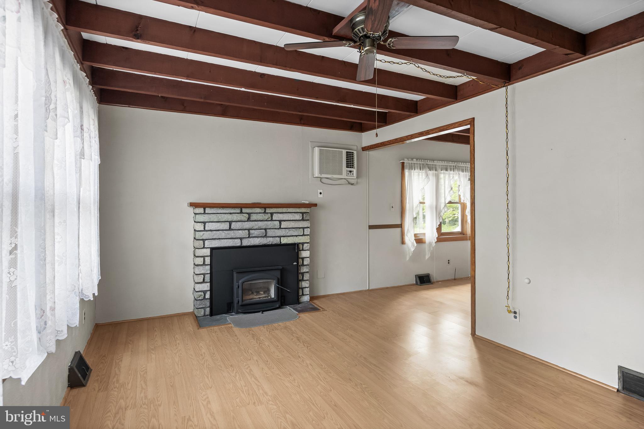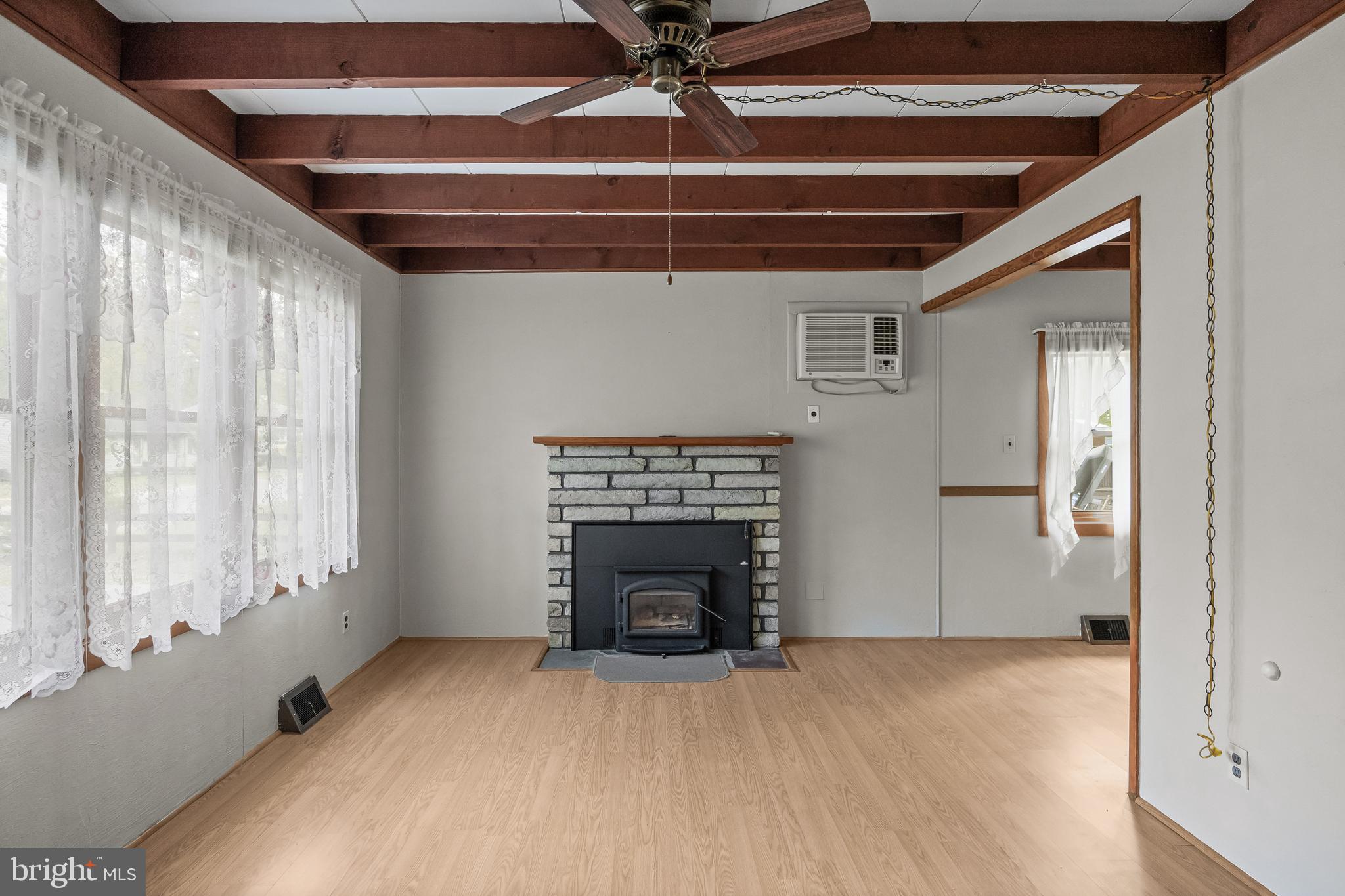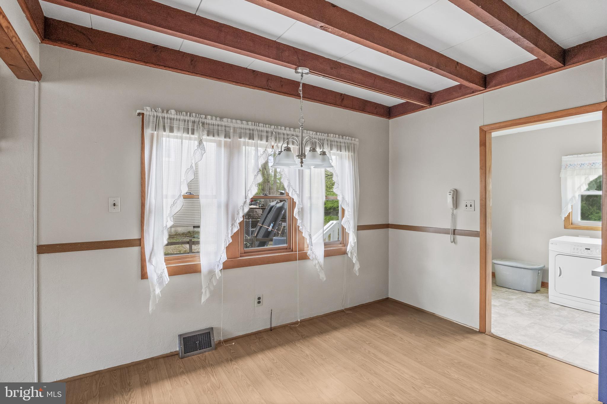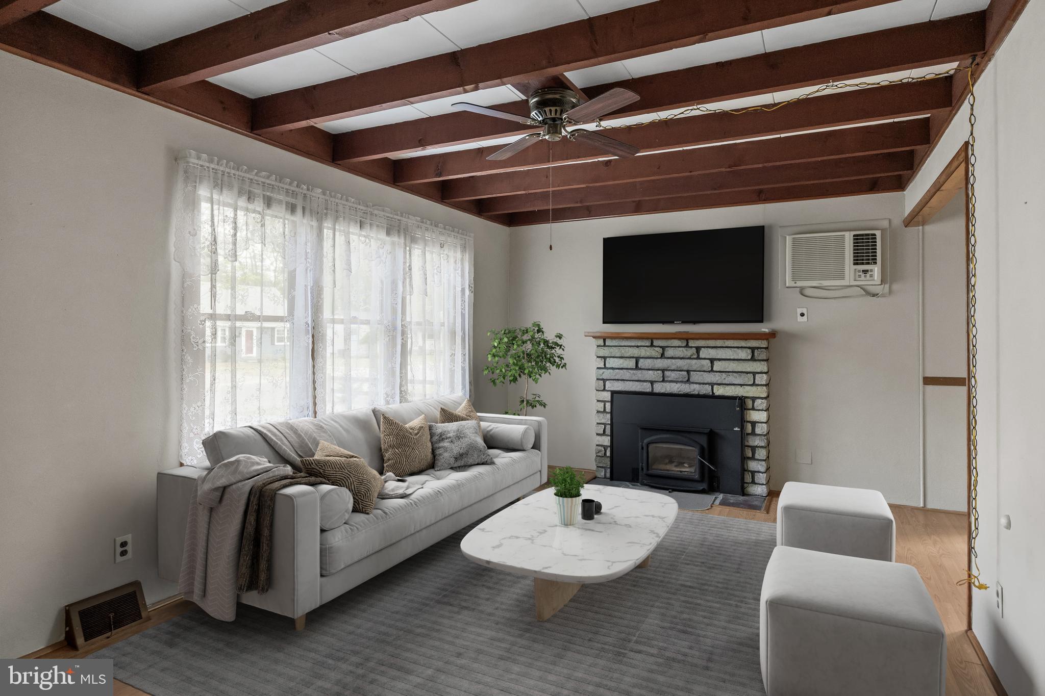 Experience comfortable, single-level living in this charming 976 sq ft rancher--perfectly suited for first-time buyers, downsizers, or savvy investors. Step inside to discover three bright bedrooms and a full bath, all anchored by an inviting eat-in kitchen that flows seamlessly into a spacious laundry/utility room. Underfoot you'll find durable laminate plank flooring throughout, with original hardwood ready to shine once you're ready to reveal it. Both the interior and exterior have been freshly painted, offering a clean, move-in-ready canvas and Outside, two handy storage sheds, a family-sized driveway, and a beautifully, landscaped yard complete with a flag and flagpole AND a brand roof graces this great property. Being sold in AS-IS condition but Seller is offering a One Year Warranty for Buyer's added assurance. This property is nestled in a friendly, well-established neighborhood, a turnkey home that balances functionality and curb appeal--don't miss out on this fantastic opportunity! Call today!
