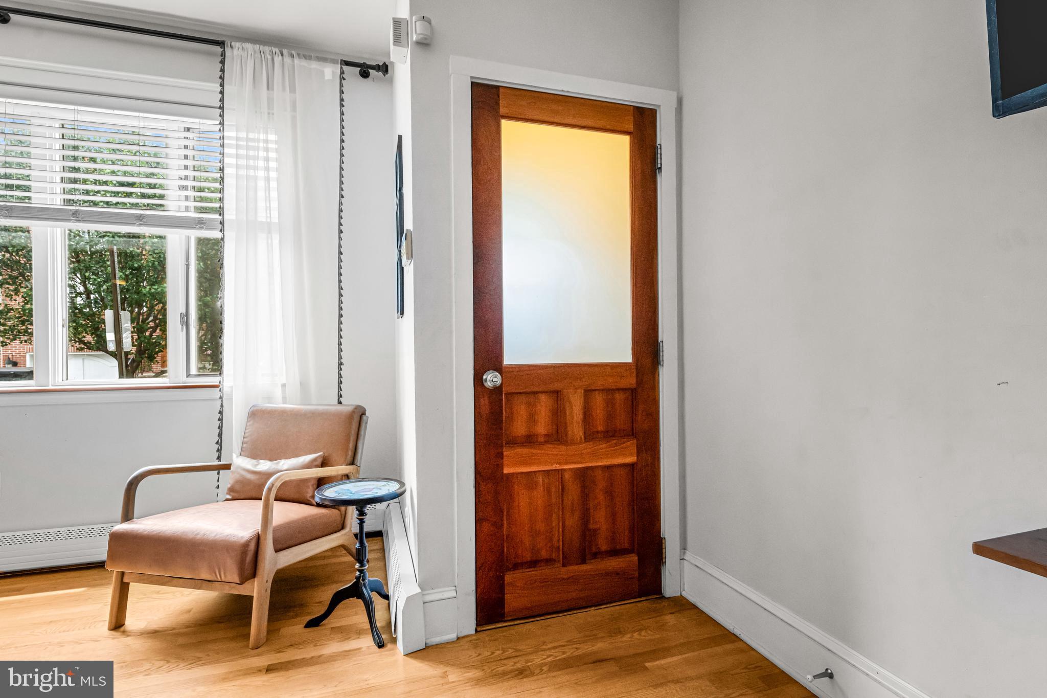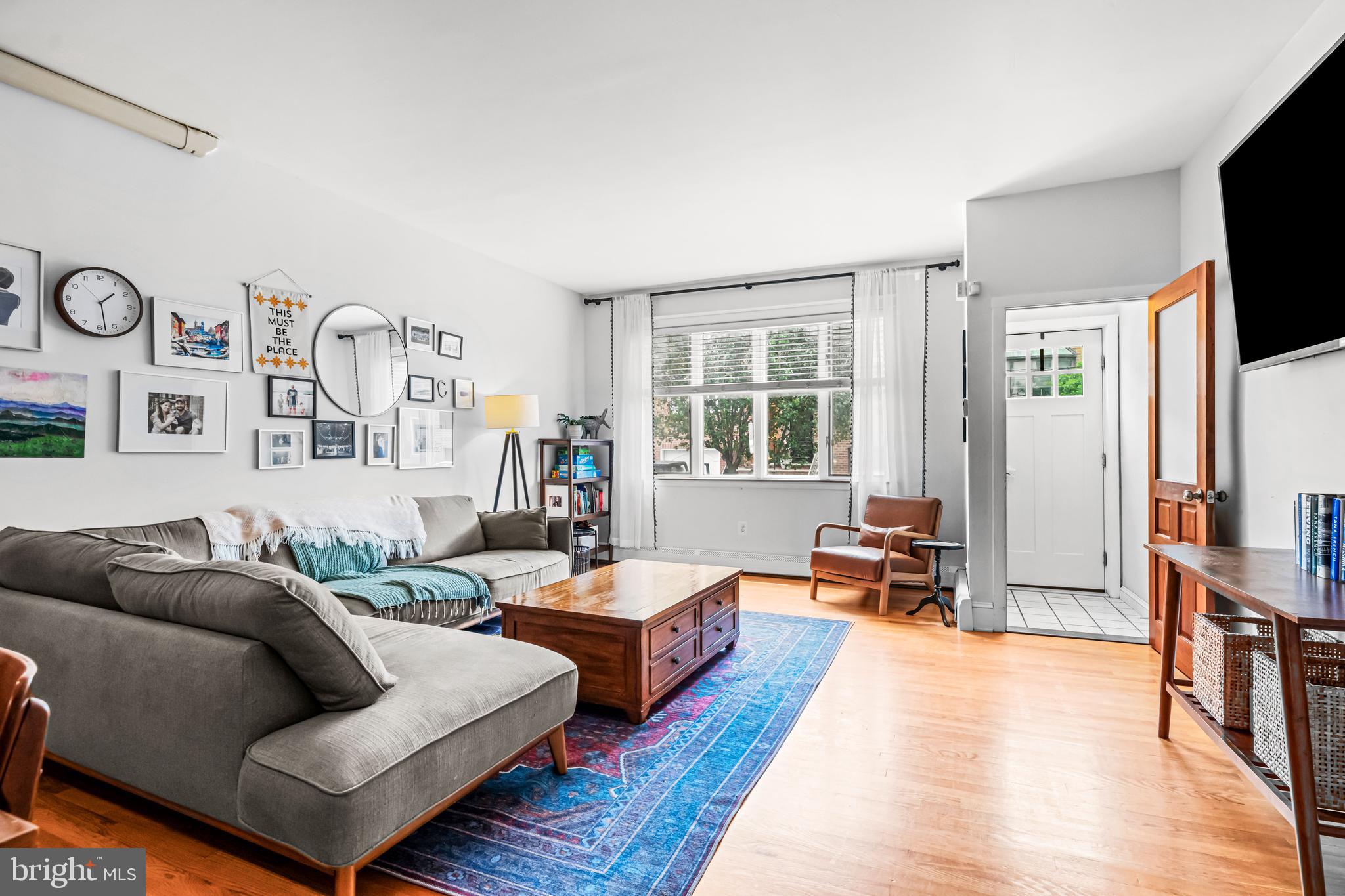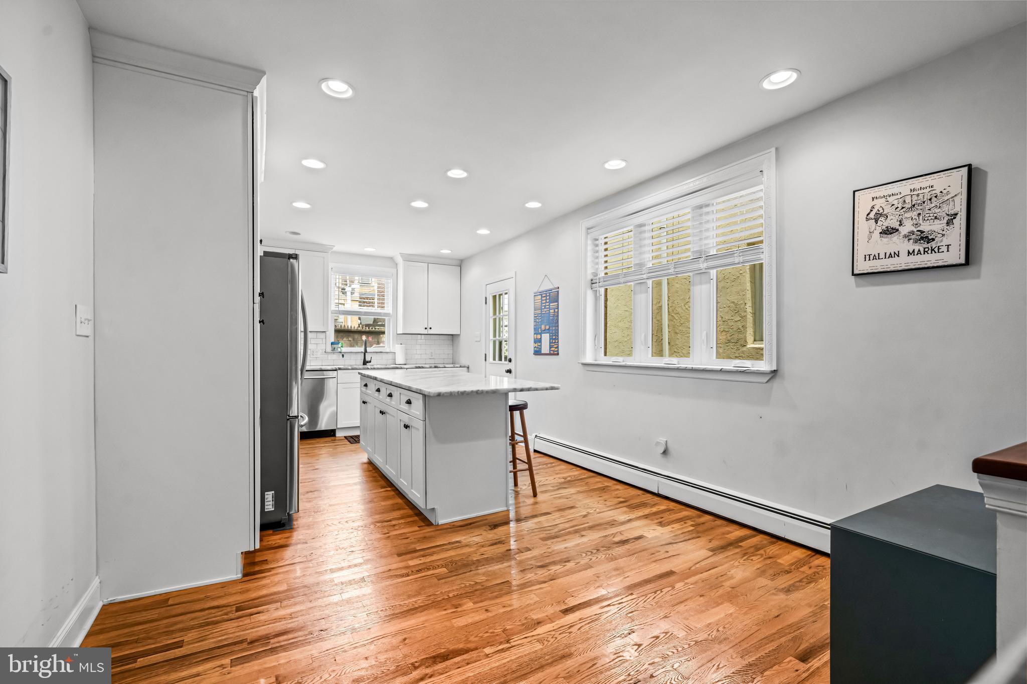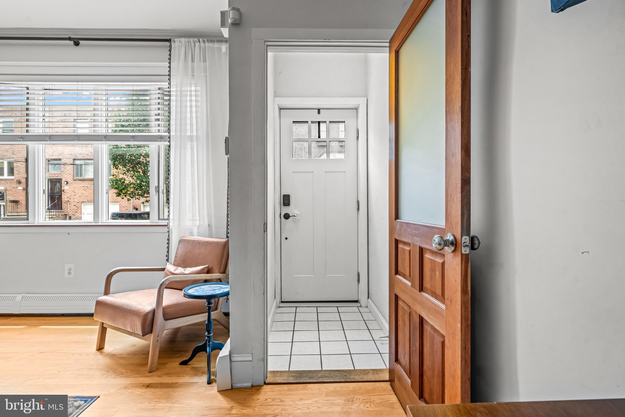 Welcome to 1115 Moore Street, a beautifully updated home in the heart of South Philadelphia's vibrant East Passyunk neighborhood. From the moment you arrive, you'll appreciate the gated front area--perfect for storing bikes, strollers, or other outdoor items. Step inside through the charming vestibule featuring a stunning original wood door, and you're welcomed into a bright and airy first floor with soaring ceilings, gleaming hardwood floors, and abundant closet space. The open-concept layout seamlessly connects the spacious family room and dining area, creating an inviting space for everyday living and entertaining.
