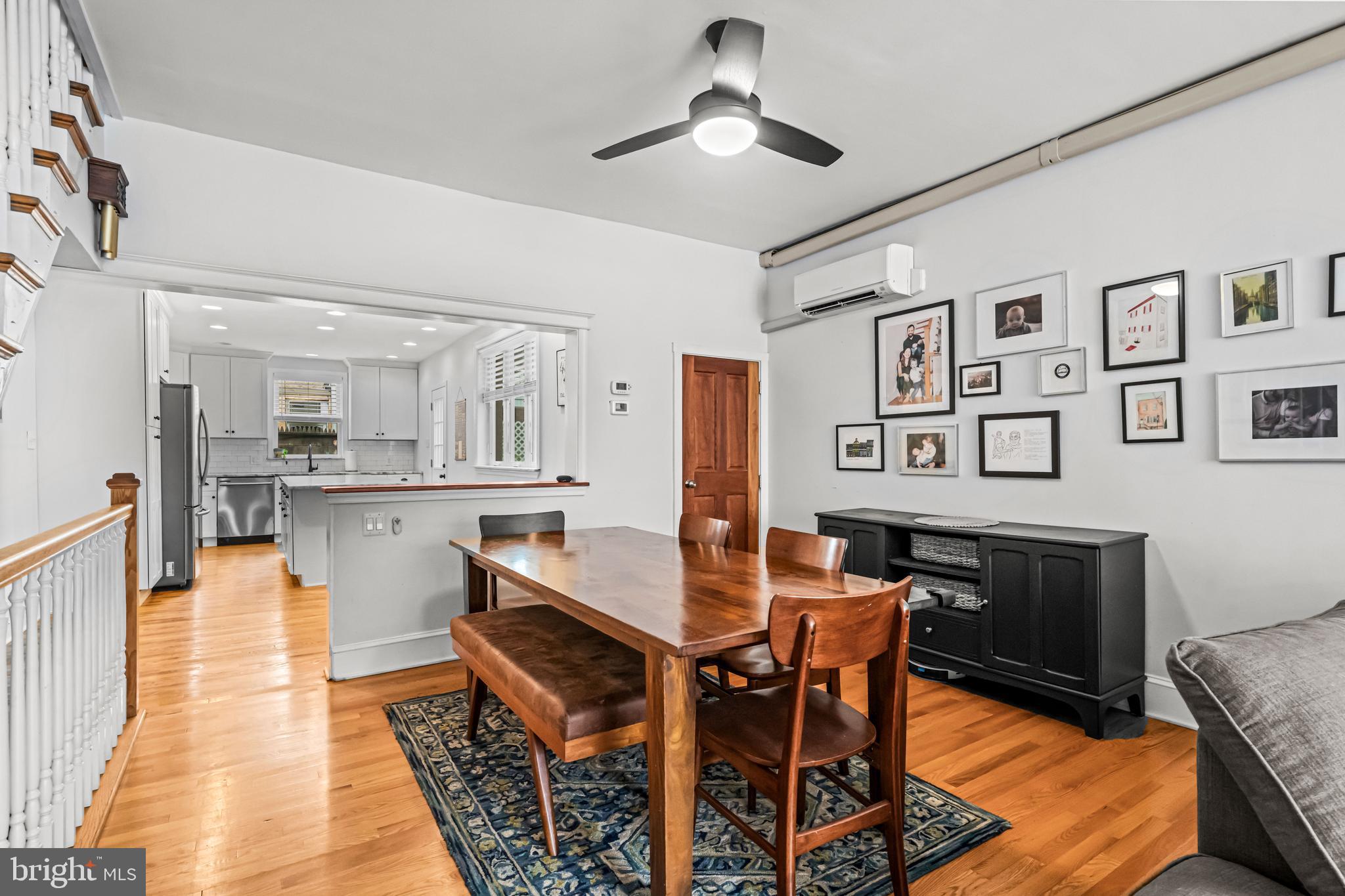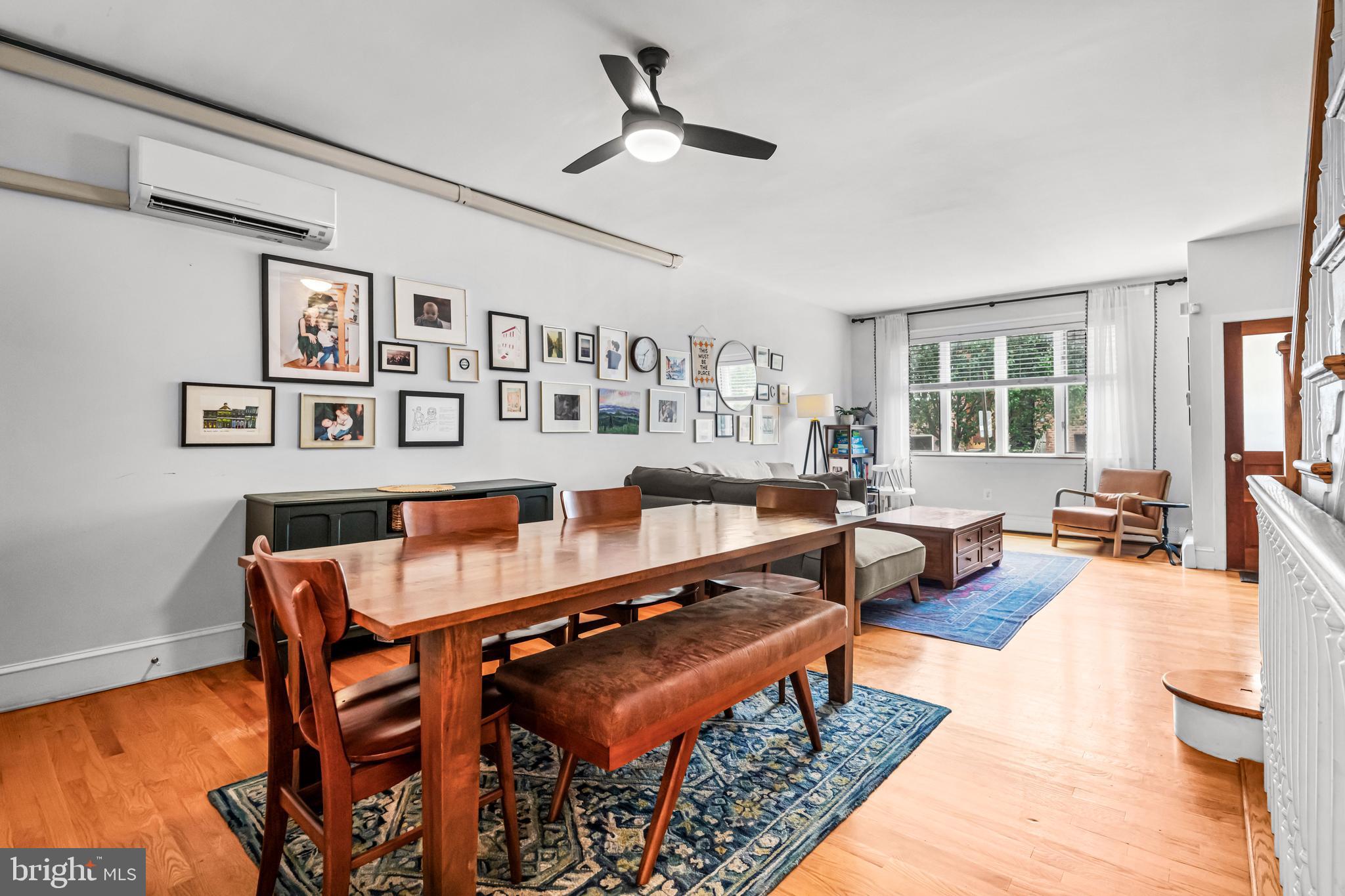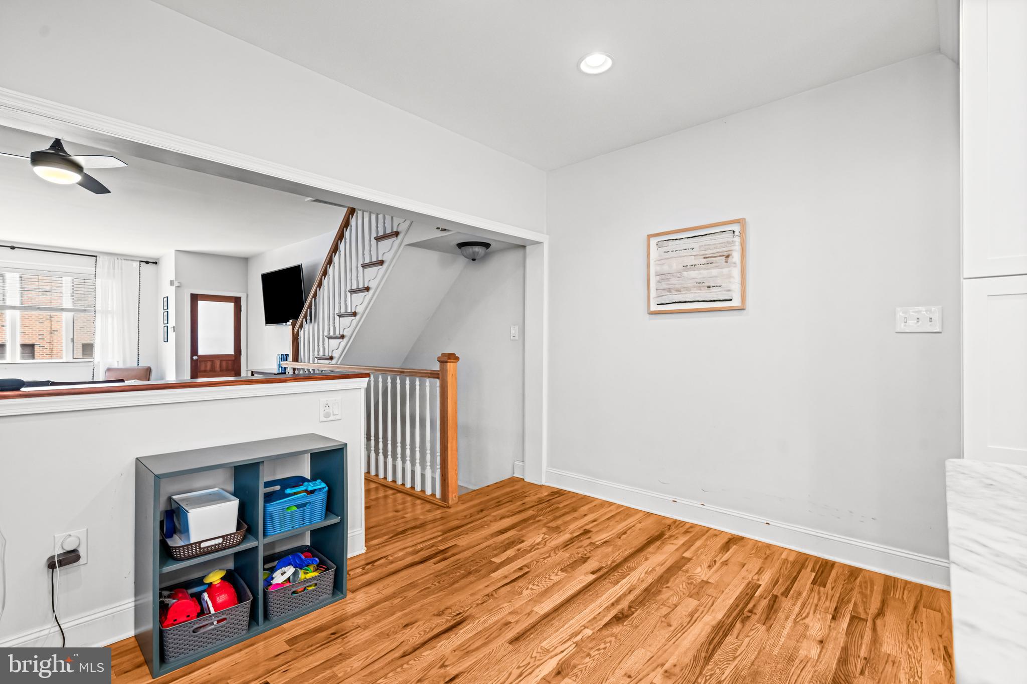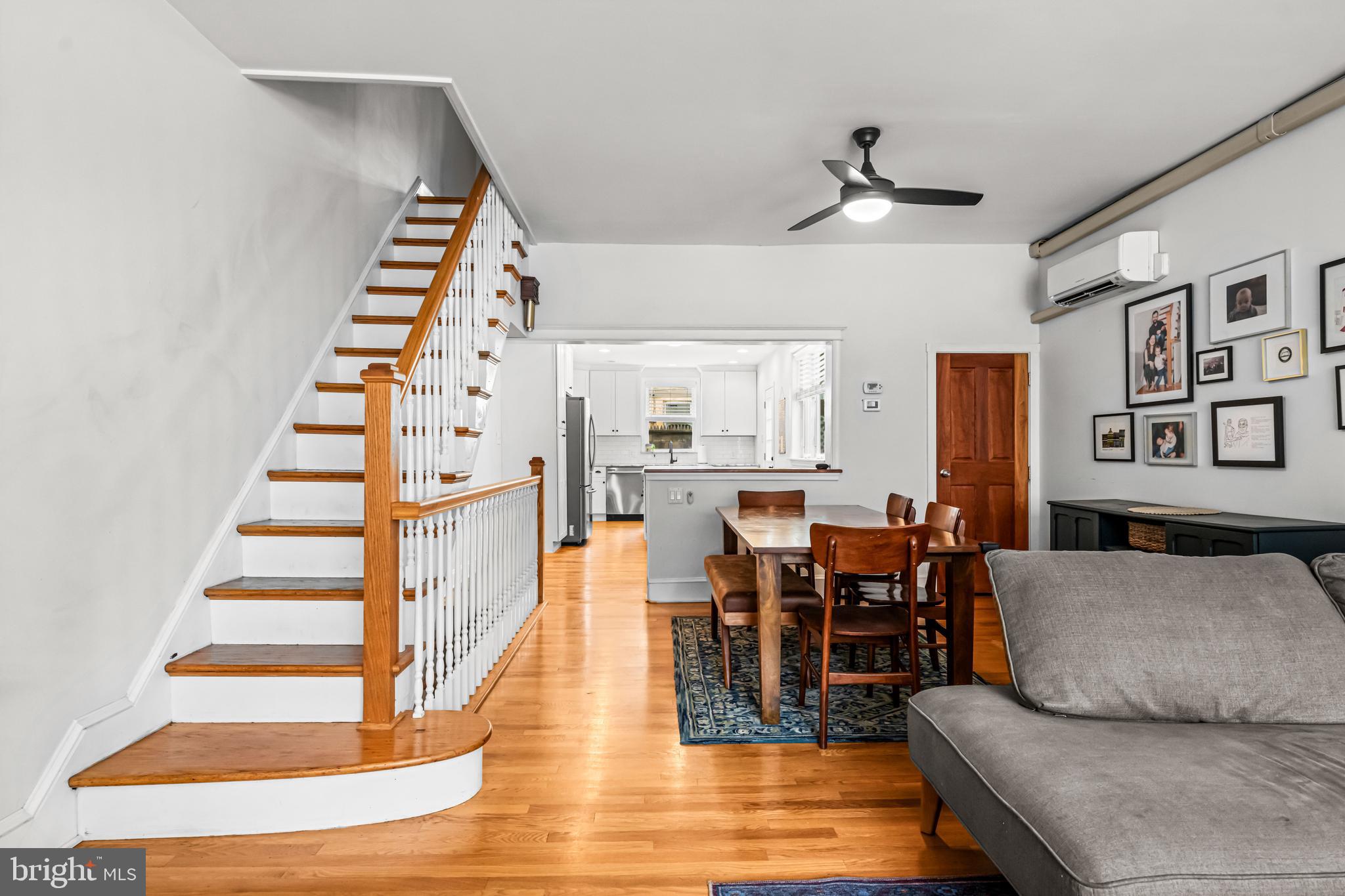 Welcome to 1115 Moore Street, a beautifully updated home in the heart of South Philadelphia's vibrant East Passyunk neighborhood. From the moment you arrive, you'll appreciate the gated front area--perfect for storing bikes, strollers, or other outdoor items. Step inside through the charming vestibule featuring a stunning original wood door, and you're welcomed into a bright and airy first floor with soaring ceilings, gleaming hardwood floors, and abundant closet space. The open-concept layout seamlessly connects the spacious family room and dining area, creating an inviting space for everyday living and entertaining.