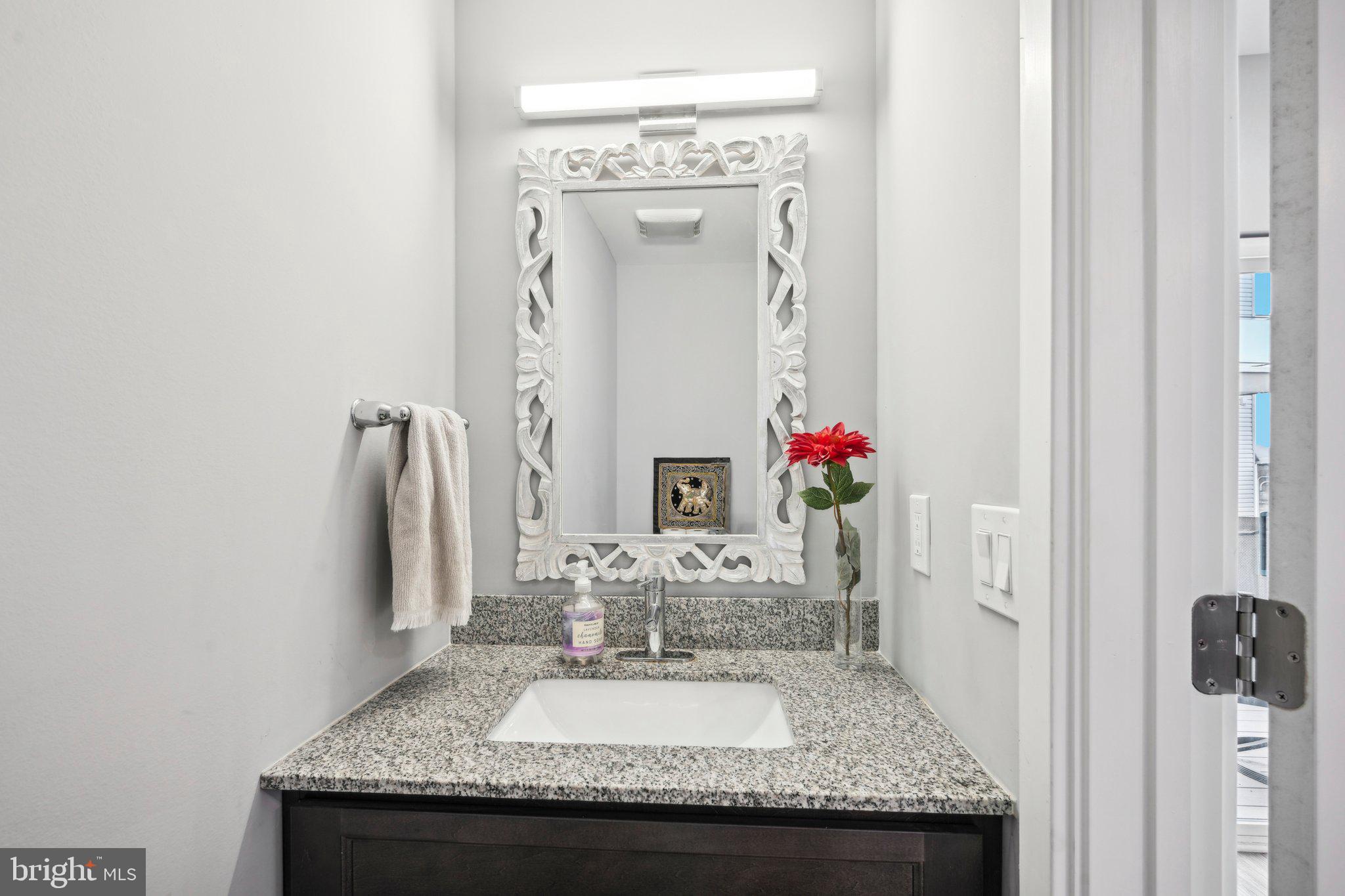 Ascend to the main living level, where your open-concept sanctuary awaits. The designer kitchen, complete with top-of-the-line appliances and a massive island, seamlessly flows into the dining and living areas, making it perfect for both intimate dinners and lively gatherings. Sliding doors open to a private rear deck just off the kitchen, ideal for morning coffees or evening cocktails. A sleek powder room is conveniently located on this floor for your guests.