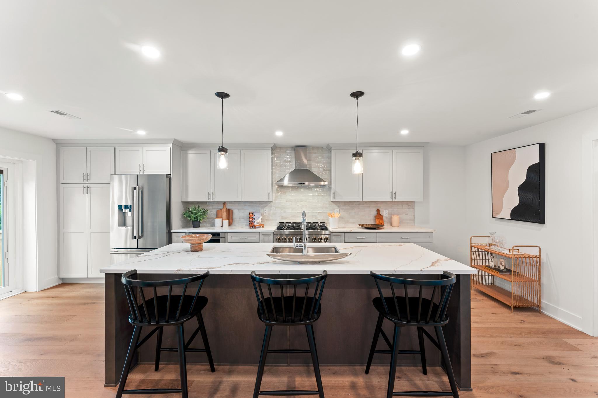 Welcome to your dream home in Haddon Heights! This stunning property has undergone a complete transformation, boasting brand-new everything from plumbing to roof, windows, gutters, and spray foam insulation. With four bedrooms and 4 1/2 bathrooms, this home is designed for luxurious living and effortless entertaining. Step inside to find beautiful engineered hardwood oak floors throughout. The first floor features an open floor plan where the kitchen seamlessly flows into the living and dining areas, creating a perfect space for gatherings. The kitchen is a chef's dream, complete with a large center island, built-in microwave, six-burner gas range, and stunning countertops. Sliding doors lead out to a paver patio, ideal for outdoor entertaining. Office or potential 4th bedroom, half bathroom and laundry room complete this floor. Ascend to the second floor where you'll find three spacious bedrooms, each with its own en suite bathroom, providing privacy and convenience for everyone. The finished basement, adorned with luxury vinyl planks, offers a full bathroom and a versatile space perfect for an entertainment room, home gym, or whatever suits your lifestyle. This home is the epitome of move-in ready, having been completely redone from top to bottom. Don't miss the opportunity to own this exquisite property in Haddon Heights where every detail has been meticulously updated for modern comfort and style.