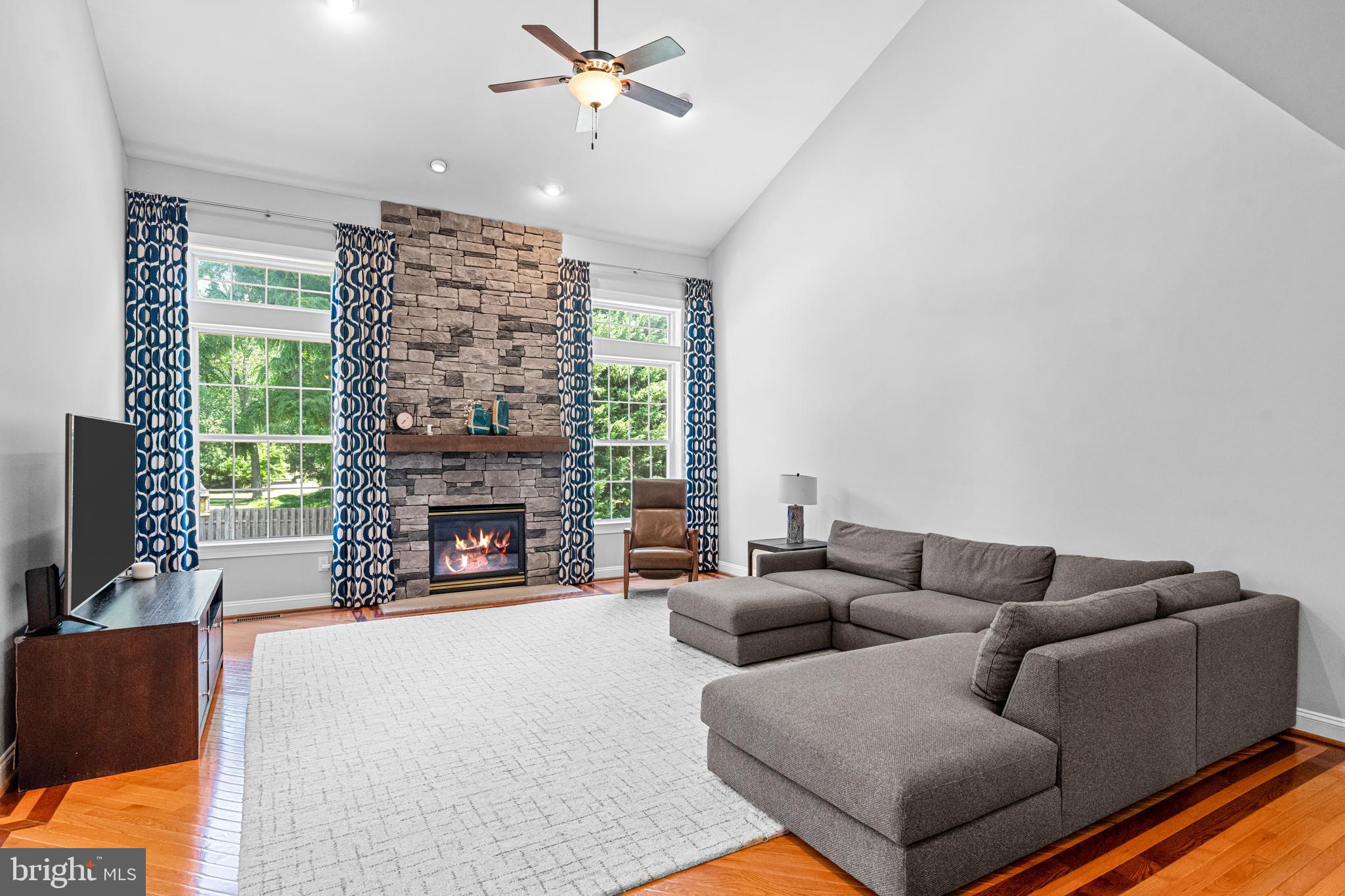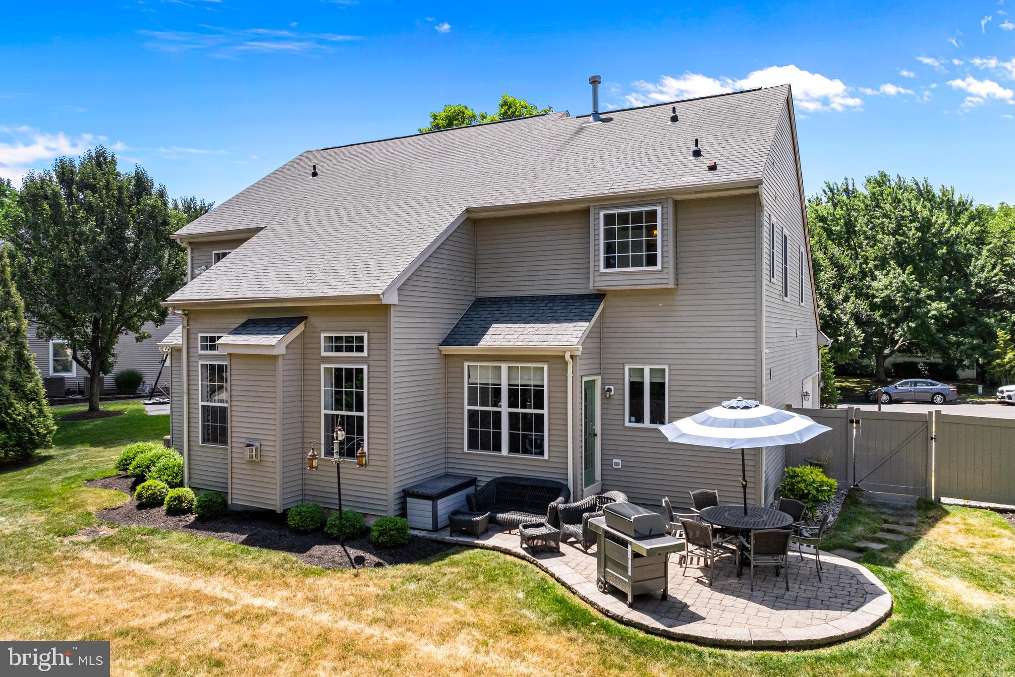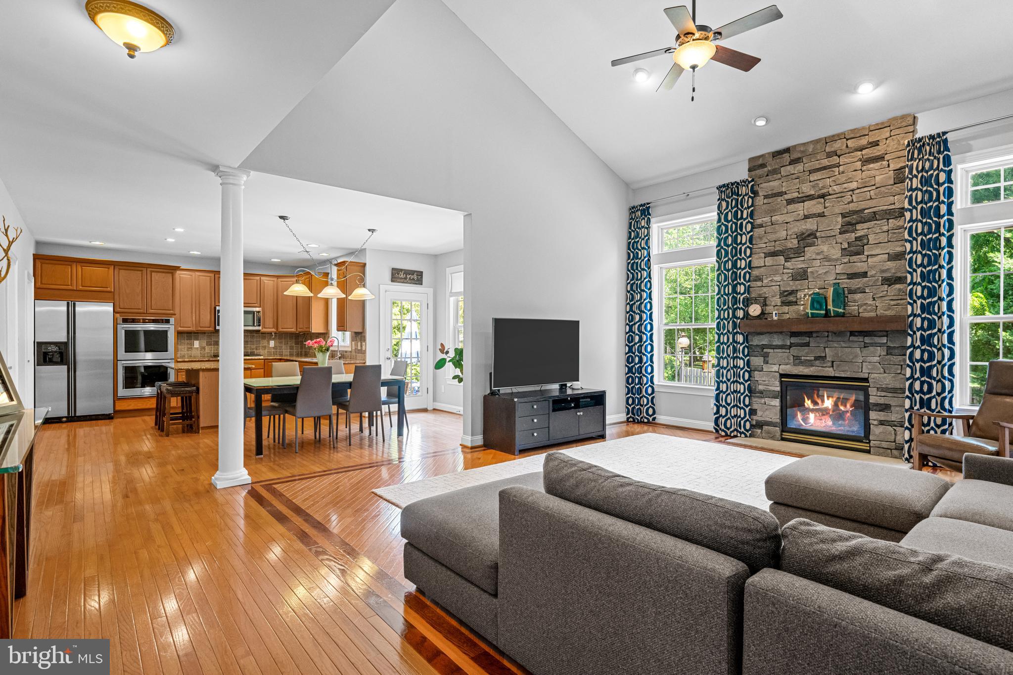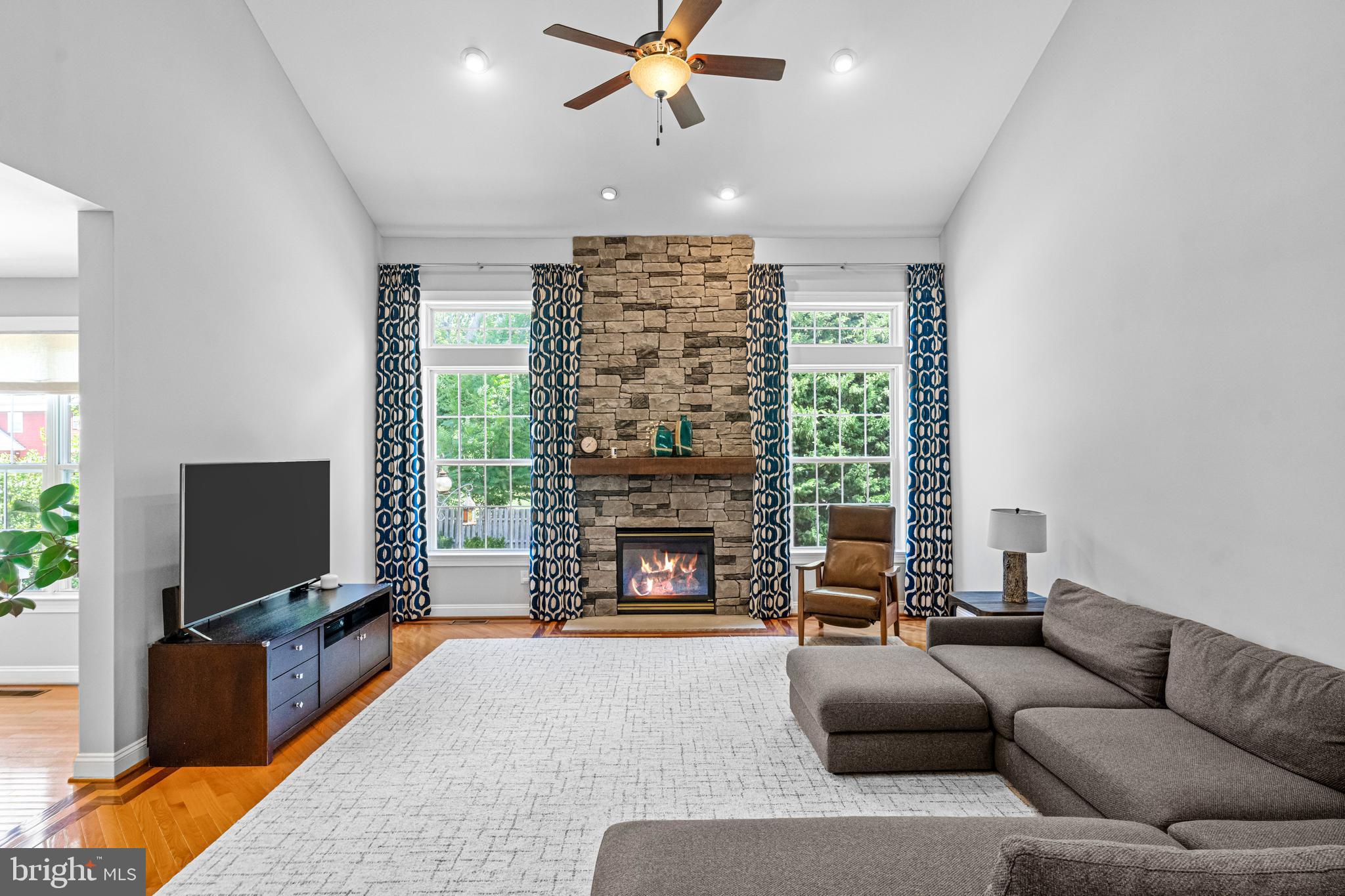 Professional landscaping and elegant pavers greet you as you approach this beautiful home. Step inside into a grand two-story foyer flanked by a formal dining room and living room on either side. Looking ahead the center hall leads to a stunning 2 story family room with an attention-grabbing custom stone fireplace and oversized windows. The family room connects seamlessly with the kitchen, featuring an extended dining area, a center island with additional seating, stainless appliances, dual ovens, and a large walk-in pantry. This space is perfect for entertaining. The main floor also features a full-size bedroom (which is currently used as a study), a full bathroom, a laundry room, 2 coat closets, and an oversized 2-car garage. Upstairs, the primary bedroom features 2 luxurious walk-in closets with all custom shelving, as well as a full bath with a large soaking tub, dual sinks, and shower stall. Three additional large bedrooms and a hall bathroom with dual sinks finish off the second floor. A paver patio and mature trees line the beautiful backyard. With no homes directly in front or behind, the yard has an exceptionally private feel. It's also one of the largest lots on this side of the community. Hardwood floors and numerous updates throughout, fresh neutral tones, updated fixtures, home automation features, recessed lighting, ceiling fans, wainscoting, upgraded moldings, and 2-zone HVAC are all featured in this magnificent home.