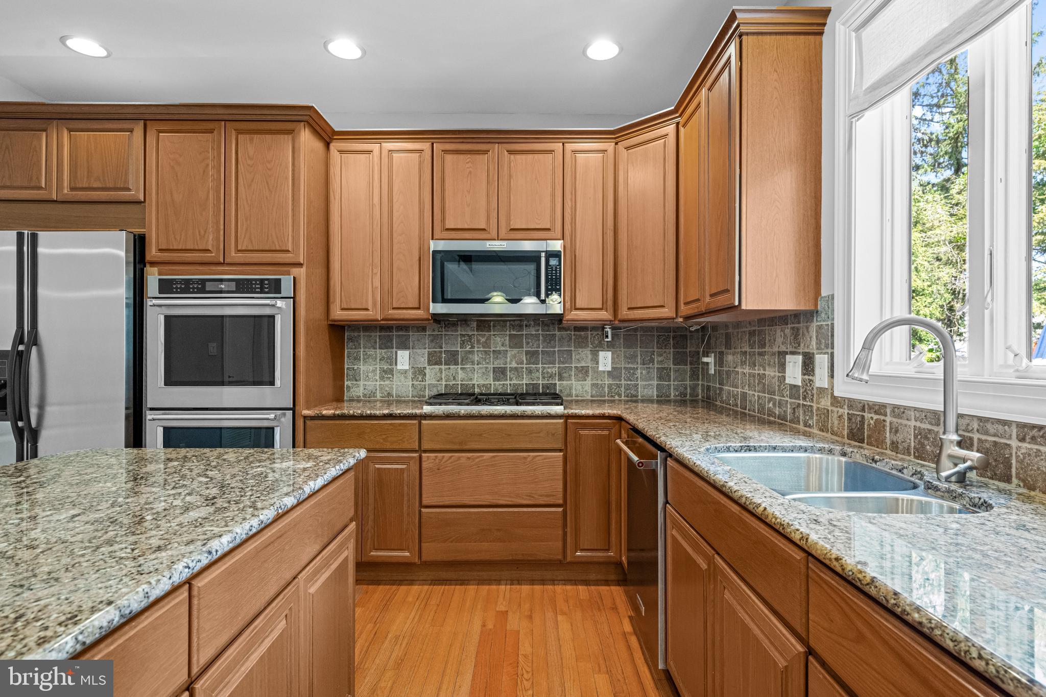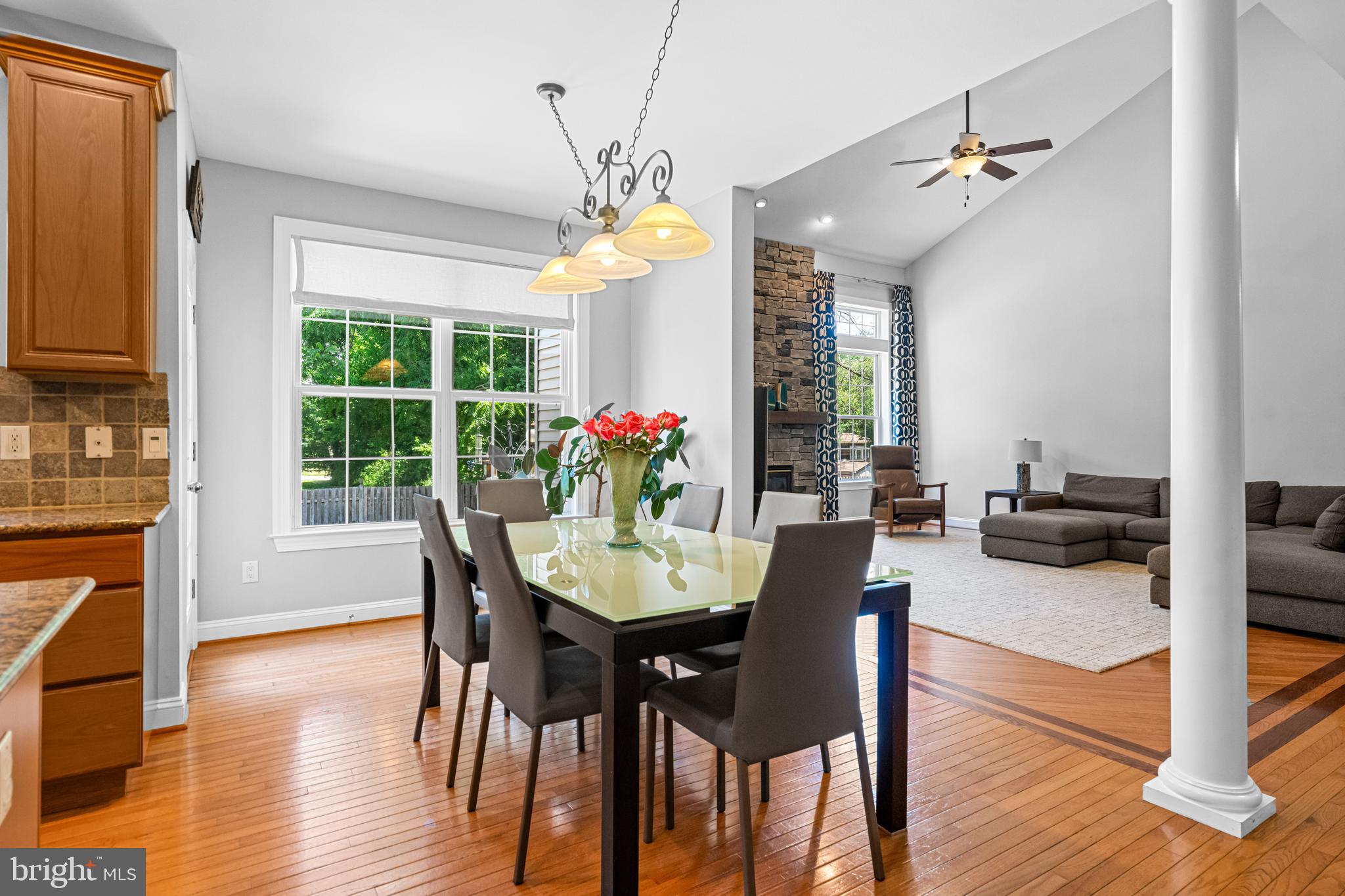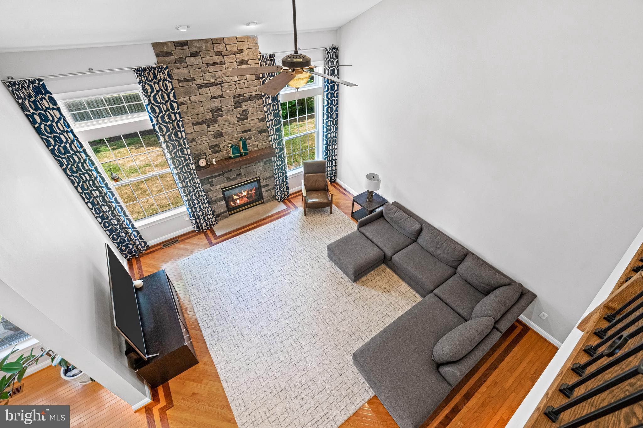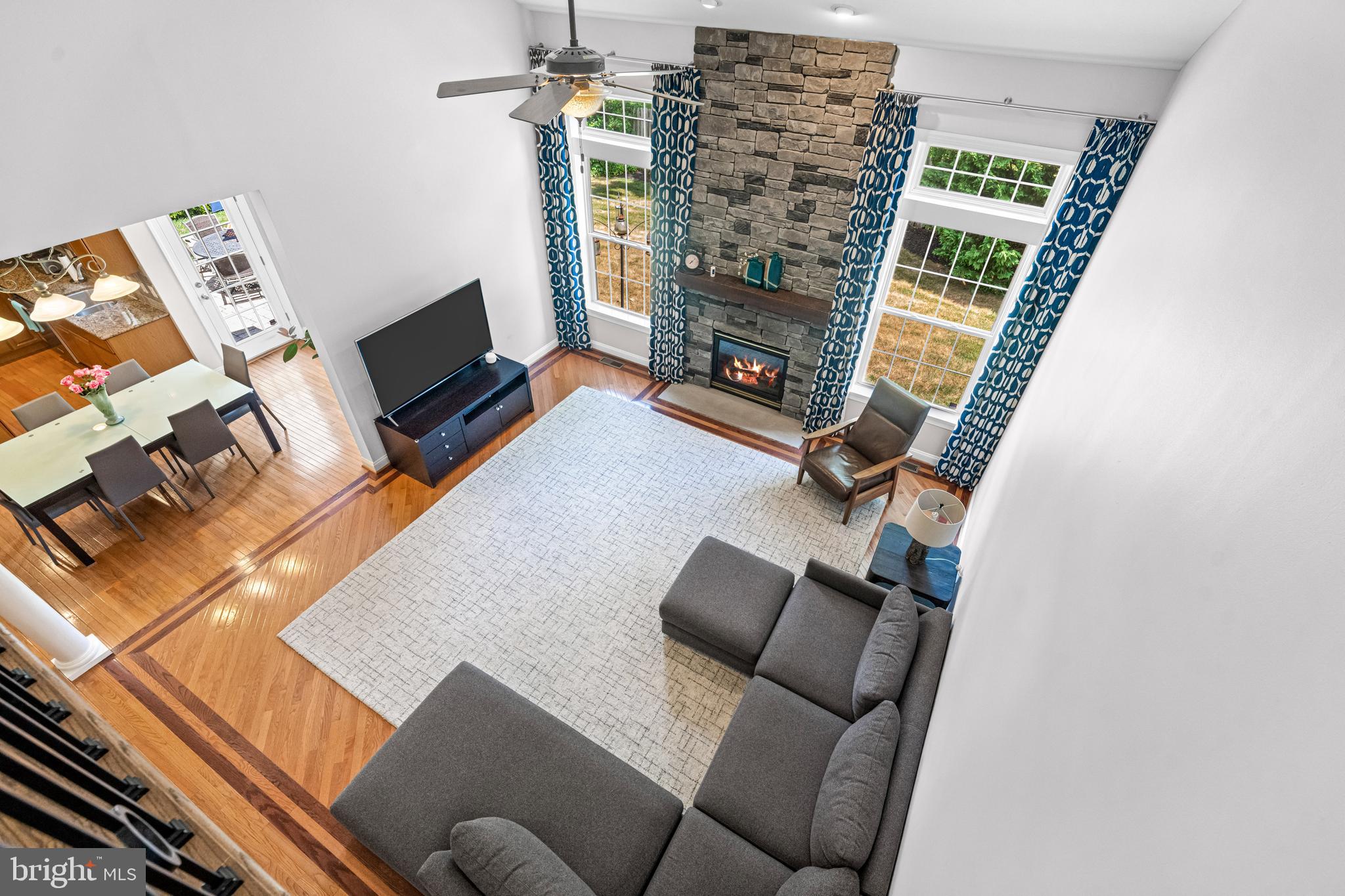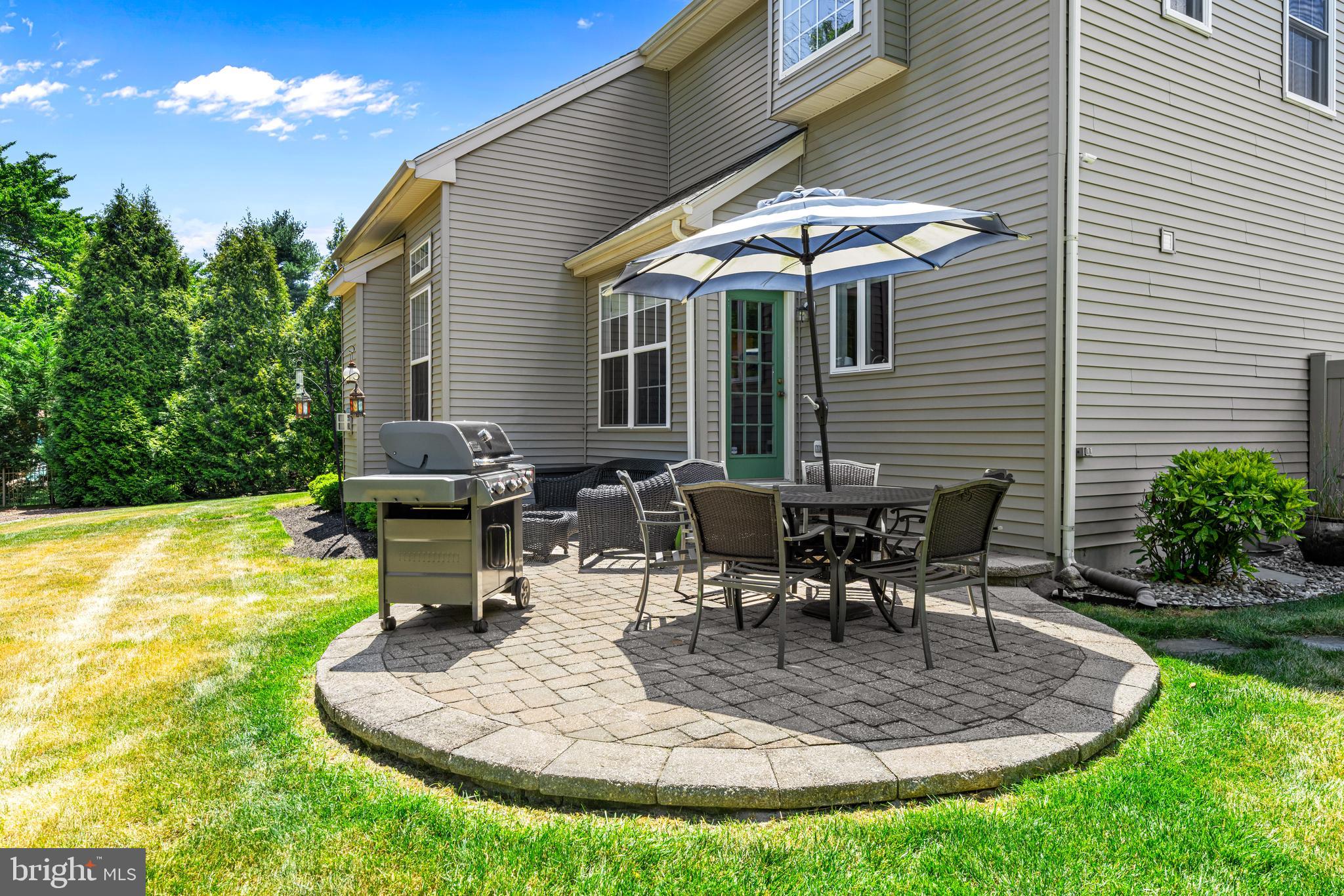 Professional landscaping and elegant pavers greet you as you approach this beautiful home. Step inside into a grand two-story foyer flanked by a formal dining room and living room on either side. Looking ahead the center hall leads to a stunning 2 story family room with an attention-grabbing custom stone fireplace and oversized windows. The family room connects seamlessly with the kitchen, featuring an extended dining area, a center island with additional seating, stainless appliances, dual ovens, and a large walk-in pantry. This space is perfect for entertaining. The main floor also features a full-size bedroom (which is currently used as a study), a full bathroom, a laundry room, 2 coat closets, and an oversized 2-car garage. Upstairs, the primary bedroom features 2 luxurious walk-in closets with all custom shelving, as well as a full bath with a large soaking tub, dual sinks, and shower stall. Three additional large bedrooms and a hall bathroom with dual sinks finish off the second floor. A paver patio and mature trees line the beautiful backyard. With no homes directly in front or behind, the yard has an exceptionally private feel. It's also one of the largest lots on this side of the community. Hardwood floors and numerous updates throughout, fresh neutral tones, updated fixtures, home automation features, recessed lighting, ceiling fans, wainscoting, upgraded moldings, and 2-zone HVAC are all featured in this magnificent home.