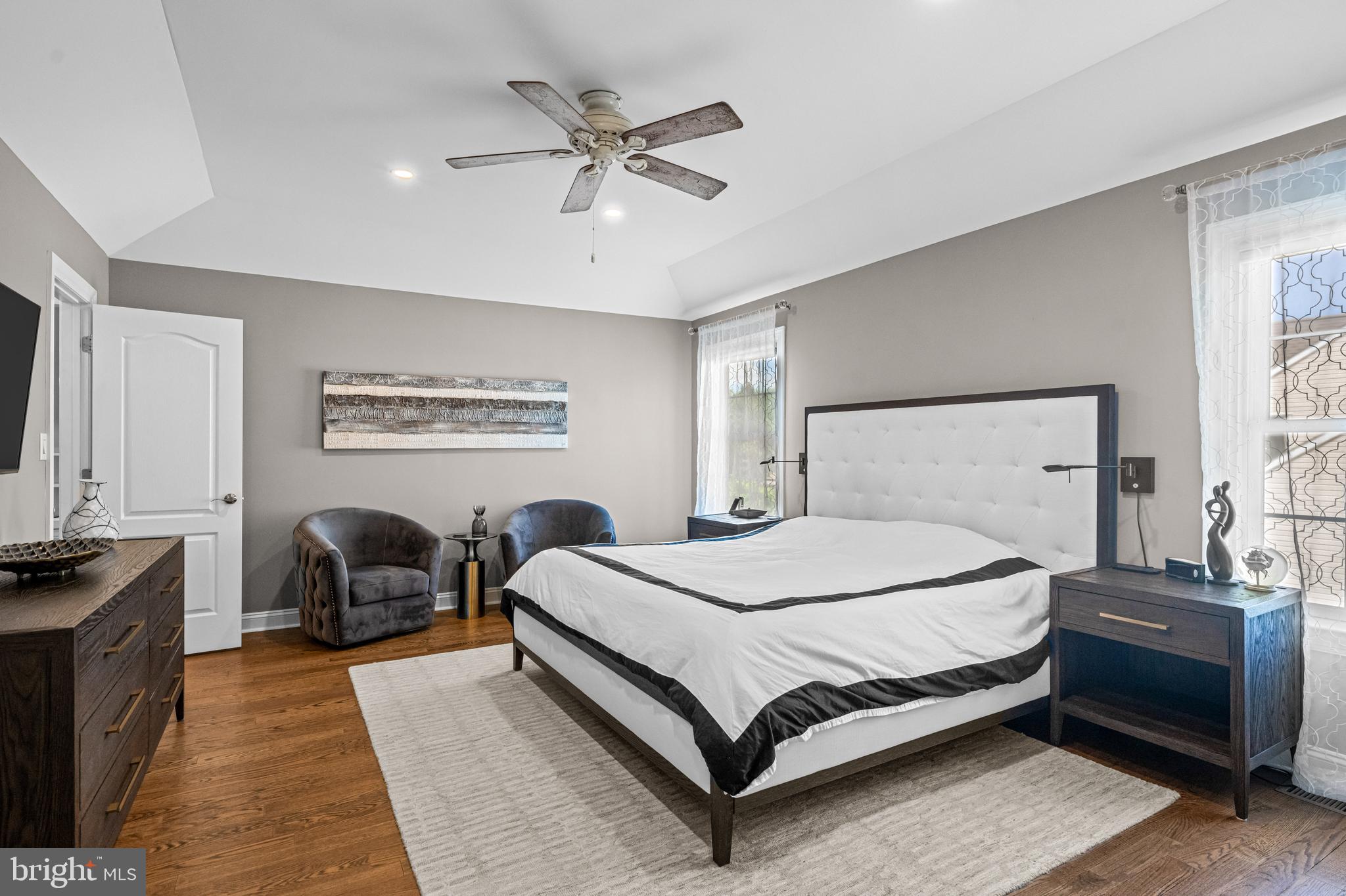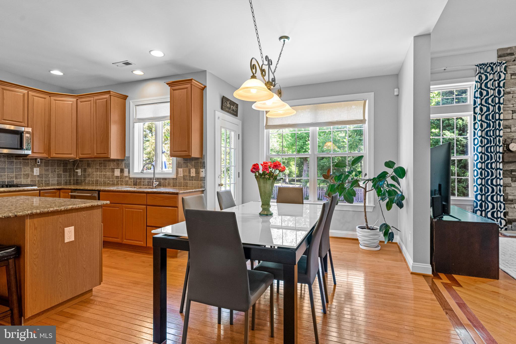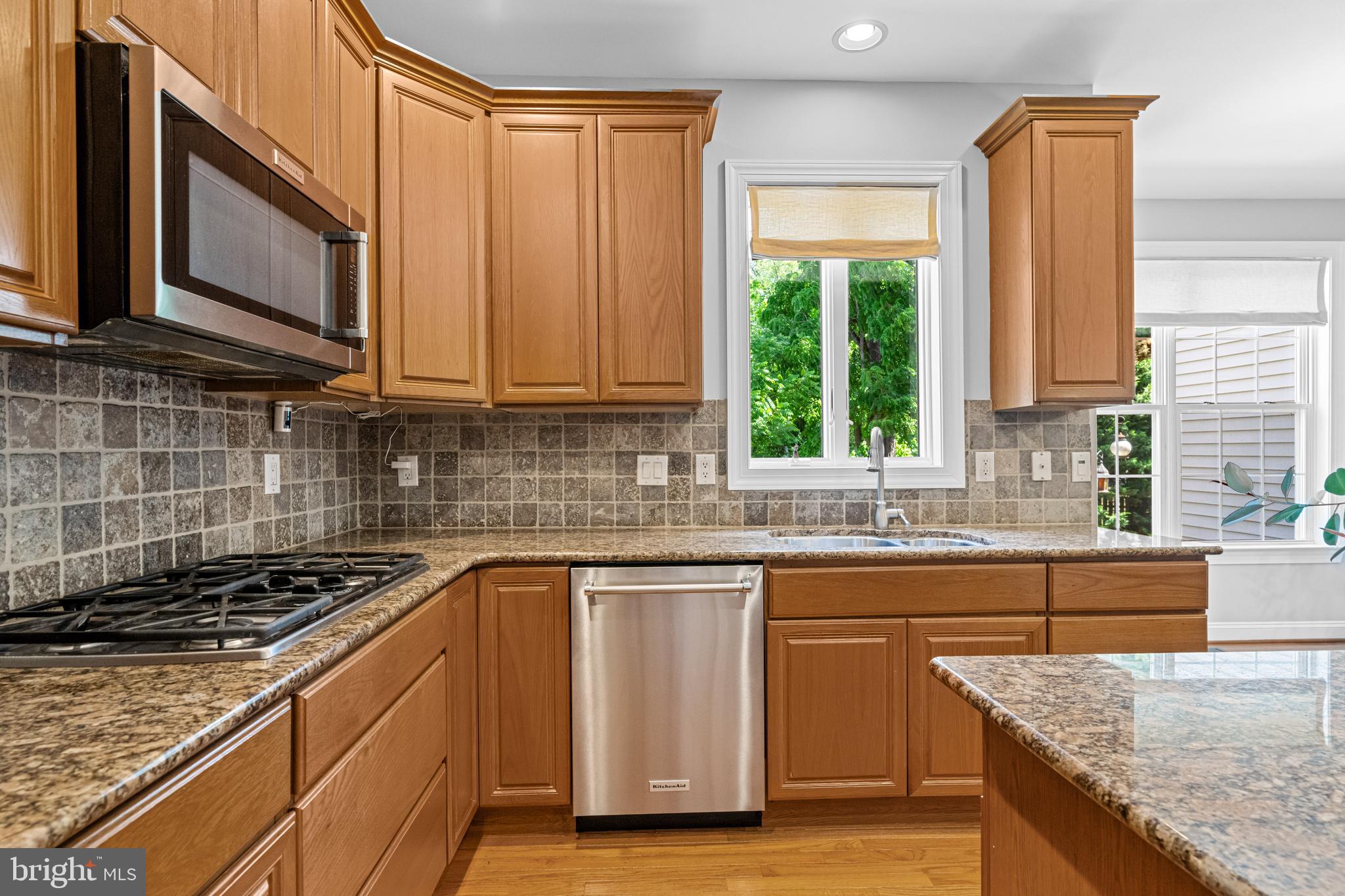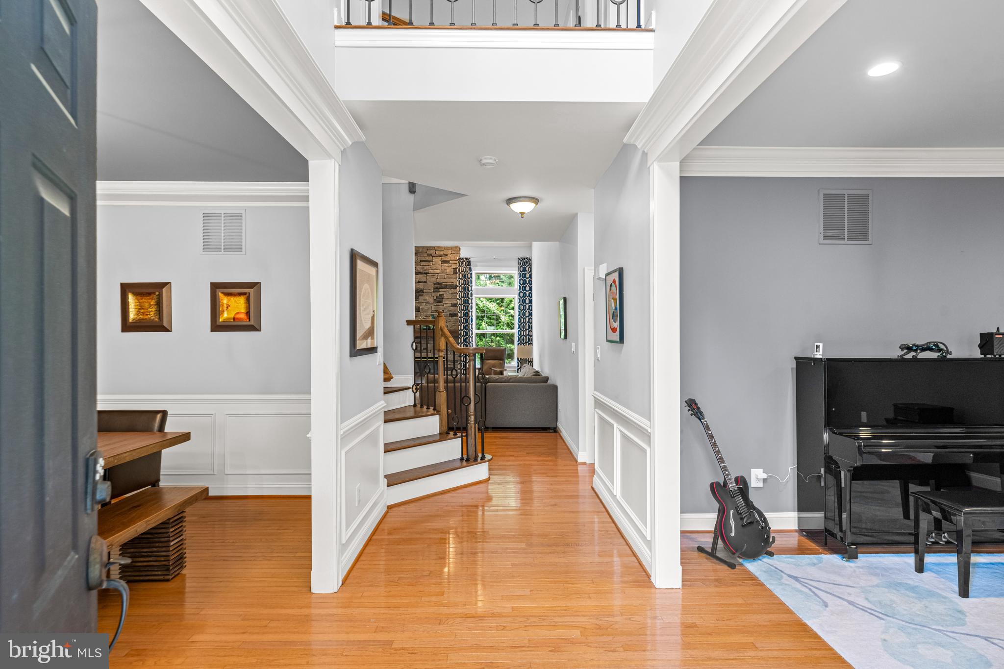 Professional landscaping and elegant pavers greet you as you approach this beautiful home. Step inside into a grand two-story foyer flanked by a formal dining room and living room on either side. Looking ahead the center hall leads to a stunning 2 story family room with an attention-grabbing custom stone fireplace and oversized windows. The family room connects seamlessly with the kitchen, featuring an extended dining area, a center island with additional seating, stainless appliances, dual ovens, and a large walk-in pantry. This space is perfect for entertaining. The main floor also features a full-size bedroom (which is currently used as a study), a full bathroom, a laundry room, 2 coat closets, and an oversized 2-car garage. Upstairs, the primary bedroom features 2 luxurious walk-in closets with all custom shelving, as well as a full bath with a large soaking tub, dual sinks, and shower stall. Three additional large bedrooms and a hall bathroom with dual sinks finish off the second floor. A paver patio and mature trees line the beautiful backyard. With no homes directly in front or behind, the yard has an exceptionally private feel. It's also one of the largest lots on this side of the community. Hardwood floors and numerous updates throughout, fresh neutral tones, updated fixtures, home automation features, recessed lighting, ceiling fans, wainscoting, upgraded moldings, and 2-zone HVAC are all featured in this magnificent home.