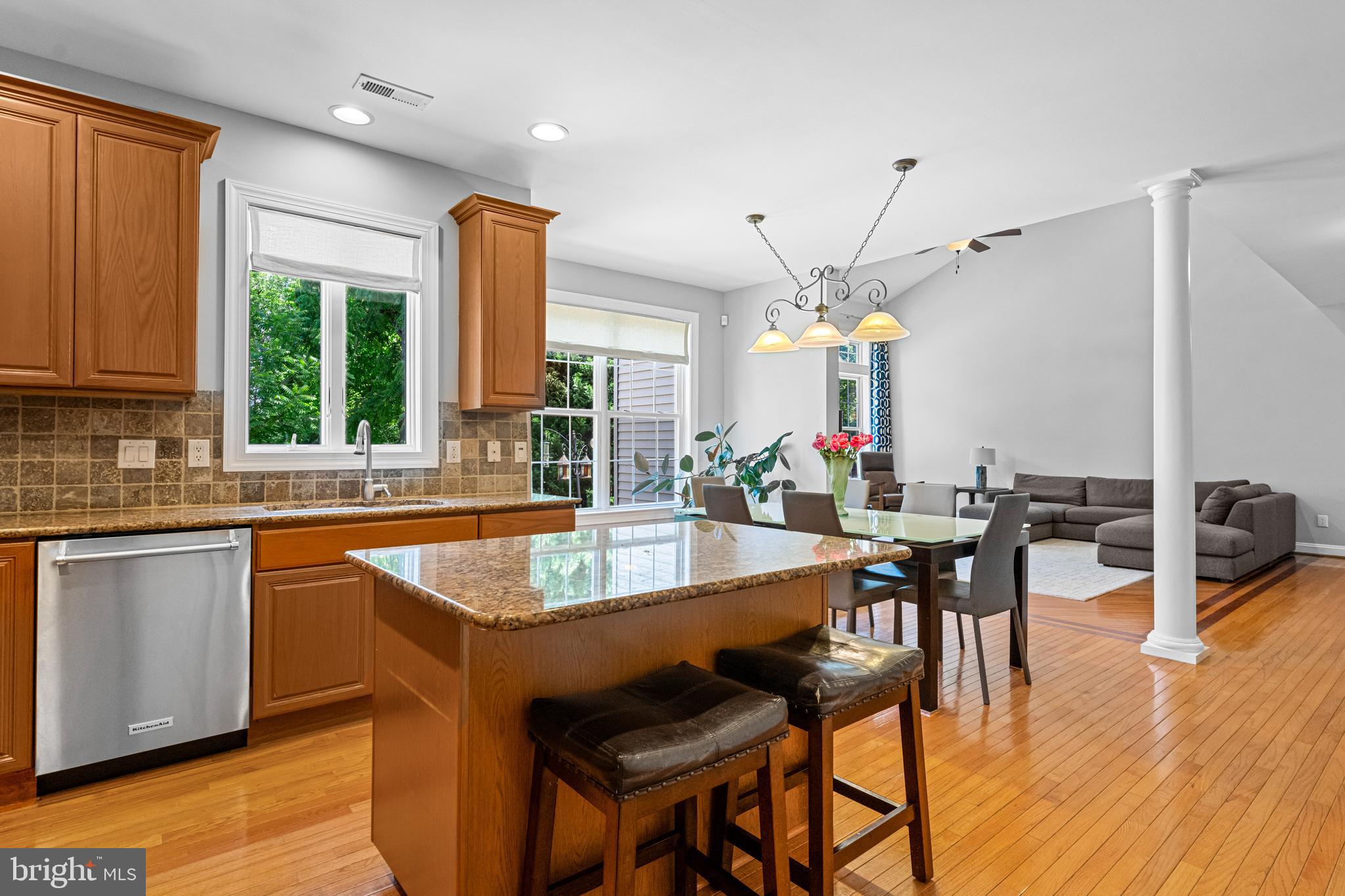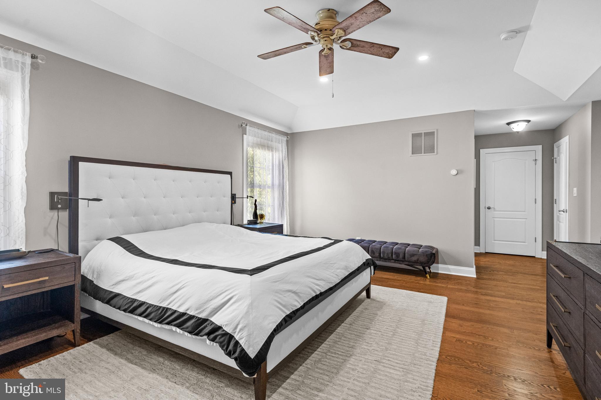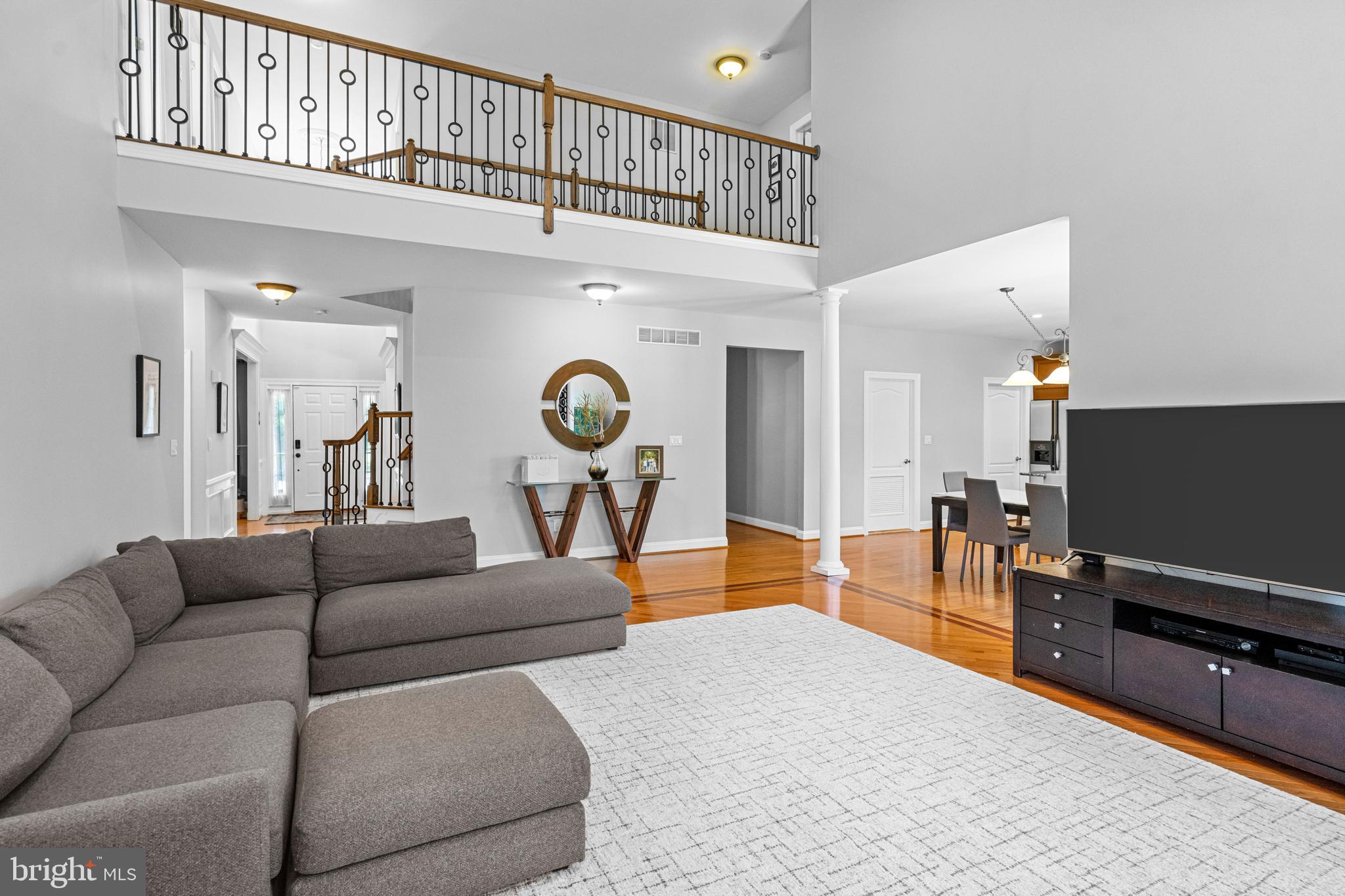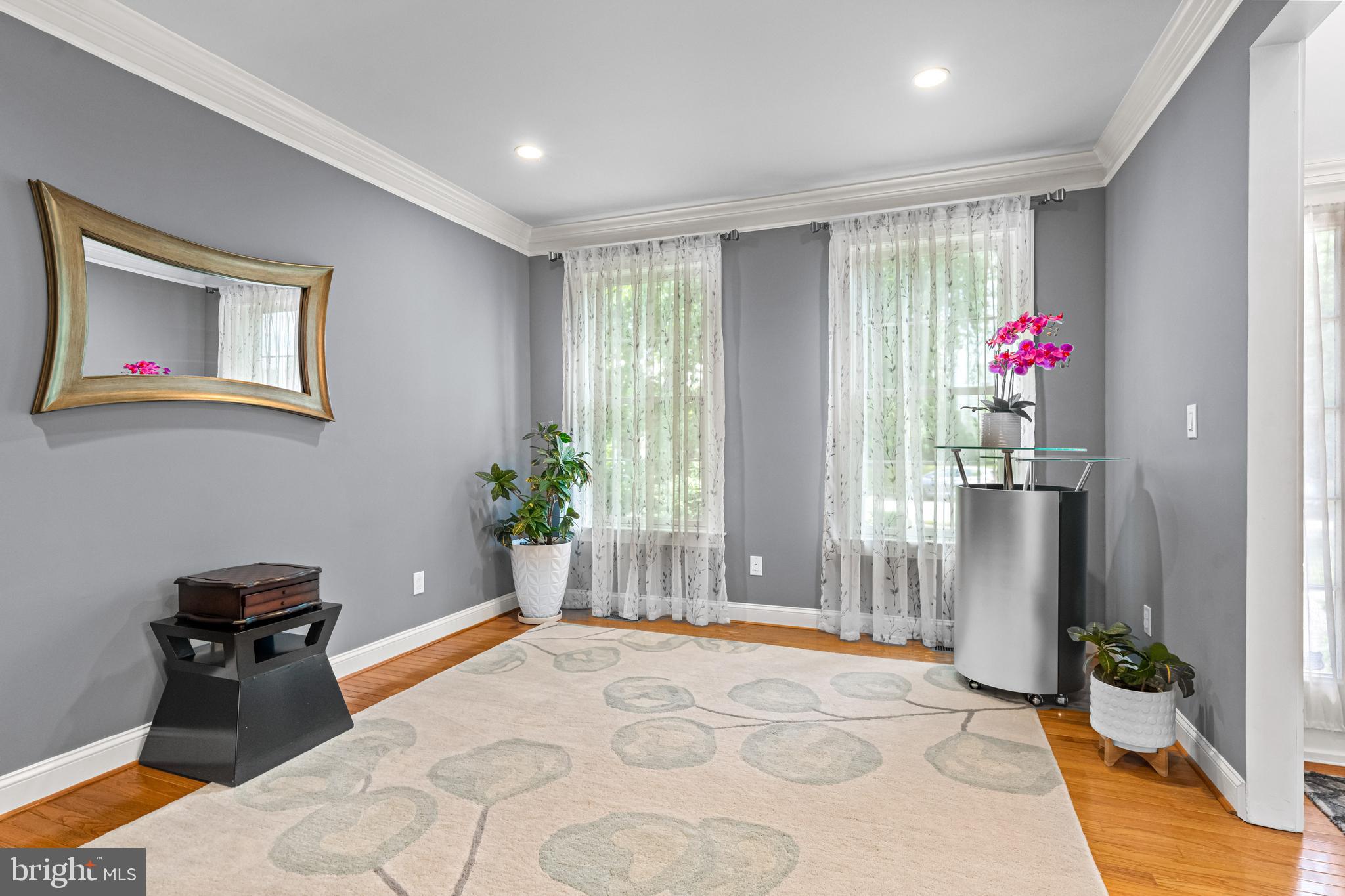 Professional landscaping and elegant pavers greet you as you approach this beautiful home. Step inside into a grand two-story foyer flanked by a formal dining room and living room on either side. Looking ahead the center hall leads to a stunning 2 story family room with an attention-grabbing custom stone fireplace and oversized windows. The family room connects seamlessly with the kitchen, featuring an extended dining area, a center island with additional seating, stainless appliances, dual ovens, and a large walk-in pantry. This space is perfect for entertaining. The main floor also features a full-size bedroom (which is currently used as a study), a full bathroom, a laundry room, 2 coat closets, and an oversized 2-car garage. Upstairs, the primary bedroom features 2 luxurious walk-in closets with all custom shelving, as well as a full bath with a large soaking tub, dual sinks, and shower stall. Three additional large bedrooms and a hall bathroom with dual sinks finish off the second floor. A paver patio and mature trees line the beautiful backyard. With no homes directly in front or behind, the yard has an exceptionally private feel. It's also one of the largest lots on this side of the community. Hardwood floors and numerous updates throughout, fresh neutral tones, updated fixtures, home automation features, recessed lighting, ceiling fans, wainscoting, upgraded moldings, and 2-zone HVAC are all featured in this magnificent home.