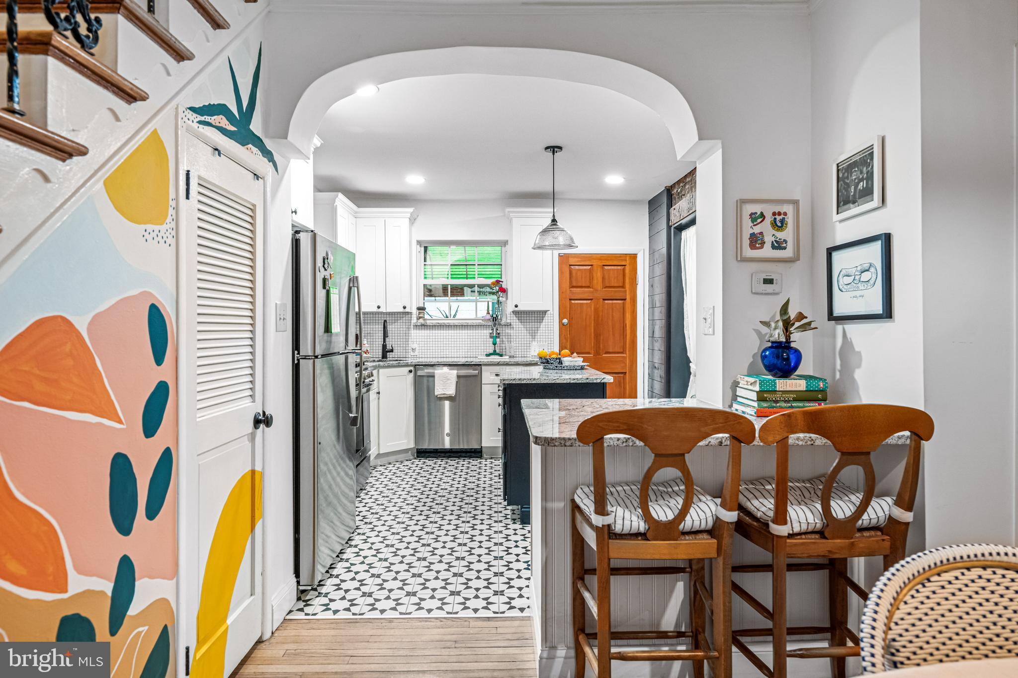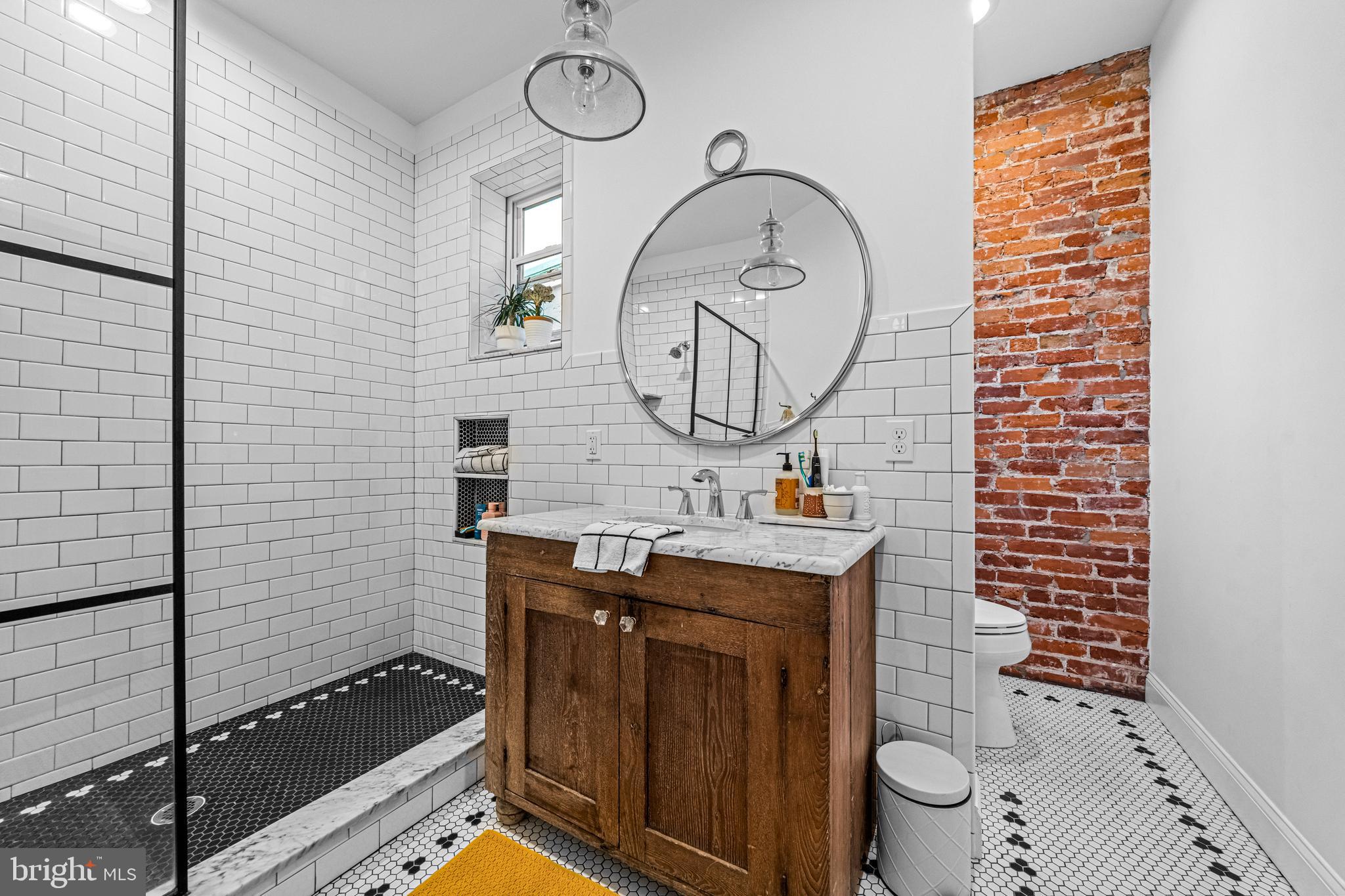 Pride of ownership abounds as this home was meticulously remodeled and restored by the current owners to maintain the original character while adding modern updates. The original floors have been lovingly restored, adding warmth to the space. Charm exudes from the exposed brick in the kitchen and both bathrooms. The spacious living room flows perfectly into the dining room and kitchen, perfect for entertaining. The fully renovated kitchen is a chef's dream, equipped with brand new appliances, granite countertops and a tiled backsplash. The convenience of a fully updated half bath on the first floor adds to the functionality of this home. The sliding barn door to the half bath was built using wood from a horse farm in New Jersey. Off the kitchen is access to the generously-sized backyard, offering plenty of room for entertaining guests or creating your own private oasis.