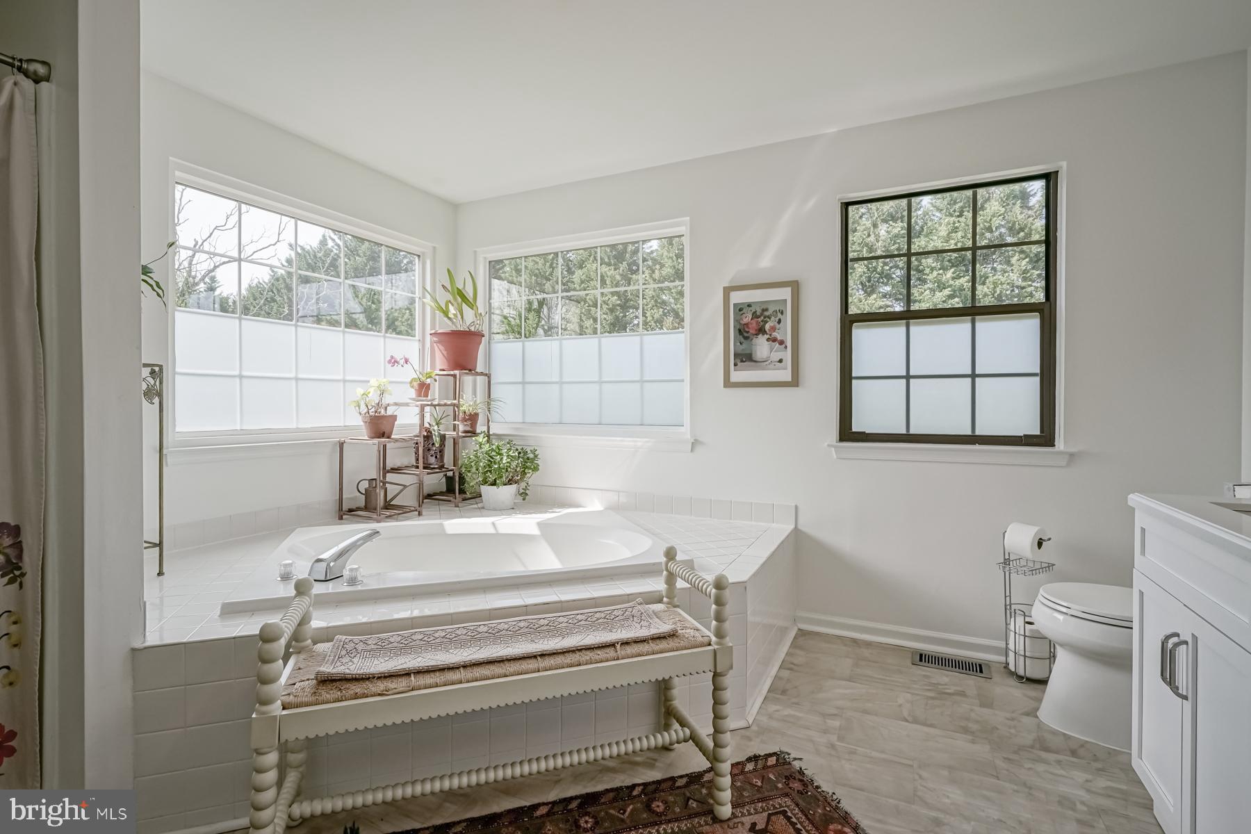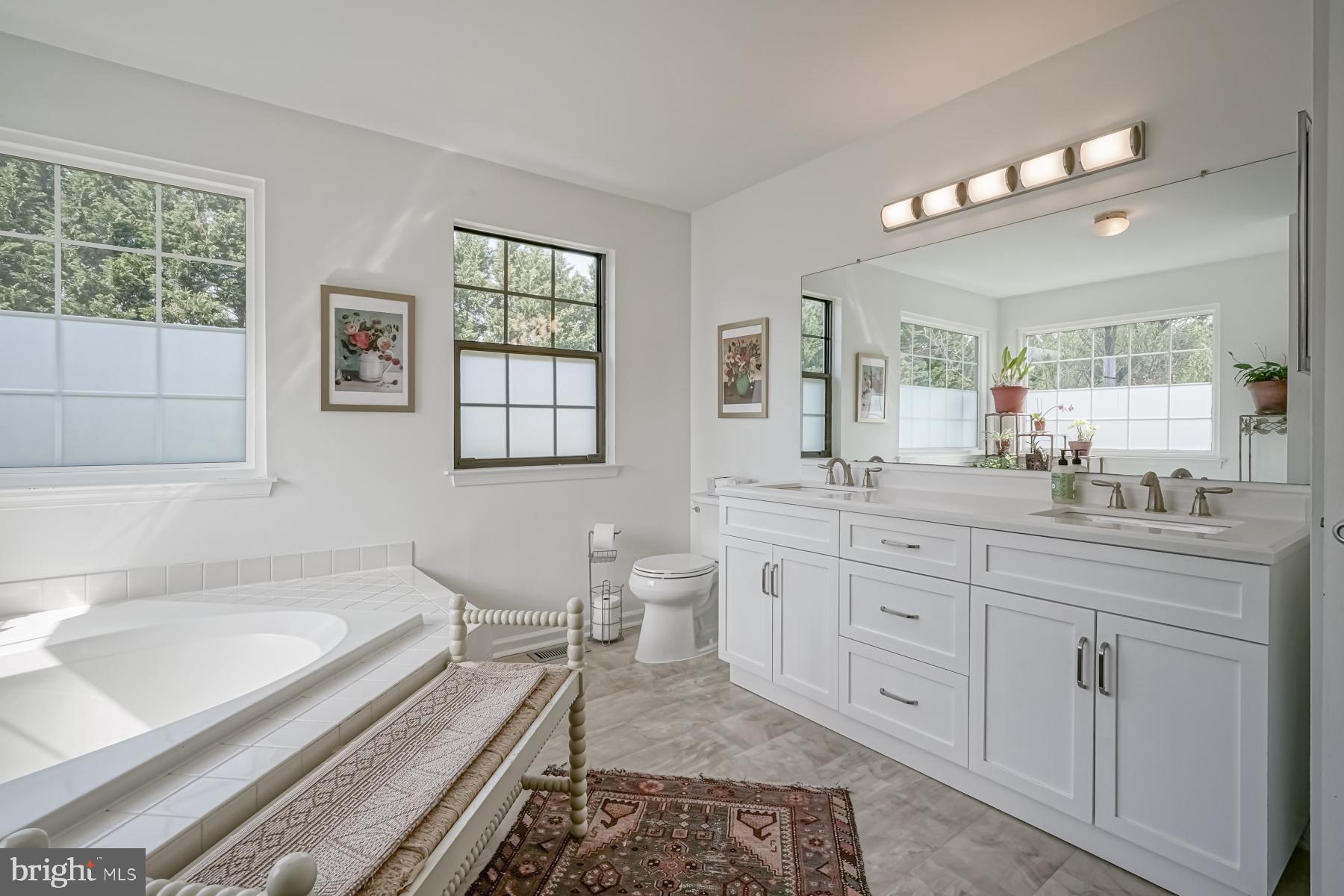 Upstairs you will find two large bedrooms in addition to the primary suite, which features new carpeting, a huge walk-in closet, lots of windows, and a fabulous new bathroom. Enjoy the new double sink vanity, soaking tub, and shower! The additional full bathroom upstairs has already been updated for you as well.