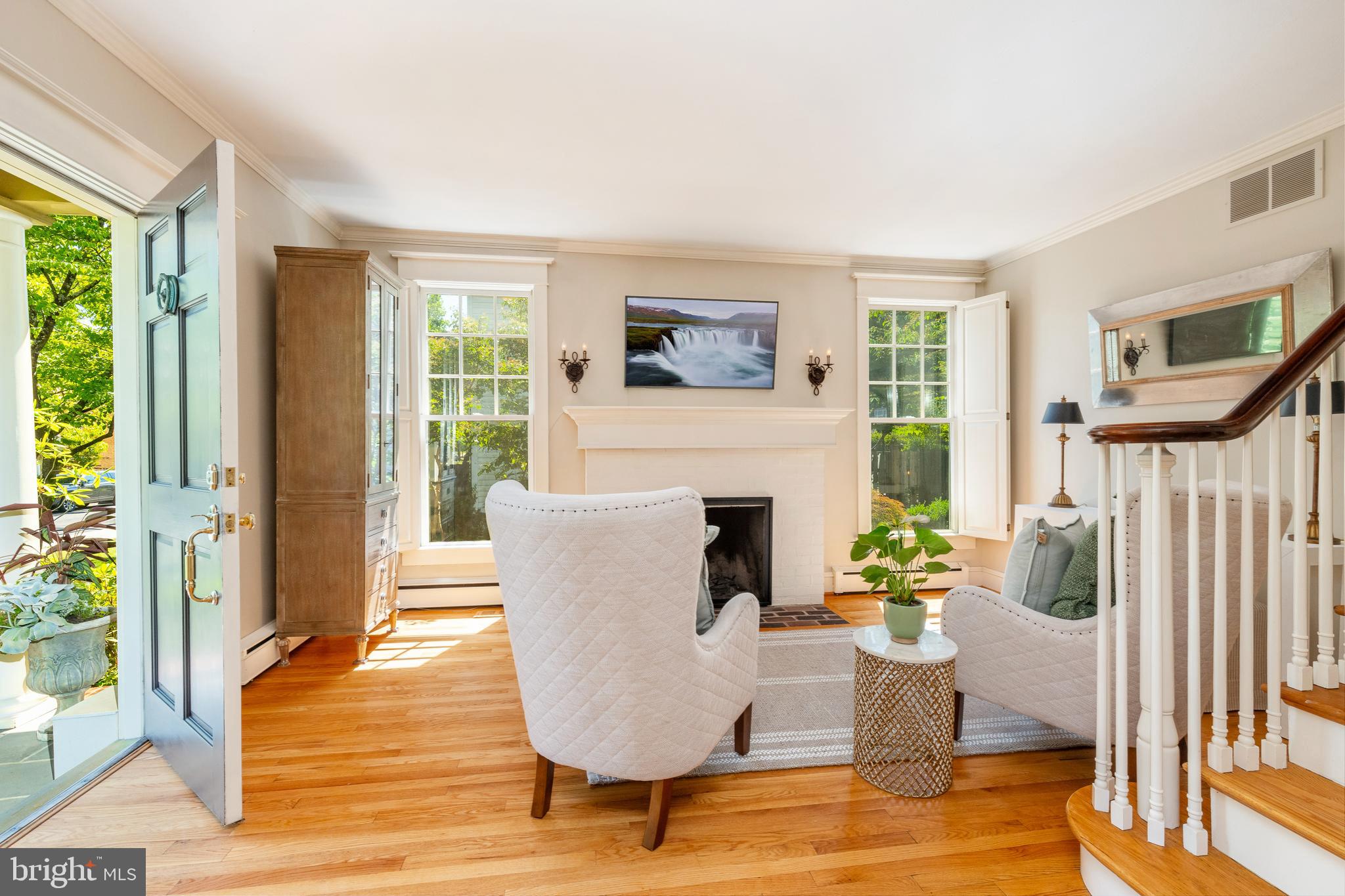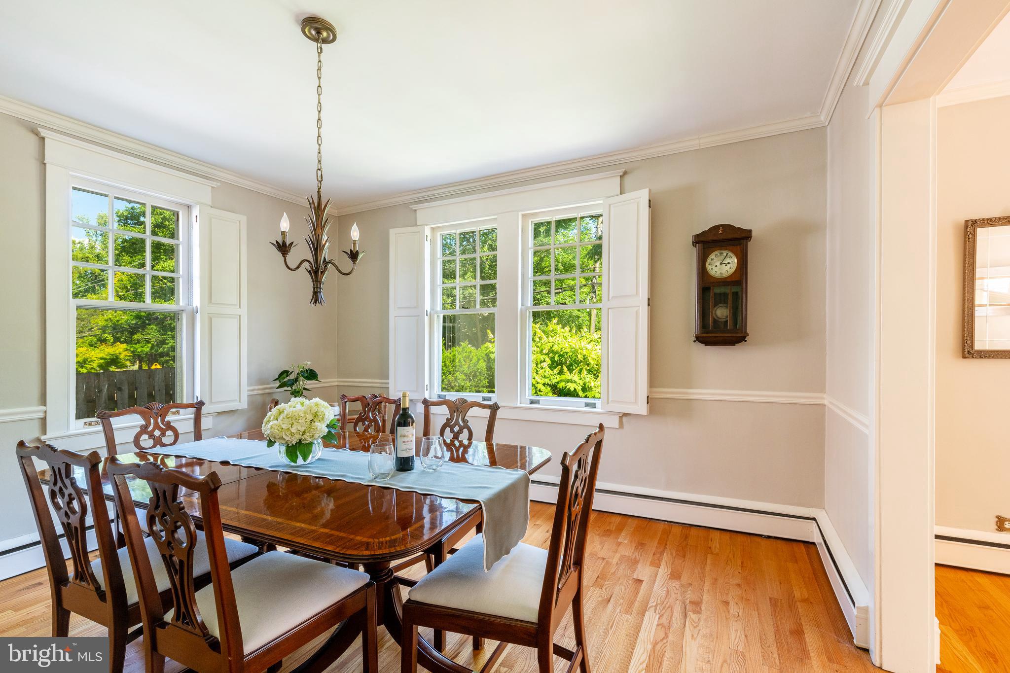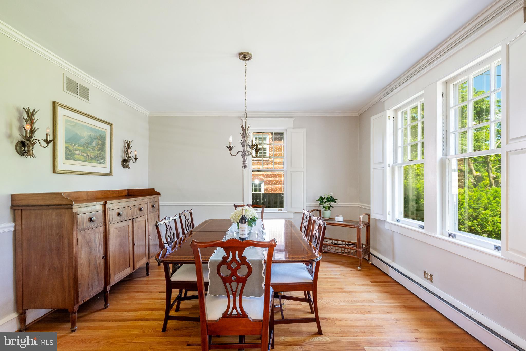 Welcome to this stunning single-family Colonial home in the highly sought-after neighborhood of Haddonfield, New Jersey. A GOLDEN opportunity awaits. Nestled among beautiful trees with a well-manicured lawn, this home boasts impressive landscaping in both the front and back yards. The property features a two-car garage and a wide driveway that can accommodate up to eight cars. As you enter, you'll be greeted by a sunlit living room with massive windows adorned with custom wood shutters, a cozy fireplace, and a grand staircase. The meticulously matched old moldings and custom additions enhance the home's classic charm. Gleaming hardwood floors extend throughout the entire first floor. To the right, you'll find a spacious dining room adorned with an antique chandelier and matching wall lamps. Beyond the dining room lies a coat closet and pantry closet for extra storage. The expansive kitchen features custom cabinets, a white tiled backsplash, soapstone countertops, a Miele dishwasher and stovetop, a brand new XO hood vent, a new Wolf wall oven, a Sub-Zero fridge, a large breakfast island and additional desk area or dining space off the back of the kitchen looks out to the brick paver patio. Adjacent to the kitchen, the family room is equipped with wall shelving and a ceiling fan. A half bath with Toto toilets completes the ground floor. The second-floor houses five bedrooms, all with manufactured flooring, original woodwork and ceiling fans. The home also has a two-zone heating and air conditioning system. Two full bathrooms are located upstairs, with a laundry chute from the primary bathroom leading directly to the washer and dryer in the basement. The unfinished basement provides a spacious area currently used for storage and laundry, complete with cabinets and shelving that will remain. Outside, the rear porch features a ceiling fan and a stationary canopy, offering a comfortable outdoor living space. The backyard is lush with greenery, well-trimmed grass, and charming spots for relaxation. The level of care and attention is evident from the brick pavers to the well maintained fire pit area and over to your rare two car garage. This home is minutes away from the Haddonfield subway station, Haddonfield Middle School, Penny's Bagels, The Bistro at Haddonfield, Saxbys, Mare Monte, and several shopping malls, making it perfectly situated for convenient living. Make this your forever home and schedule a viewing today!