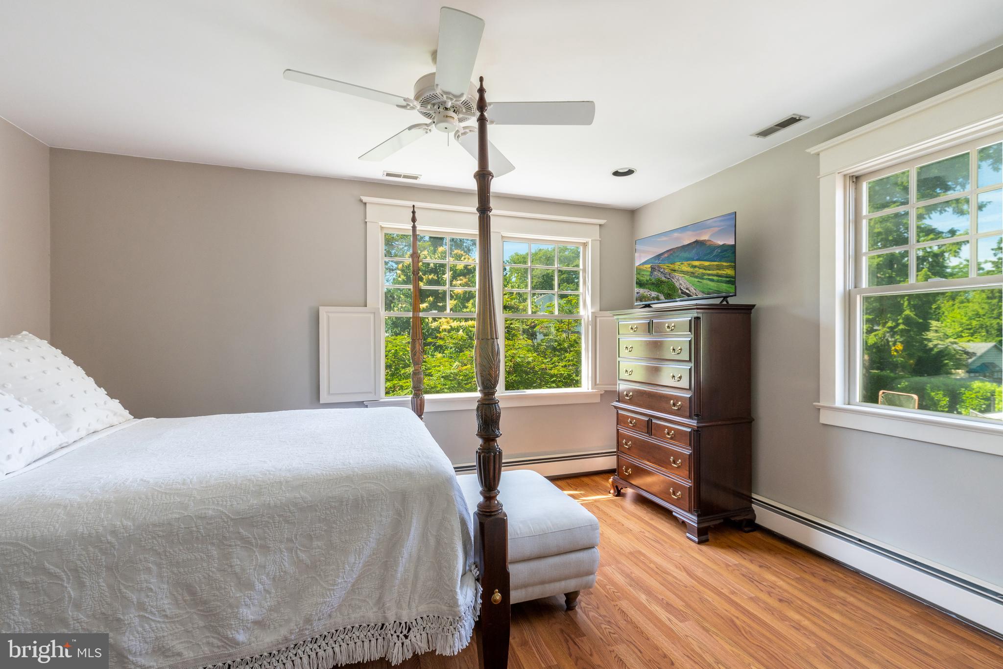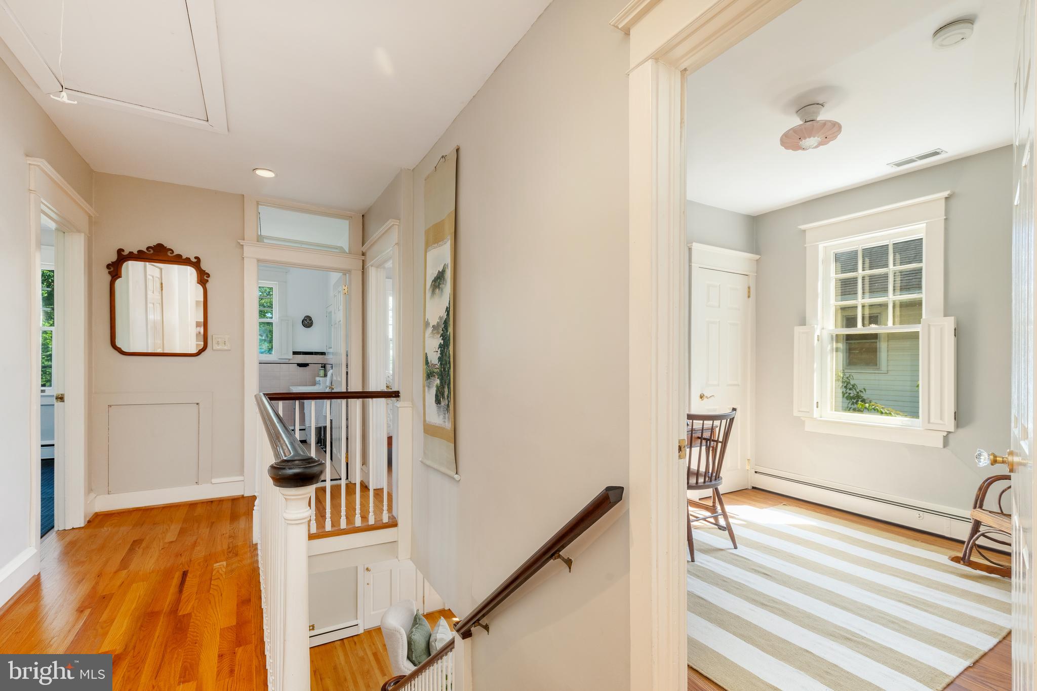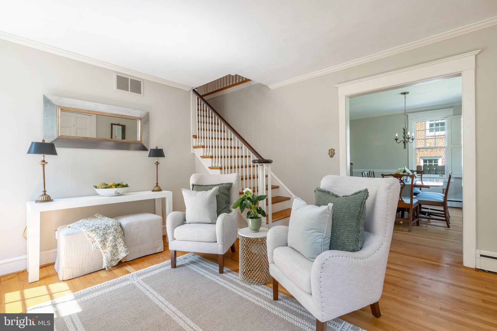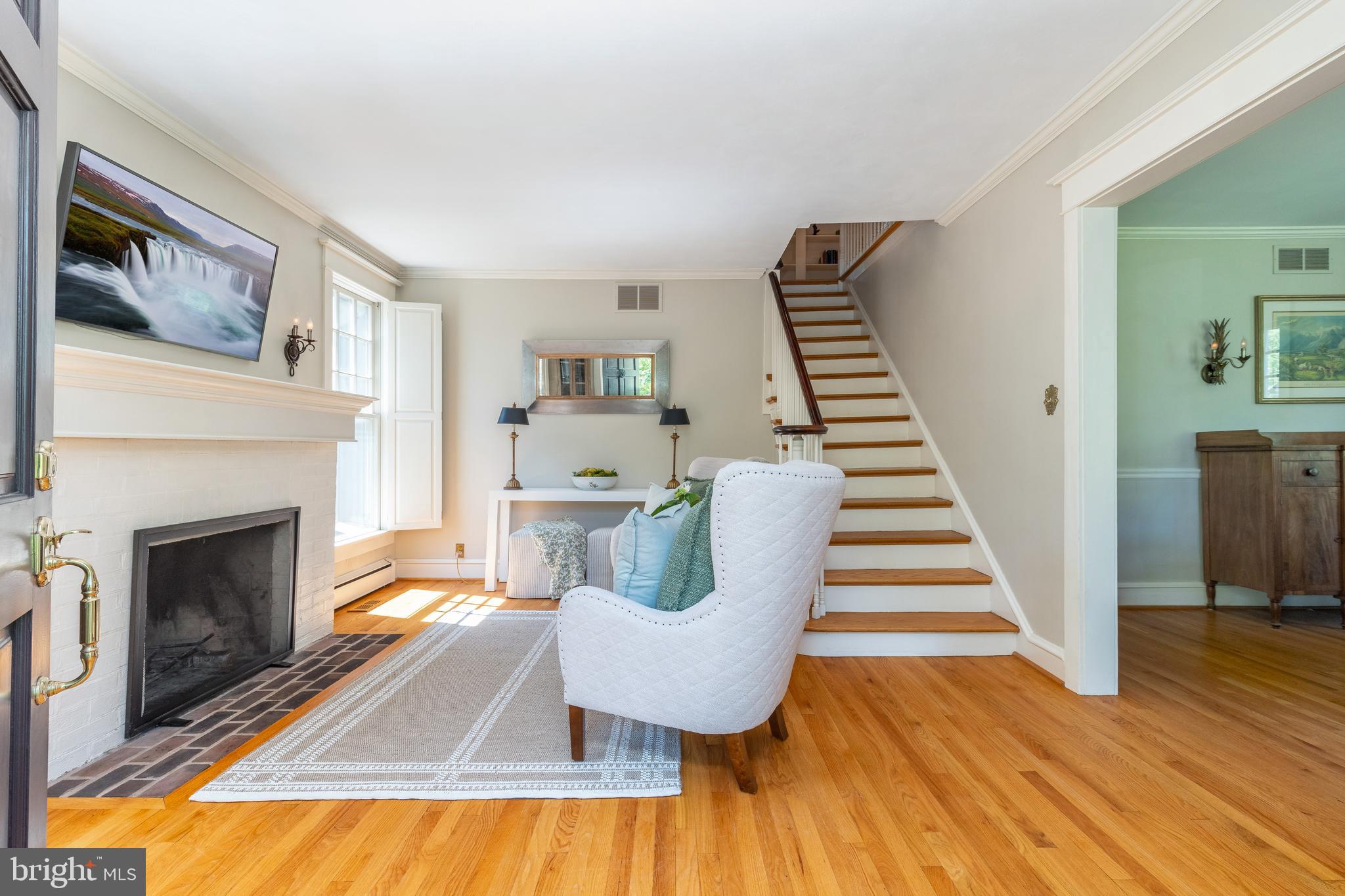 Welcome to this stunning single-family Colonial home in the highly sought-after neighborhood of Haddonfield, New Jersey. A GOLDEN opportunity awaits. Nestled among beautiful trees with a well-manicured lawn, this home boasts impressive landscaping in both the front and back yards. The property features a two-car garage and a wide driveway that can accommodate up to eight cars. As you enter, you'll be greeted by a sunlit living room with massive windows adorned with custom wood shutters, a cozy fireplace, and a grand staircase. The meticulously matched old moldings and custom additions enhance the home's classic charm. Gleaming hardwood floors extend throughout the entire first floor. To the right, you'll find a spacious dining room adorned with an antique chandelier and matching wall lamps. Beyond the dining room lies a coat closet and pantry closet for extra storage. The expansive kitchen features custom cabinets, a white tiled backsplash, soapstone countertops, a Miele dishwasher and stovetop, a brand new XO hood vent, a new Wolf wall oven, a Sub-Zero fridge, a large breakfast island and additional desk area or dining space off the back of the kitchen looks out to the brick paver patio. Adjacent to the kitchen, the family room is equipped with wall shelving and a ceiling fan. A half bath with Toto toilets completes the ground floor. The second-floor houses five bedrooms, all with manufactured flooring, original woodwork and ceiling fans. The home also has a two-zone heating and air conditioning system. Two full bathrooms are located upstairs, with a laundry chute from the primary bathroom leading directly to the washer and dryer in the basement. The unfinished basement provides a spacious area currently used for storage and laundry, complete with cabinets and shelving that will remain. Outside, the rear porch features a ceiling fan and a stationary canopy, offering a comfortable outdoor living space. The backyard is lush with greenery, well-trimmed grass, and charming spots for relaxation. The level of care and attention is evident from the brick pavers to the well maintained fire pit area and over to your rare two car garage. This home is minutes away from the Haddonfield subway station, Haddonfield Middle School, Penny's Bagels, The Bistro at Haddonfield, Saxbys, Mare Monte, and several shopping malls, making it perfectly situated for convenient living. Make this your forever home and schedule a viewing today!