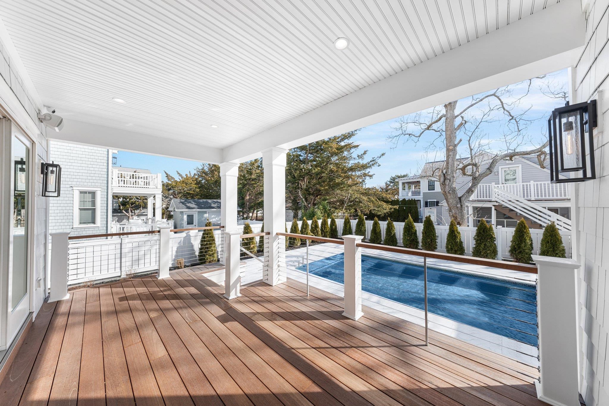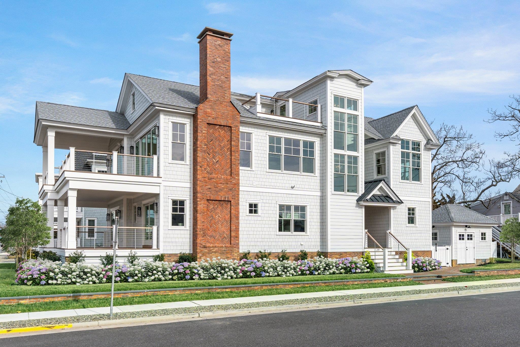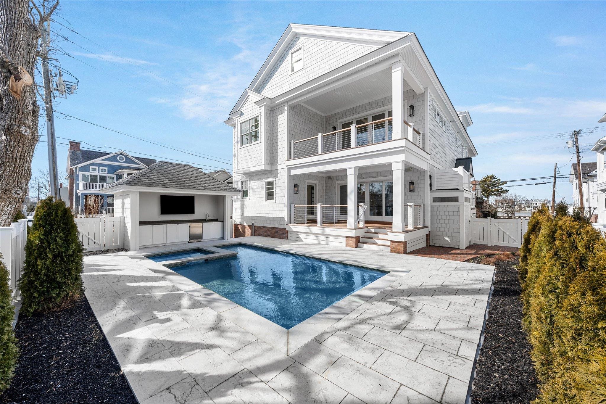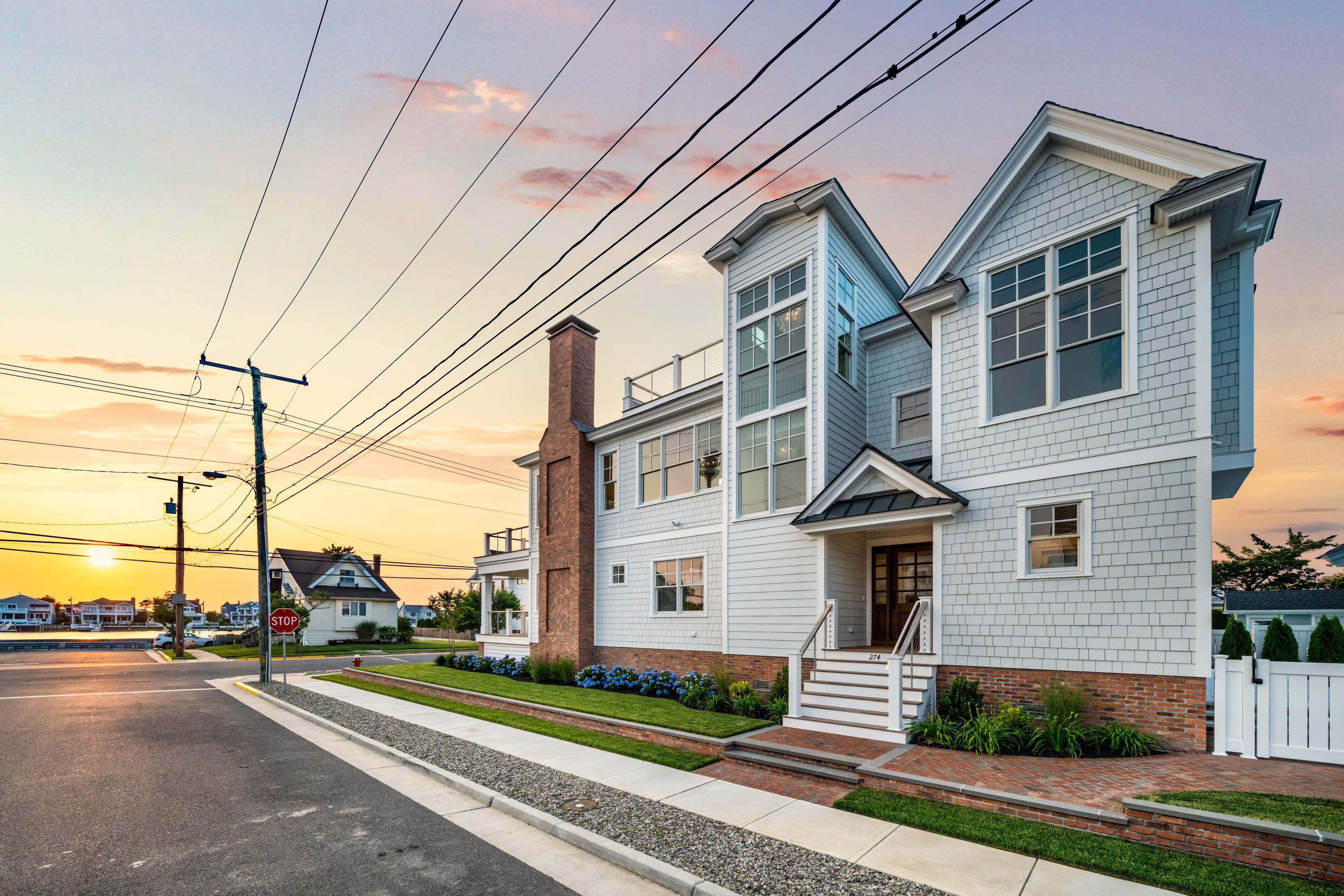 Nestled in the heart of Stone Harbor, 274 106th Street is a newly constructed residence designed by the renowned OSK Design Partners, offering the ultimate in coastal sophistication and luxury. This six-bedroom, six-bathroom sanctuary features sweeping views of Carnival Bay, where the sun sets in breathtaking fashion. Perfectly positioned for those seeking the finest in shore living, the home is located just ten blocks from 96th Street, offering both proximity to restaurants and shops and privacy. Set on a coveted corner lot with an abundance of light and air, this exceptional property spans 3,230 square feet of meticulously designed living space. Fully furnished and move-in ready, the home seamlessly blends modern elegance with the timeless coastal charm of Stone Harbor. The focal point of this remarkable home is the expansive, unobstructed southwestern-facing bay views, visible from multiple decks spanning over 1,400 square feet. Whether you're sipping coffee at sunrise or enjoying cocktails at sunset, the panoramic views provide a serene and unparalleled backdrop for everyday living. The spacious interior is thoughtfully designed with six generously sized bedrooms, four full bathrooms, and two powder rooms, offering privacy and comfort for both family and guests. On the first floor, the oversized lot allows for a uniquely large family room, complete with coffered ceilings and a white oak wet bar with under-counter Sub-Zero refrigeration. In addition to the family room, there is a spacious laundry room and a powder room with its own convenient, tiled entrance off the pool. The first floor also features four bedroom suites, two of which have private access to the front covered deck with bay views. The fourth bedroom is a must-have custom bunk room for children or grandchildren. Lastly, a versatile, cozy space is currently designed as an office but offers endless possibilities-- whether transformed into a walk-in wine cellar or repurposed for additional storage to suit your needs. At the heart of the home is the gourmet kitchen, outfitted with top-of-the-line Sub-Zero, Wolf, and Bosch appliances, custom maple cabinetry, a walk-in pantry, and a large, functional center island. Adjacent to the kitchen, the two-story great room features vaulted ceilings, exquisite tongue-and-groove wood paneling, a gas fireplace, expansive dining area, and oversized windows that bathe the space in natural light while framing the stunning bay views. Rounding out the second story, you'll find an additional guest bedroom with southeastern exposure, as well as the luxurious primary suite. The primary suite is a true retreat, complete with a private covered deck, walk-in closet, custom bath with a double vanity, and a spa-like walk-in shower. Step outside into your own private backyard oasis, featuring a custom gunite pool with a six-person spa and sun shelf, all framed by a luxurious sandblasted marble patio. Adjacent to the pool, a charming cabana with a wet bar and ample storage provides an ideal space for poolside gatherings or quiet retreat. Additionally, the third-floor roof deck offers breathtaking panoramic views, with a convenient wet bar just inside--perfect for enjoying sunset cocktails during countless happy hours. This home is equipped with an audio system, HD CCTV security cameras, and sophisticated exterior lighting, elevating both convenience and ambiance. Throughout the home, custom cabinetry, premium finishes, and impeccable craftsmanship are evident, ensuring an unparalleled level of luxury. Perfectly situated in the quieter south end of the island, 274 106th Street offers the rare combination of privacy and proximity to all that Stone Harbor has to offer. Whether you are looking to entertain, unwind, or simply enjoy the beauty of coastal living, this exceptional residence provides it all.