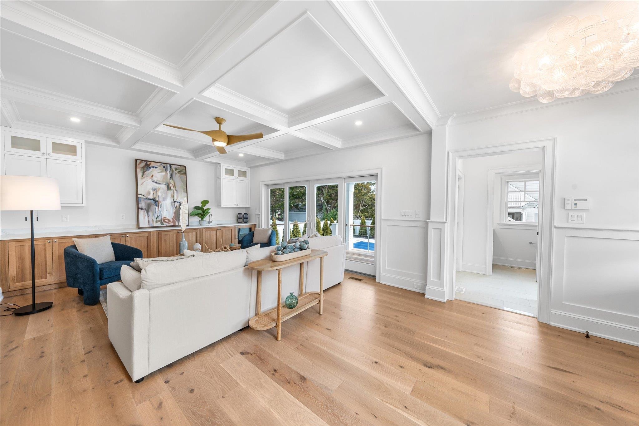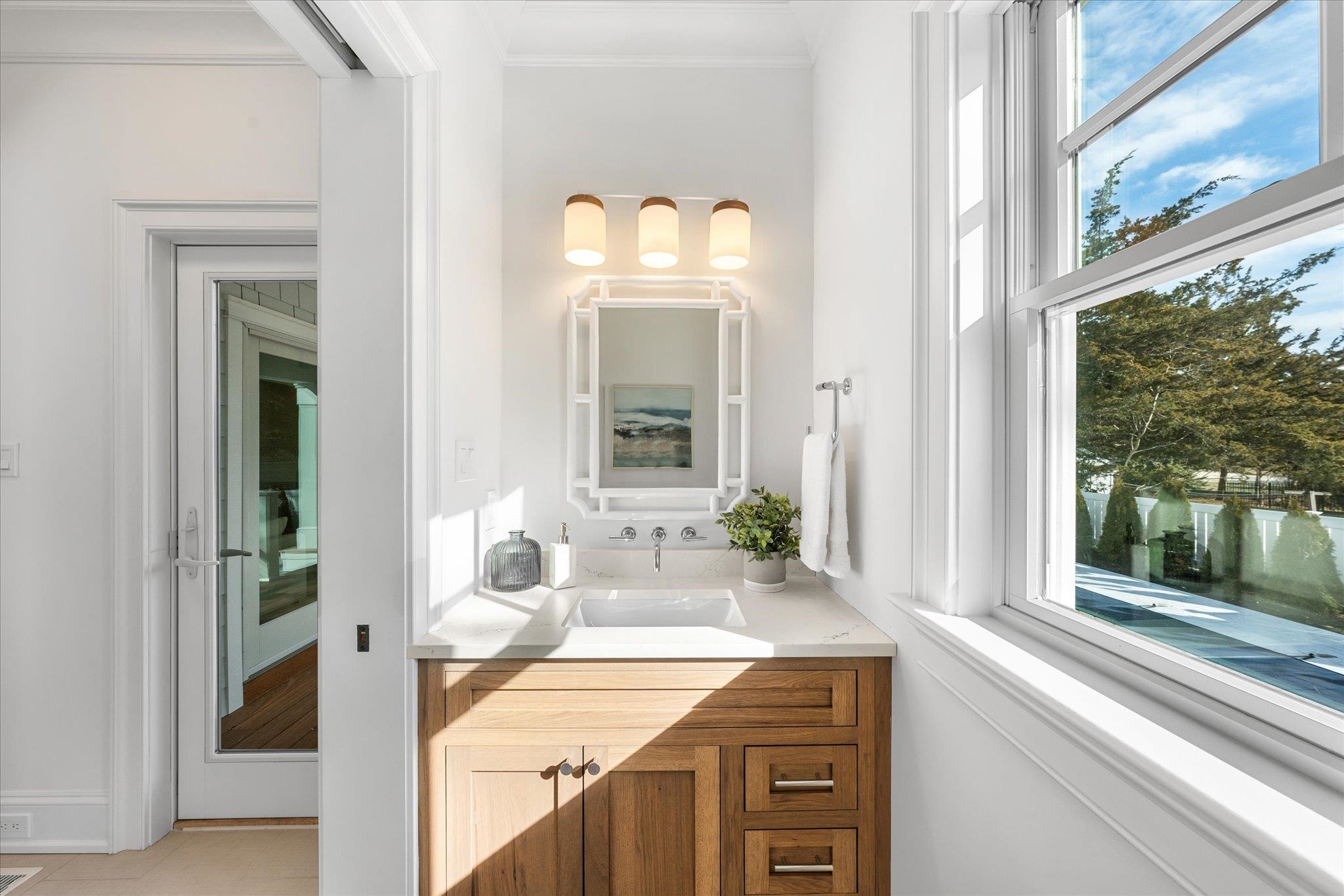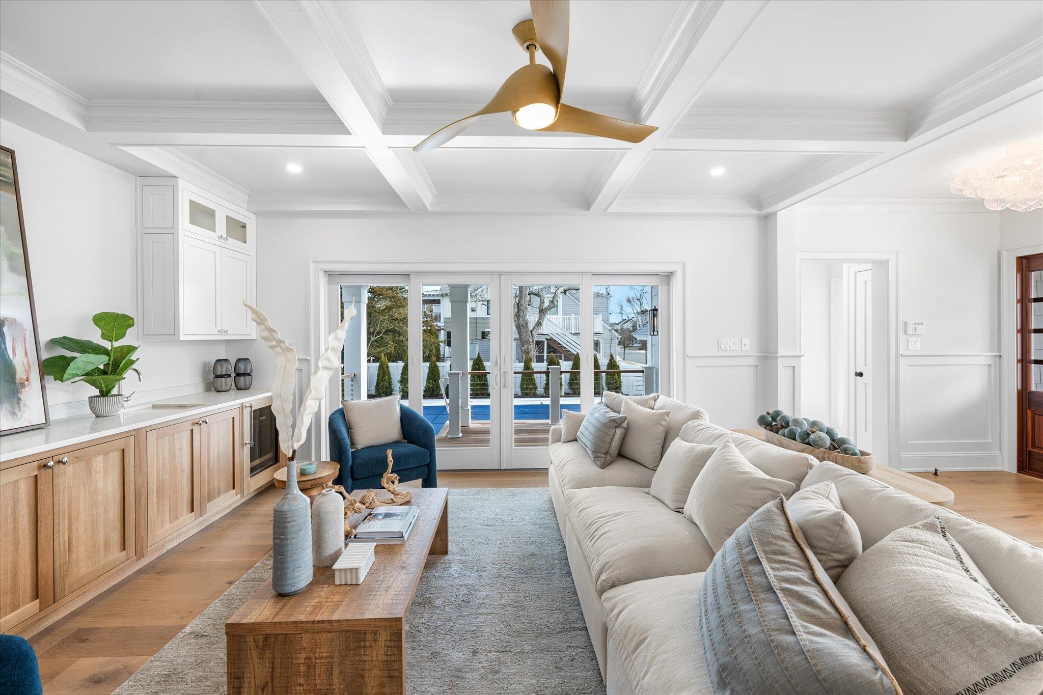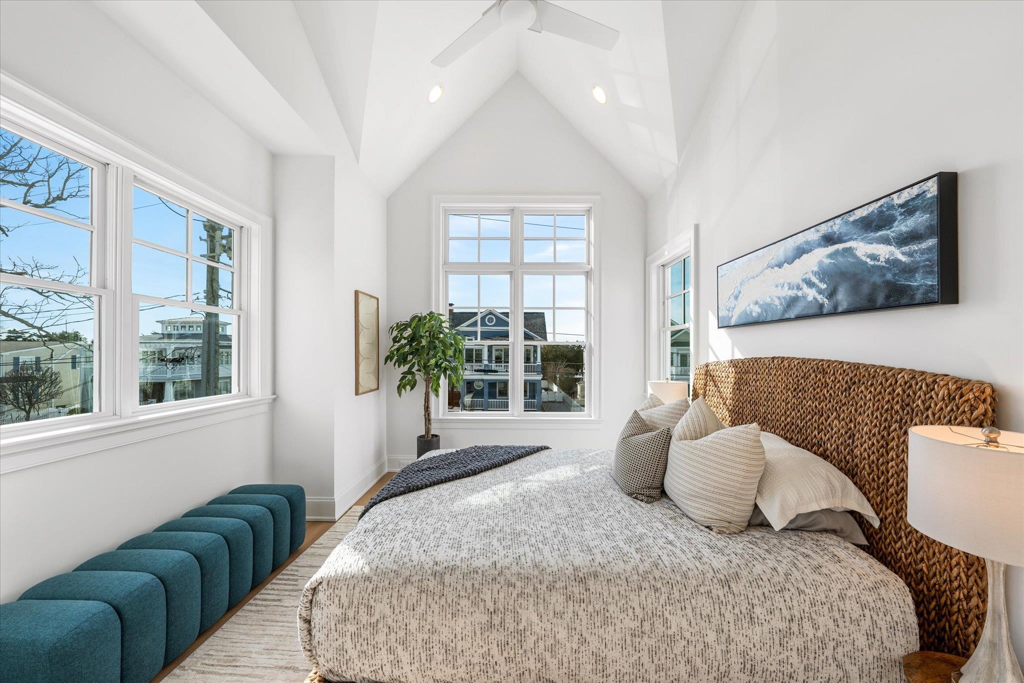 Nestled in the heart of Stone Harbor, 274 106th Street is a newly constructed residence designed by the renowned OSK Design Partners, offering the ultimate in coastal sophistication and luxury. This six-bedroom, six-bathroom sanctuary features sweeping views of Carnival Bay, where the sun sets in breathtaking fashion. Perfectly positioned for those seeking the finest in shore living, the home is located just ten blocks from 96th Street, offering both proximity to restaurants and shops and privacy. Set on a coveted corner lot with an abundance of light and air, this exceptional property spans 3,230 square feet of meticulously designed living space. Fully furnished and move-in ready, the home seamlessly blends modern elegance with the timeless coastal charm of Stone Harbor. The focal point of this remarkable home is the expansive, unobstructed southwestern-facing bay views, visible from multiple decks spanning over 1,400 square feet. Whether you're sipping coffee at sunrise or enjoying cocktails at sunset, the panoramic views provide a serene and unparalleled backdrop for everyday living. The spacious interior is thoughtfully designed with six generously sized bedrooms, four full bathrooms, and two powder rooms, offering privacy and comfort for both family and guests. On the first floor, the oversized lot allows for a uniquely large family room, complete with coffered ceilings and a white oak wet bar with under-counter Sub-Zero refrigeration. In addition to the family room, there is a spacious laundry room and a powder room with its own convenient, tiled entrance off the pool. The first floor also features four bedroom suites, two of which have private access to the front covered deck with bay views. The fourth bedroom is a must-have custom bunk room for children or grandchildren. Lastly, a versatile, cozy space is currently designed as an office but offers endless possibilities-- whether transformed into a walk-in wine cellar or repurposed for additional storage to suit your needs. At the heart of the home is the gourmet kitchen, outfitted with top-of-the-line Sub-Zero, Wolf, and Bosch appliances, custom maple cabinetry, a walk-in pantry, and a large, functional center island. Adjacent to the kitchen, the two-story great room features vaulted ceilings, exquisite tongue-and-groove wood paneling, a gas fireplace, expansive dining area, and oversized windows that bathe the space in natural light while framing the stunning bay views. Rounding out the second story, you'll find an additional guest bedroom with southeastern exposure, as well as the luxurious primary suite. The primary suite is a true retreat, complete with a private covered deck, walk-in closet, custom bath with a double vanity, and a spa-like walk-in shower. Step outside into your own private backyard oasis, featuring a custom gunite pool with a six-person spa and sun shelf, all framed by a luxurious sandblasted marble patio. Adjacent to the pool, a charming cabana with a wet bar and ample storage provides an ideal space for poolside gatherings or quiet retreat. Additionally, the third-floor roof deck offers breathtaking panoramic views, with a convenient wet bar just inside--perfect for enjoying sunset cocktails during countless happy hours. This home is equipped with an audio system, HD CCTV security cameras, and sophisticated exterior lighting, elevating both convenience and ambiance. Throughout the home, custom cabinetry, premium finishes, and impeccable craftsmanship are evident, ensuring an unparalleled level of luxury. Perfectly situated in the quieter south end of the island, 274 106th Street offers the rare combination of privacy and proximity to all that Stone Harbor has to offer. Whether you are looking to entertain, unwind, or simply enjoy the beauty of coastal living, this exceptional residence provides it all.
