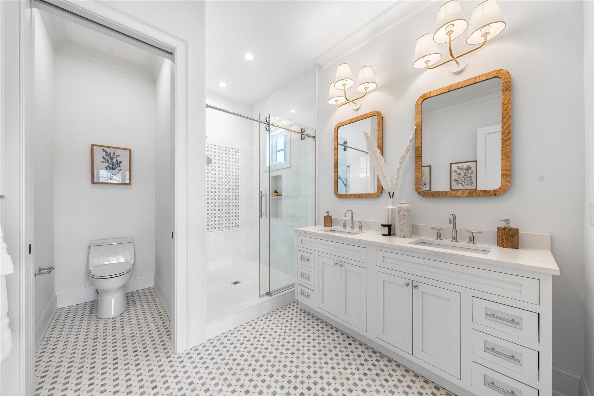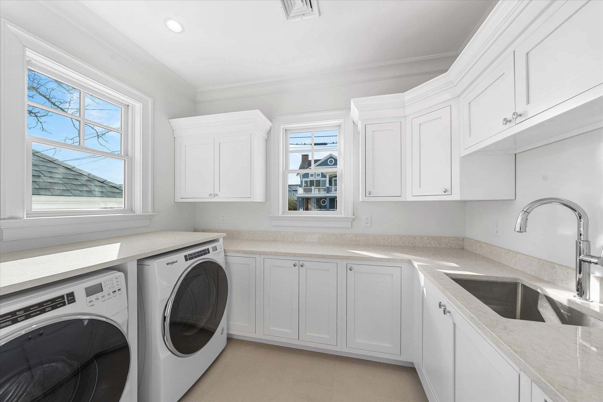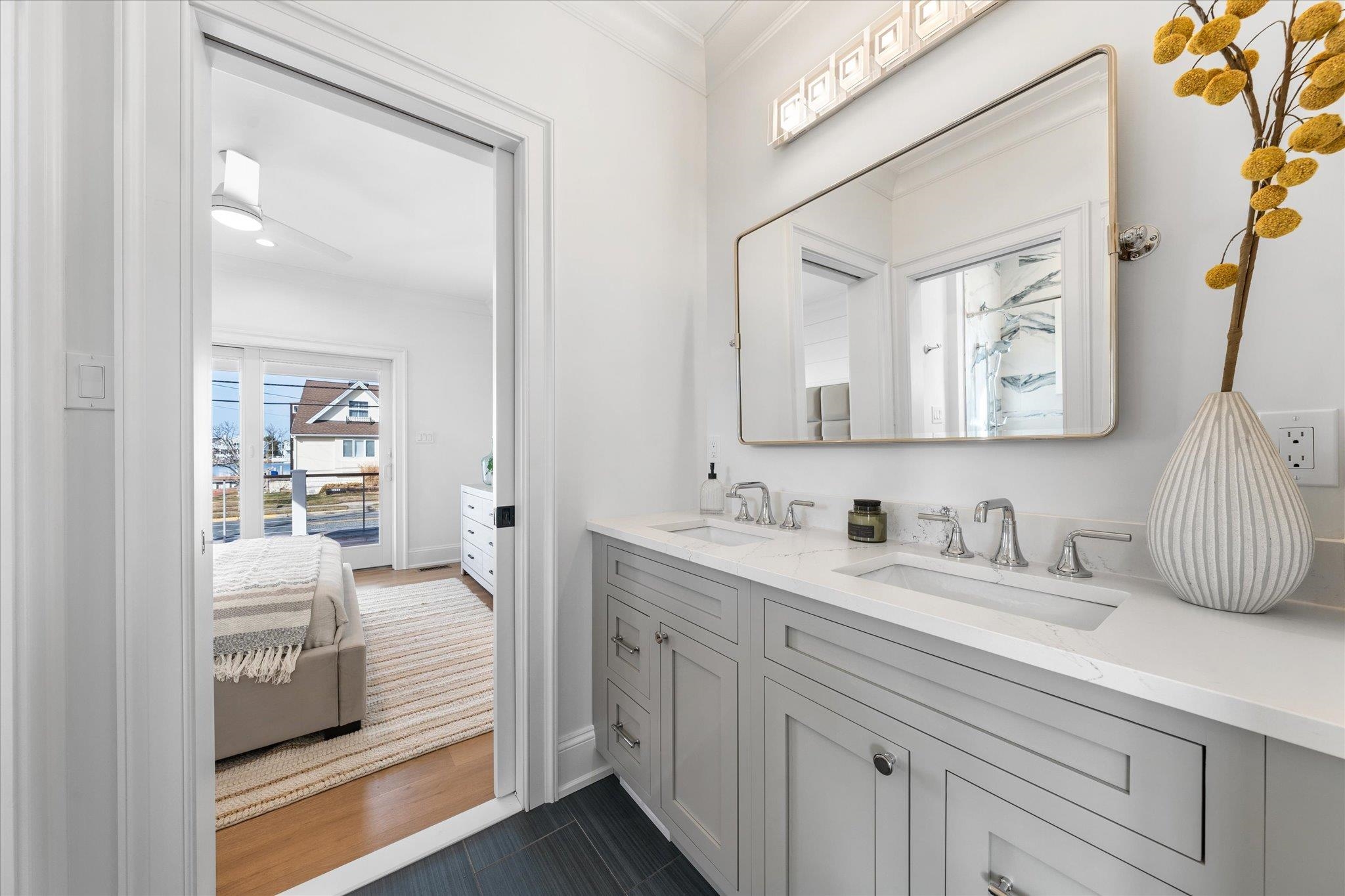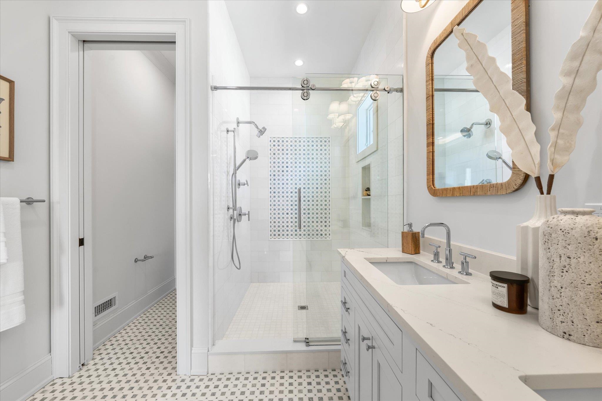 Nestled in the heart of Stone Harbor, 274 106th Street is a newly constructed residence designed by the renowned OSK Design Partners, offering the ultimate in coastal sophistication and luxury. This six-bedroom, six-bathroom sanctuary features sweeping views of Carnival Bay, where the sun sets in breathtaking fashion. Perfectly positioned for those seeking the finest in shore living, the home is located just ten blocks from 96th Street, offering both proximity to restaurants and shops and privacy. Set on a coveted corner lot with an abundance of light and air, this exceptional property spans 3,230 square feet of meticulously designed living space. Fully furnished and move-in ready, the home seamlessly blends modern elegance with the timeless coastal charm of Stone Harbor. The focal point of this remarkable home is the expansive, unobstructed southwestern-facing bay views, visible from multiple decks spanning over 1,400 square feet. Whether you're sipping coffee at sunrise or enjoying cocktails at sunset, the panoramic views provide a serene and unparalleled backdrop for everyday living. The spacious interior is thoughtfully designed with six generously sized bedrooms, four full bathrooms, and two powder rooms, offering privacy and comfort for both family and guests. On the first floor, the oversized lot allows for a uniquely large family room, complete with coffered ceilings and a white oak wet bar with under-counter Sub-Zero refrigeration. In addition to the family room, there is a spacious laundry room and a powder room with its own convenient, tiled entrance off the pool. The first floor also features four bedroom suites, two of which have private access to the front covered deck with bay views. The fourth bedroom is a must-have custom bunk room for children or grandchildren. Lastly, a versatile, cozy space is currently designed as an office but offers endless possibilities-- whether transformed into a walk-in wine cellar or repurposed for additional storage to suit your needs. At the heart of the home is the gourmet kitchen, outfitted with top-of-the-line Sub-Zero, Wolf, and Bosch appliances, custom maple cabinetry, a walk-in pantry, and a large, functional center island. Adjacent to the kitchen, the two-story great room features vaulted ceilings, exquisite tongue-and-groove wood paneling, a gas fireplace, expansive dining area, and oversized windows that bathe the space in natural light while framing the stunning bay views. Rounding out the second story, you'll find an additional guest bedroom with southeastern exposure, as well as the luxurious primary suite. The primary suite is a true retreat, complete with a private covered deck, walk-in closet, custom bath with a double vanity, and a spa-like walk-in shower. Step outside into your own private backyard oasis, featuring a custom gunite pool with a six-person spa and sun shelf, all framed by a luxurious sandblasted marble patio. Adjacent to the pool, a charming cabana with a wet bar and ample storage provides an ideal space for poolside gatherings or quiet retreat. Additionally, the third-floor roof deck offers breathtaking panoramic views, with a convenient wet bar just inside--perfect for enjoying sunset cocktails during countless happy hours. This home is equipped with an audio system, HD CCTV security cameras, and sophisticated exterior lighting, elevating both convenience and ambiance. Throughout the home, custom cabinetry, premium finishes, and impeccable craftsmanship are evident, ensuring an unparalleled level of luxury. Perfectly situated in the quieter south end of the island, 274 106th Street offers the rare combination of privacy and proximity to all that Stone Harbor has to offer. Whether you are looking to entertain, unwind, or simply enjoy the beauty of coastal living, this exceptional residence provides it all.