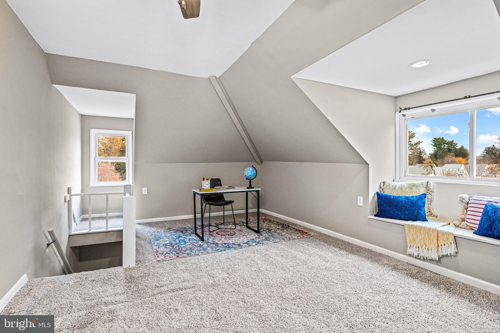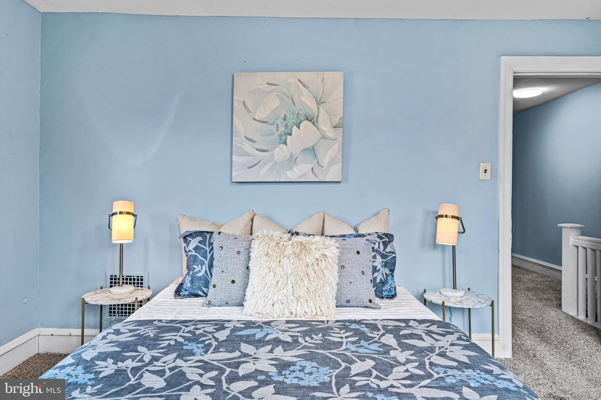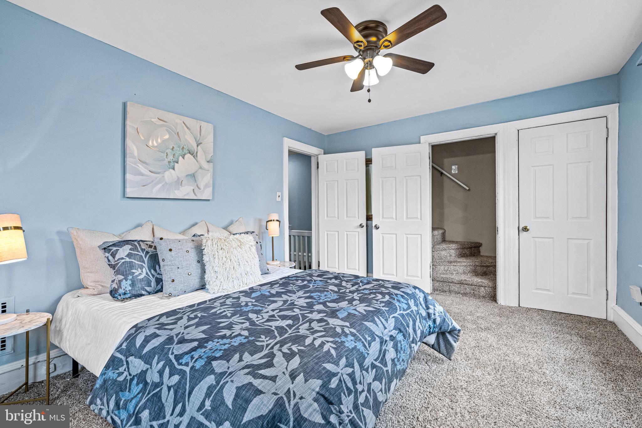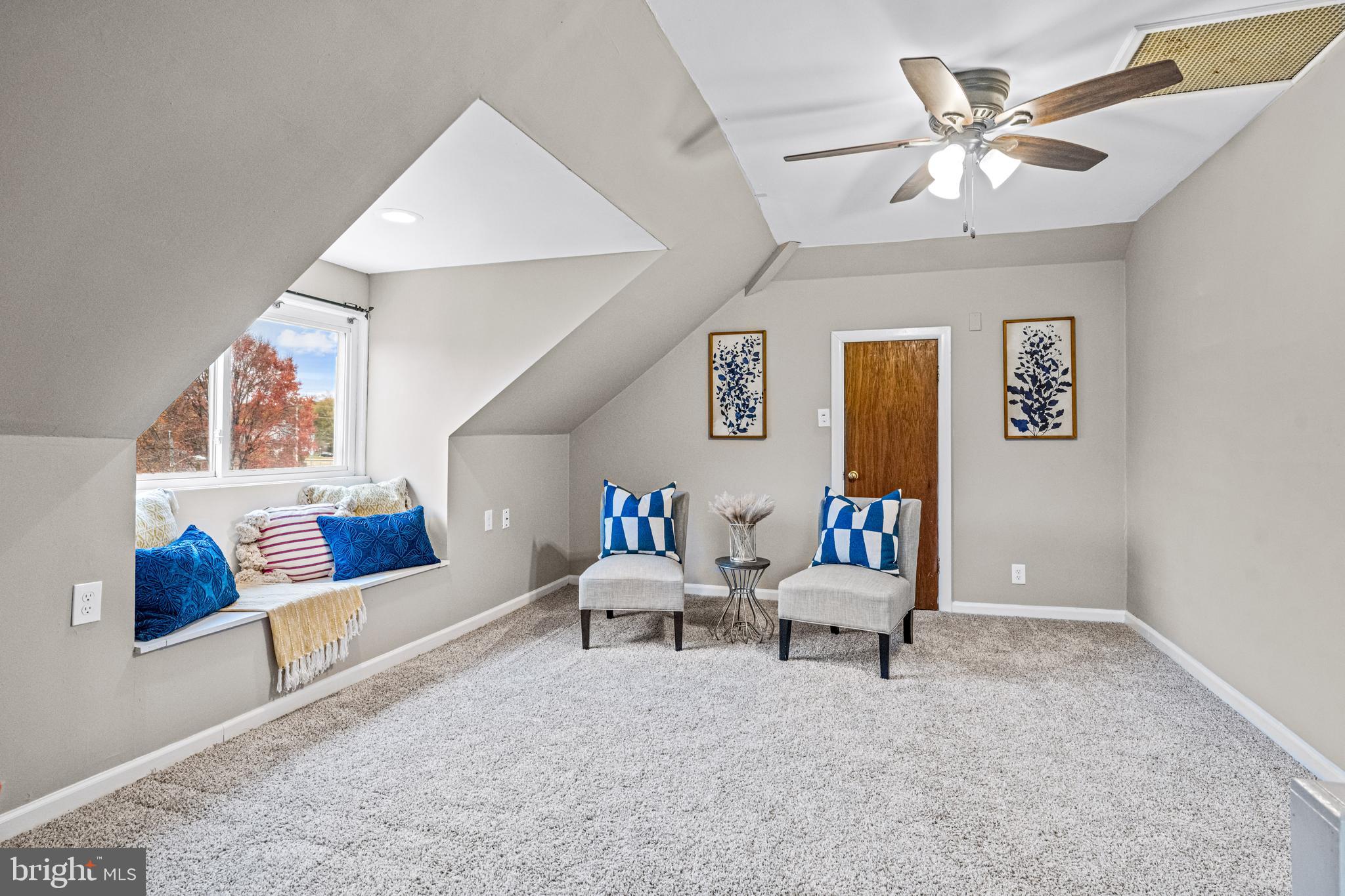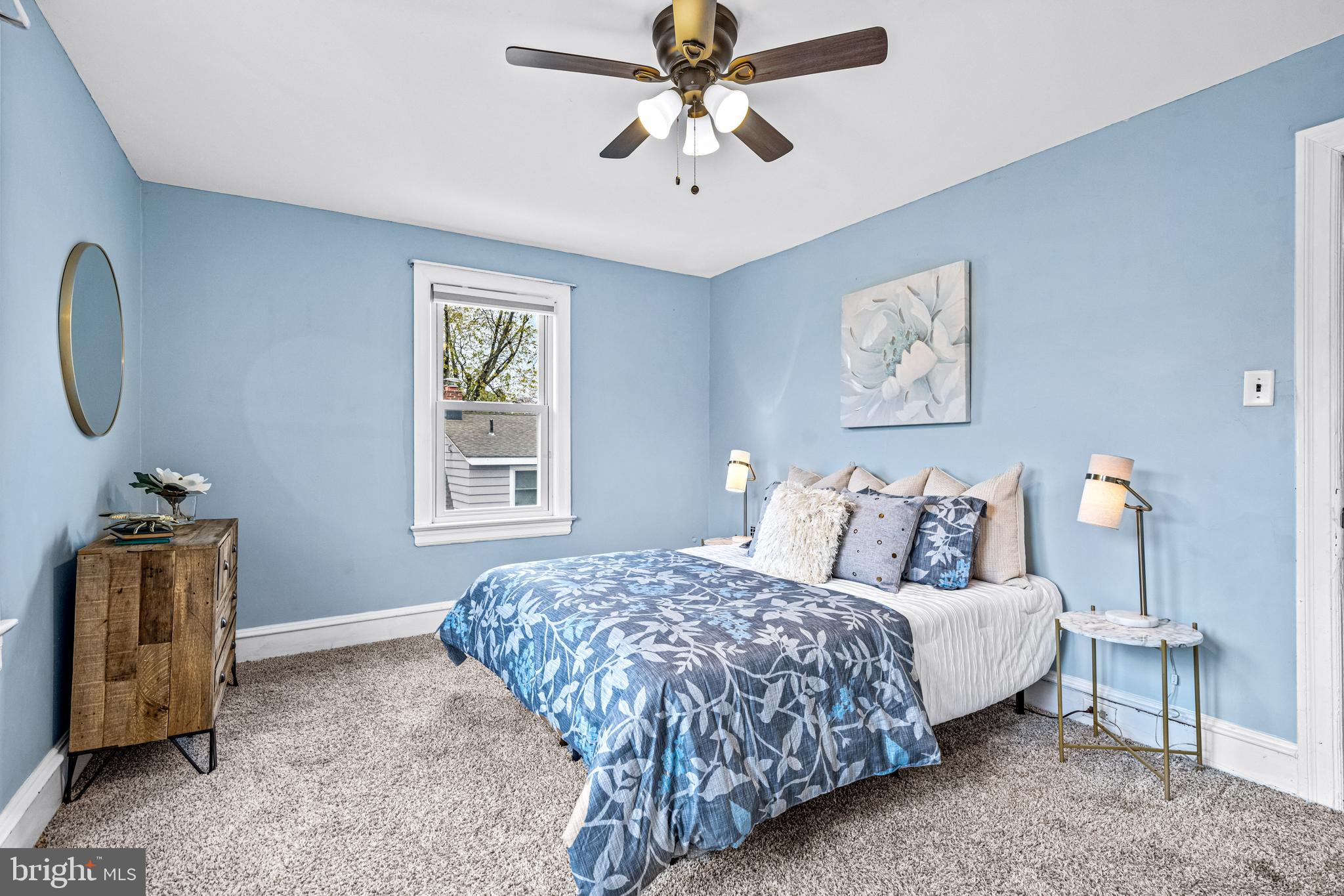 Upstairs, both the second and third floors as well as the stairs have newer carpeting. The spacious primary bedroom features bonus space with stairs leading to the third floor, providing a versatile area that could be utilized as an office, playroom, or den. The additional bedrooms on the second level are also generously sized. Rounding out the second floor is the updated full bathroom with newer floors and a new plumbing stack.