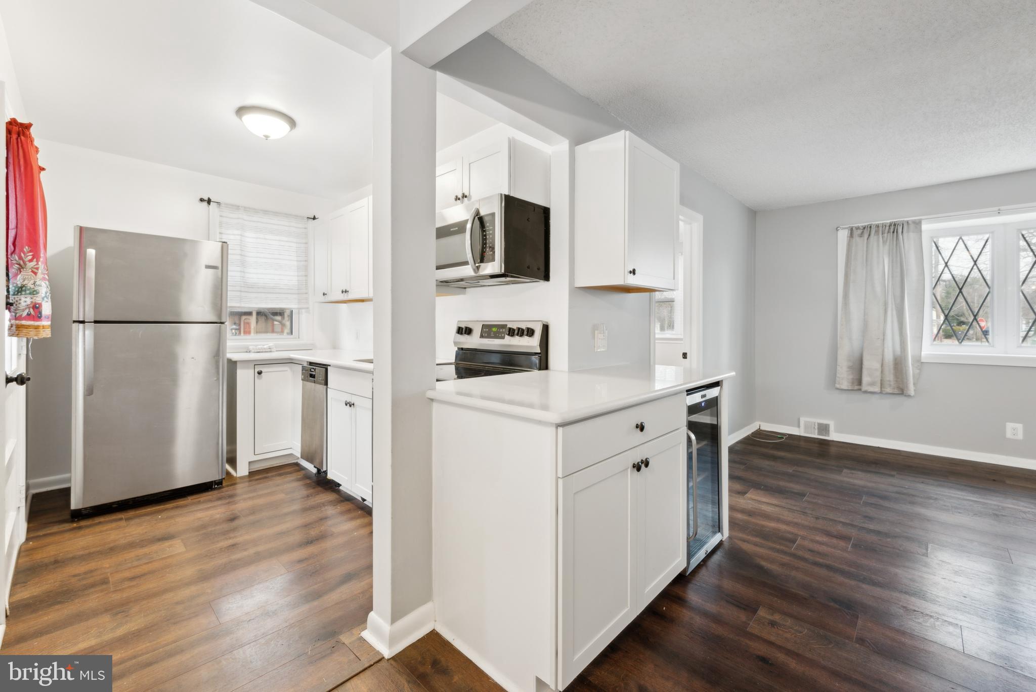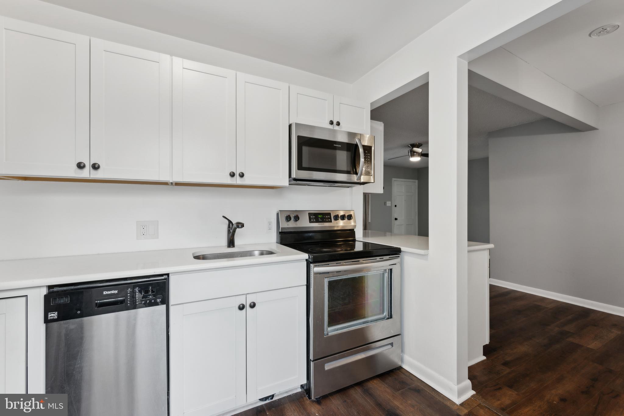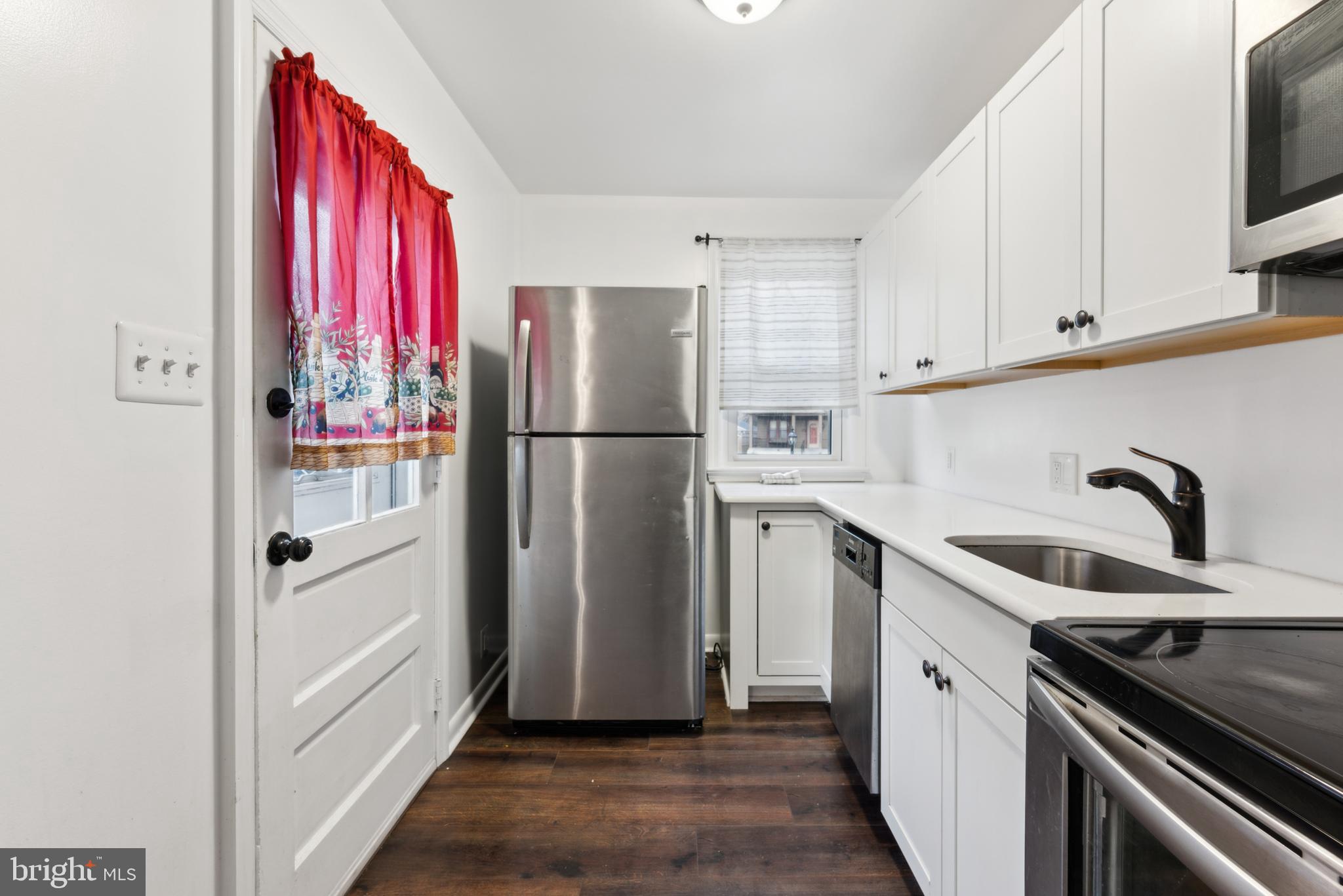 The modern kitchen boasts stylish white shaker-style cabinets, durable quartz countertops, and a full suite of appliances. Two beautifully designed full bathrooms on the main level add to the home's functionality and appeal.
