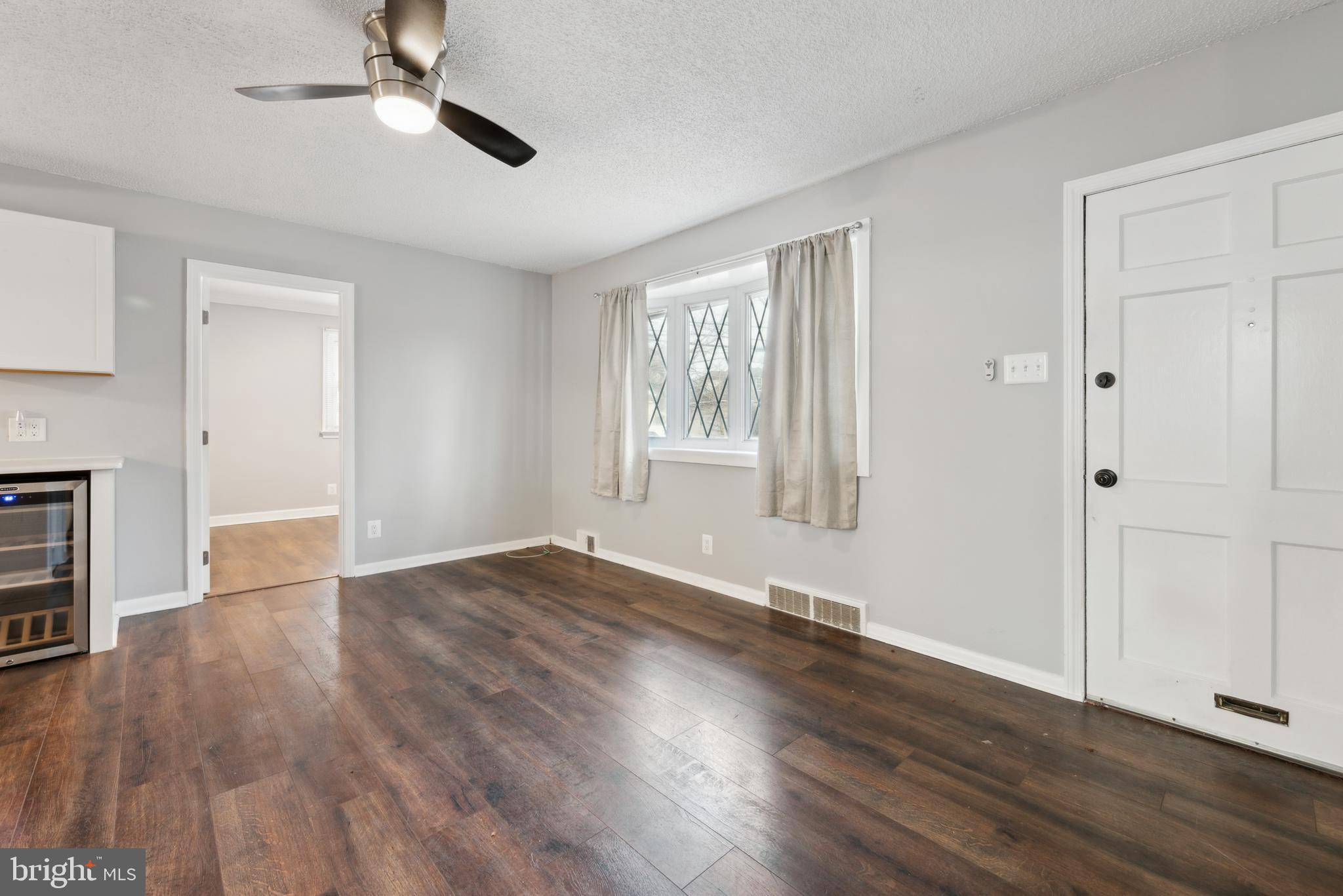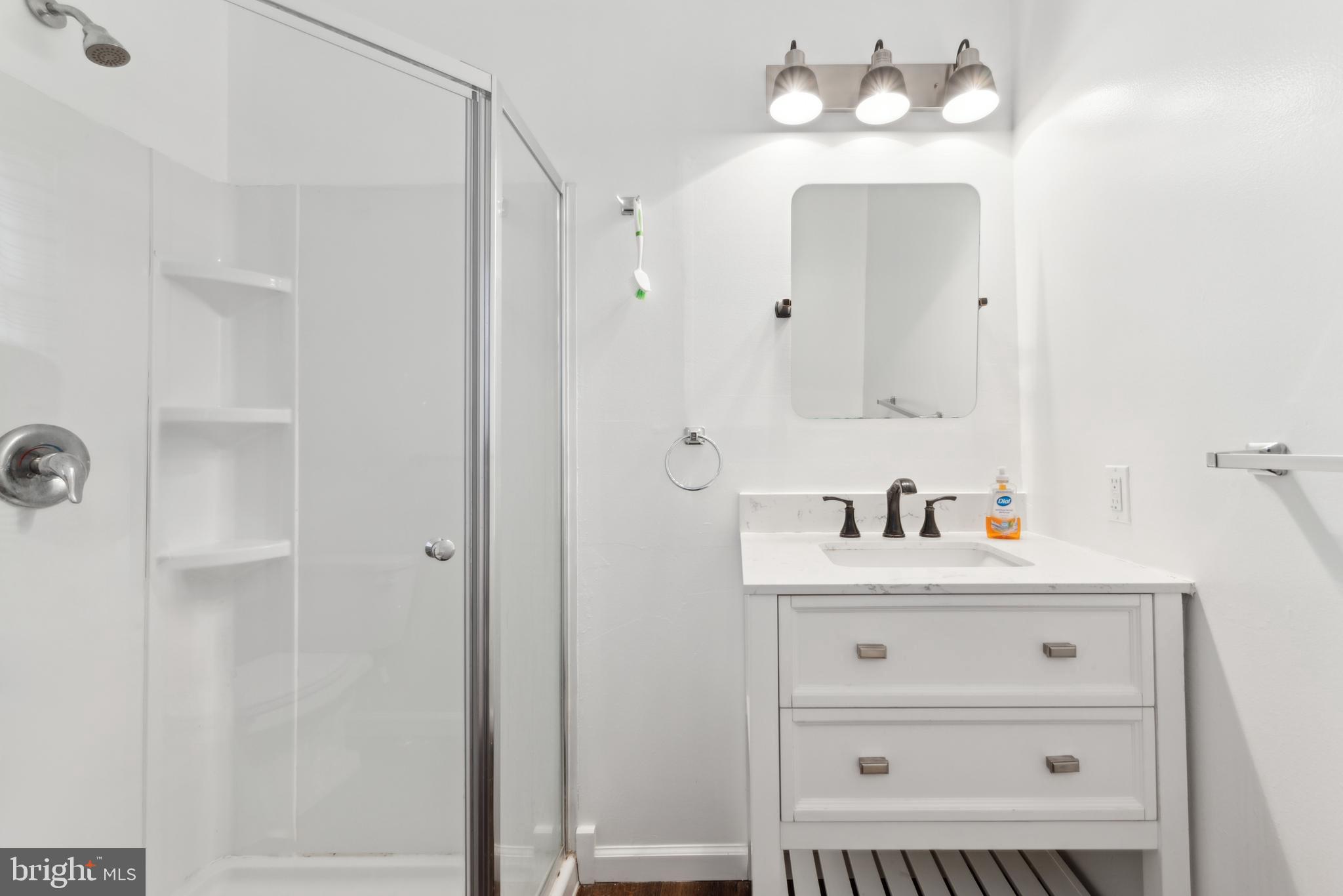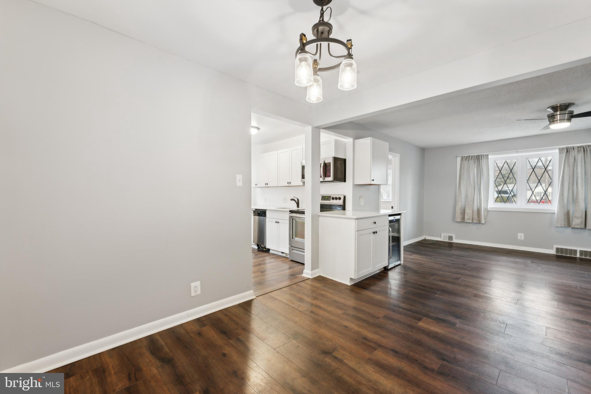 The modern kitchen boasts stylish white shaker-style cabinets, durable quartz countertops, and a full suite of appliances. Two beautifully designed full bathrooms on the main level add to the home's functionality and appeal.