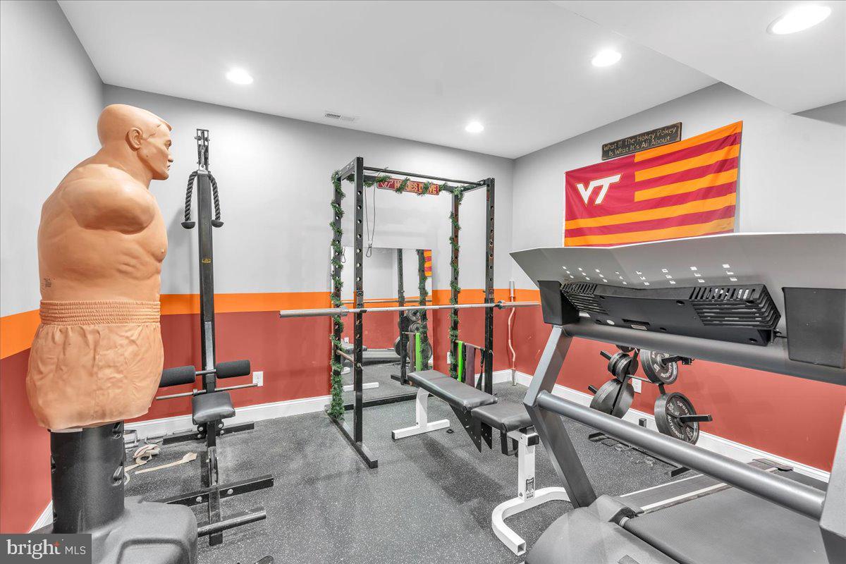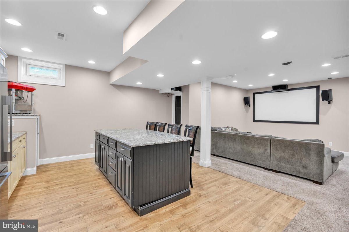 Prepare to be "wowed" by the luxurious amenities in the finished basement featuring 8' ceilings, an expansive bar area with a granite island and stool seating, additional cabinetry with granite countertops, a sink and keg refrigerator with side beer taps! The entertainment space includes a projector and a 110" screen, creating the perfect setting for hosting friends and family. Additionally, there is a dedicated gym/workout area featuring a rubber gym floor, offering the convenience of working out in the comfort of your own home!