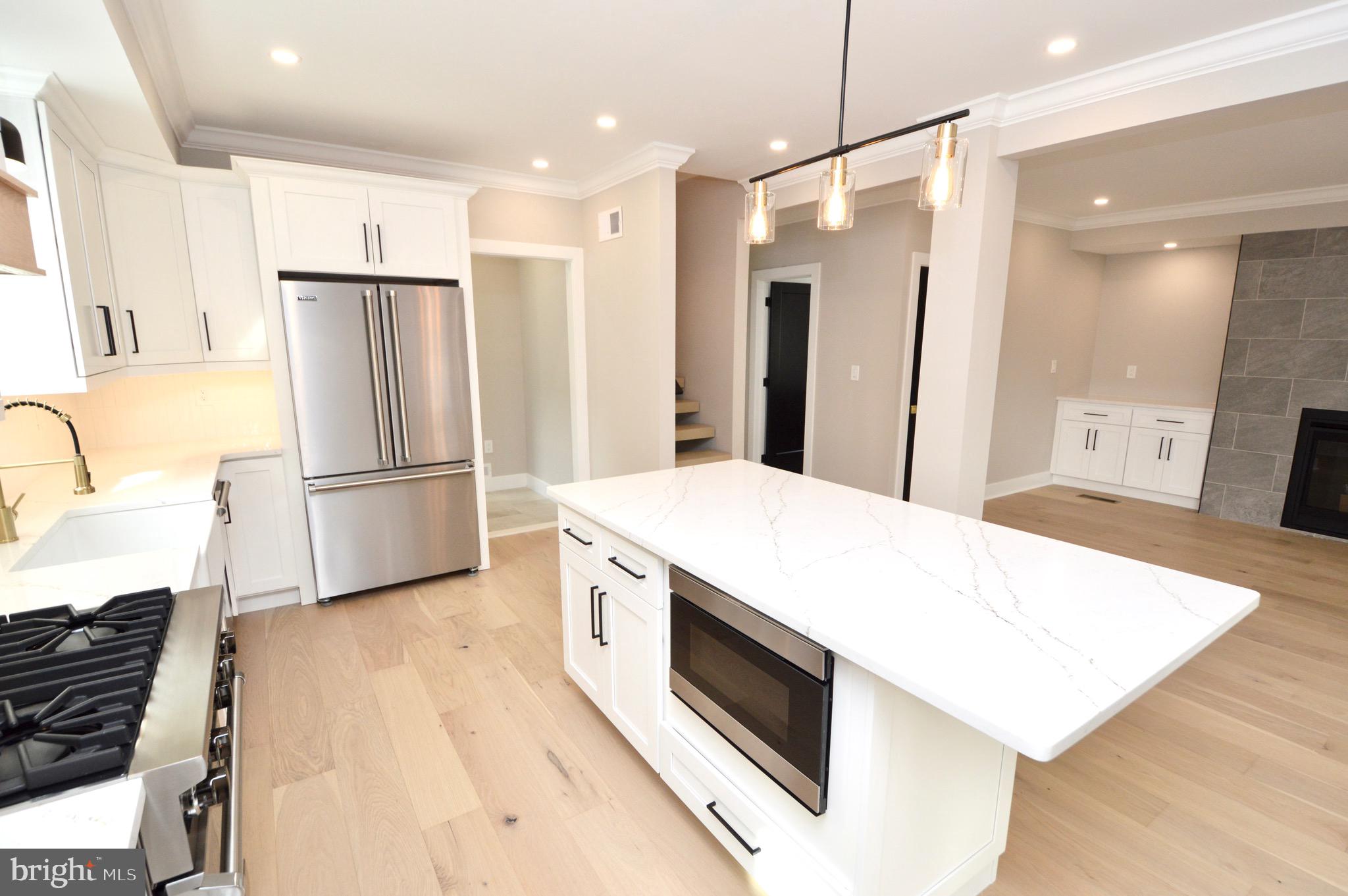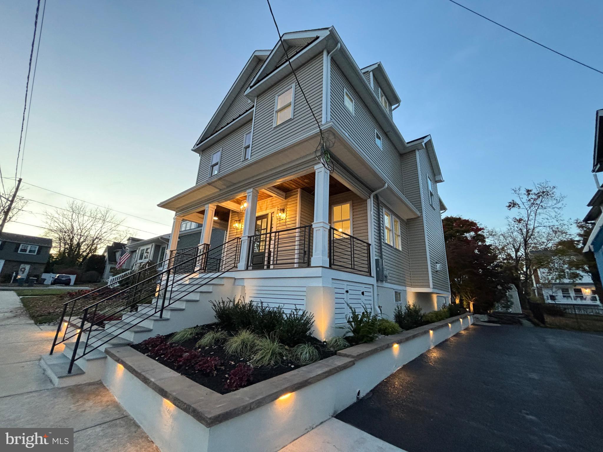 This is a beautifully renovated 4 bedroom, 4 bathroom home with great curb appeal, located in the heart of Haddonfield! The front porch is gorgeous with a wood ceiling and ceiling fan, wood flooring, wrought iron railings and raised flower beds illuminated with landscape lighting around the entire property! The house also features all new double hung windows, a new architectural shingled roof with metal standings seam, EP Henry paver patio and a new asphalt driveway! Inside, you're greeted by 7 inch wide hardwood floors and wrought iron railings throughout. The first floor has crown molding, fresh neutral paint and recessed lighting with a dry bar in the living room and a beautiful stone gas fireplace making this house a home. This is an open floor plan with an eat-in kitchen that leaves nothing to be desired. The kitchen features white shaker style cabinets, quartz countertops, an oversized pantry, white farm sink, wood panel decorative range hood, under cabinet lighting, stainless steel Viking appliance package and large island with seating. Head upstairs on the floating staircases with new decorative wall sconces that give this home so much character and enjoy a home office, ceilings fans, black interior doors and oversized closets in all of the bedrooms. The HVAC is brand new with dual zones and all new 200amp electrical service! The bathrooms feature new vanities with marble tops, modern mirrors with background lighting, new tile flooring, subway tile, and more. Continue further upstairs where the third floor is a fully finished living area with new carpeting. The attic has a new attic fan and spray foam attic insulation, which ensures comfortable temperatures throughout the entire house. Downstairs, is a fully finished basement with a new foundation waterproof system, and a 72 bottle wine room! This home also features an extra large shed with great storage space. This home is move-in ready and conveniently located near Kings Highway and Haddonfield-Berlin Road. Schedule your private showing today!