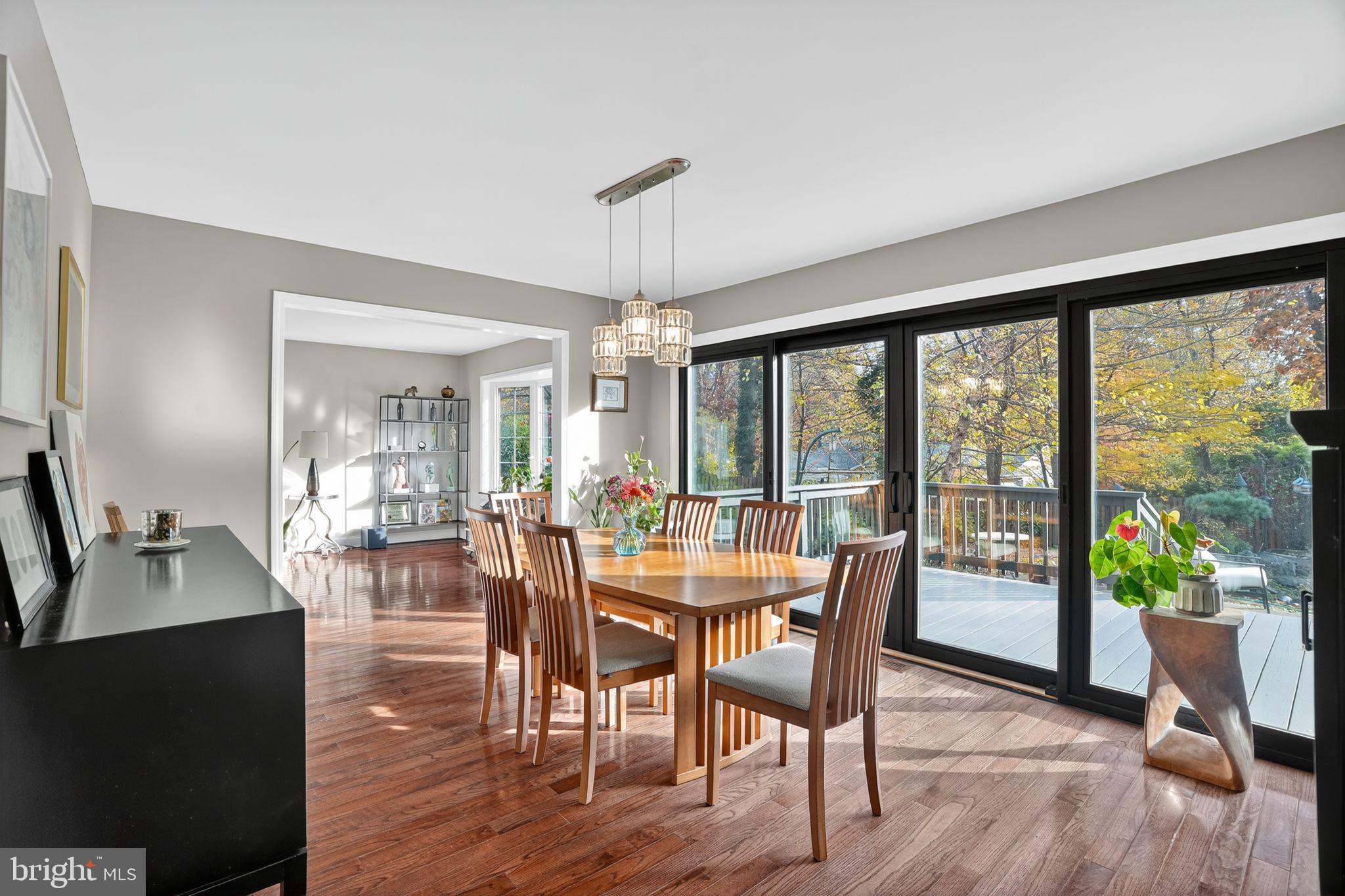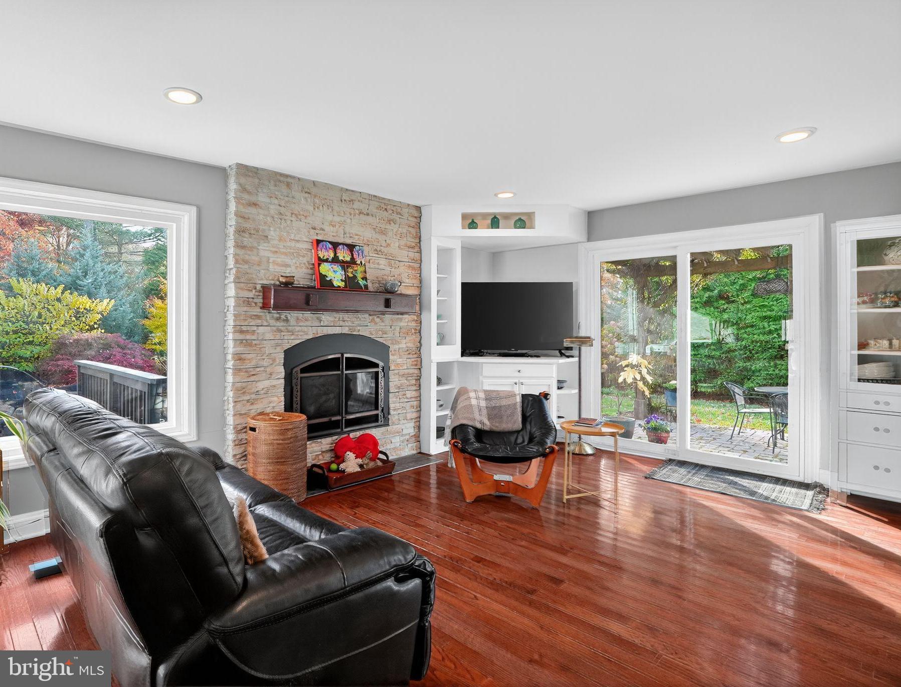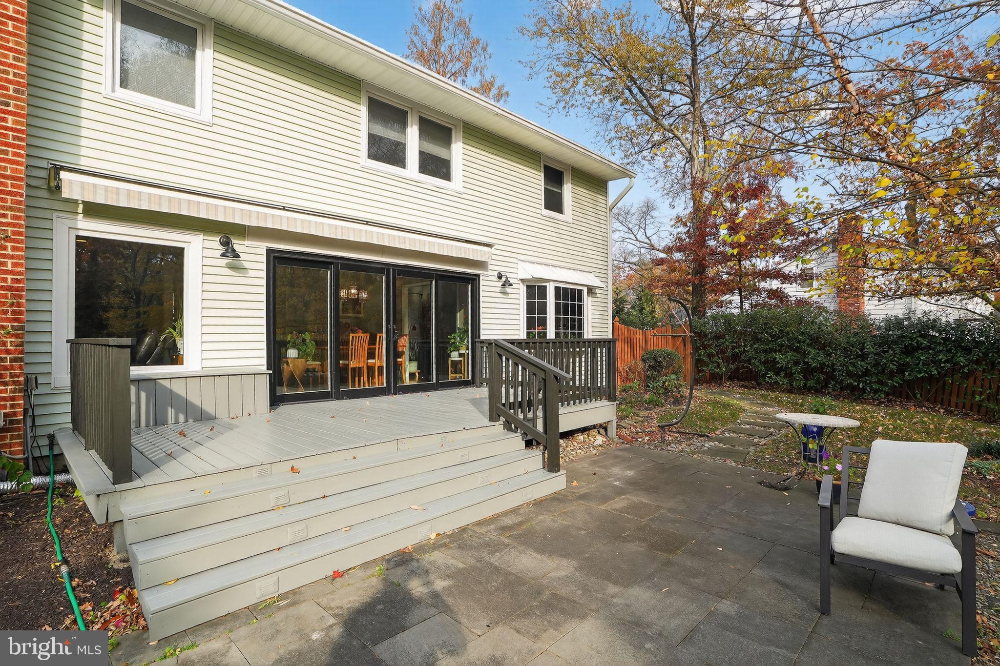 The spacious living room features a charming bow window, while the formal dining room opens to a large back deck with an automatic retractable awning--perfect for entertaining. The kitchen is a chef's dream, equipped with Bosch appliances, a double oven, gas cooktop, and ample cabinetry. Cozy up in the family room with a stunning stone gas fireplace.