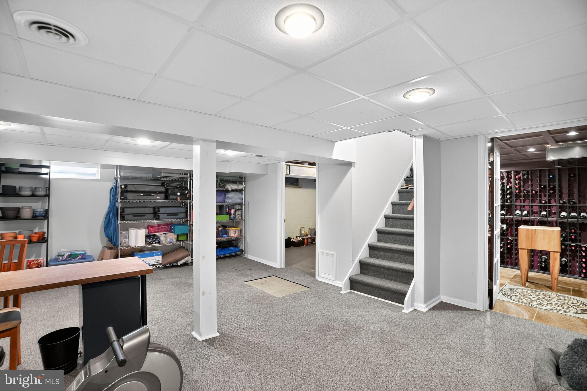 Additional highlights include first-floor laundry, a one-car garage, and a partially finished basement complete with a wine cellar. Upstairs, you'll find four generously sized bedrooms, including a primary suite with a full bath, double vanity, and tiled flooring.