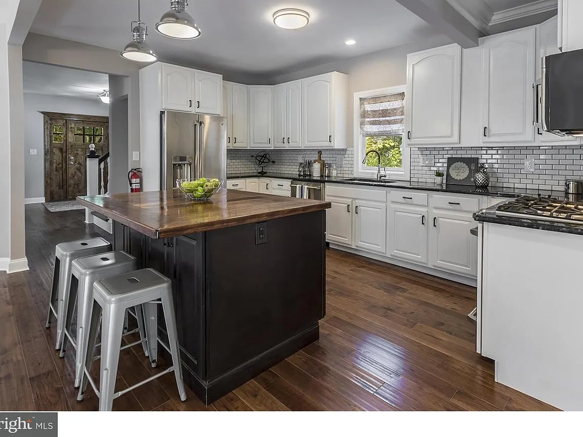 Rare find in beautiful Haddonfield! Perfect combination of old charm with all the modern amenities that everyone loves today. Beautifully remodeled and updated with amazing finishes throughout. The large kitchen has high-end stainless appliances, tile back splash, custom island with a wood top and gorgeous granite counter tops. The kitchen is open to the massive family room with a coffered ceiling and fireplace. The large Master Bedroom has a cathedral ceiling and a large walk-in closet. The Master Bath is something out of a magazine with a large tiled shower and tile flooring. The 3rd floor is the 5th bedroom that can also be used as a playroom or a study. There are 2 laundry areas in this home with one on the 2nd floor and the other in the basement. The basement is large and can be used as a flex space or storage. The front porch wraps around the home and leads to a large deck off the back overlooking the backyard. Truly an amazing home!