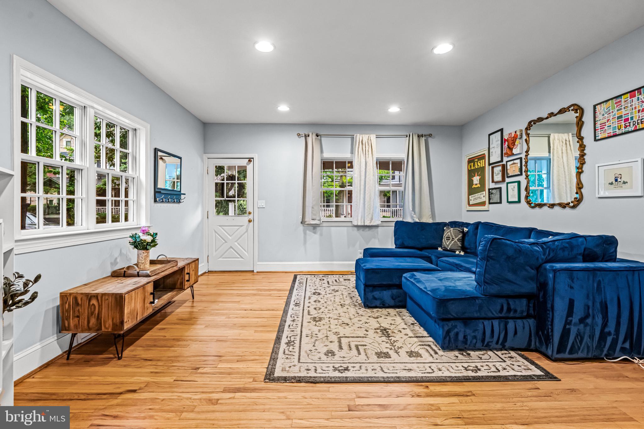 As you step inside, you're greeted by a sun-drenched living room that flows seamlessly to the dining room. The spacious kitchen has a peninsula island for added counter space. A conveniently located powder room is right off the kitchen. There is also space for a mudroom and access to the beautifully renovated back porch (completed in 2024) which adds to the functionality and charm of the main level.