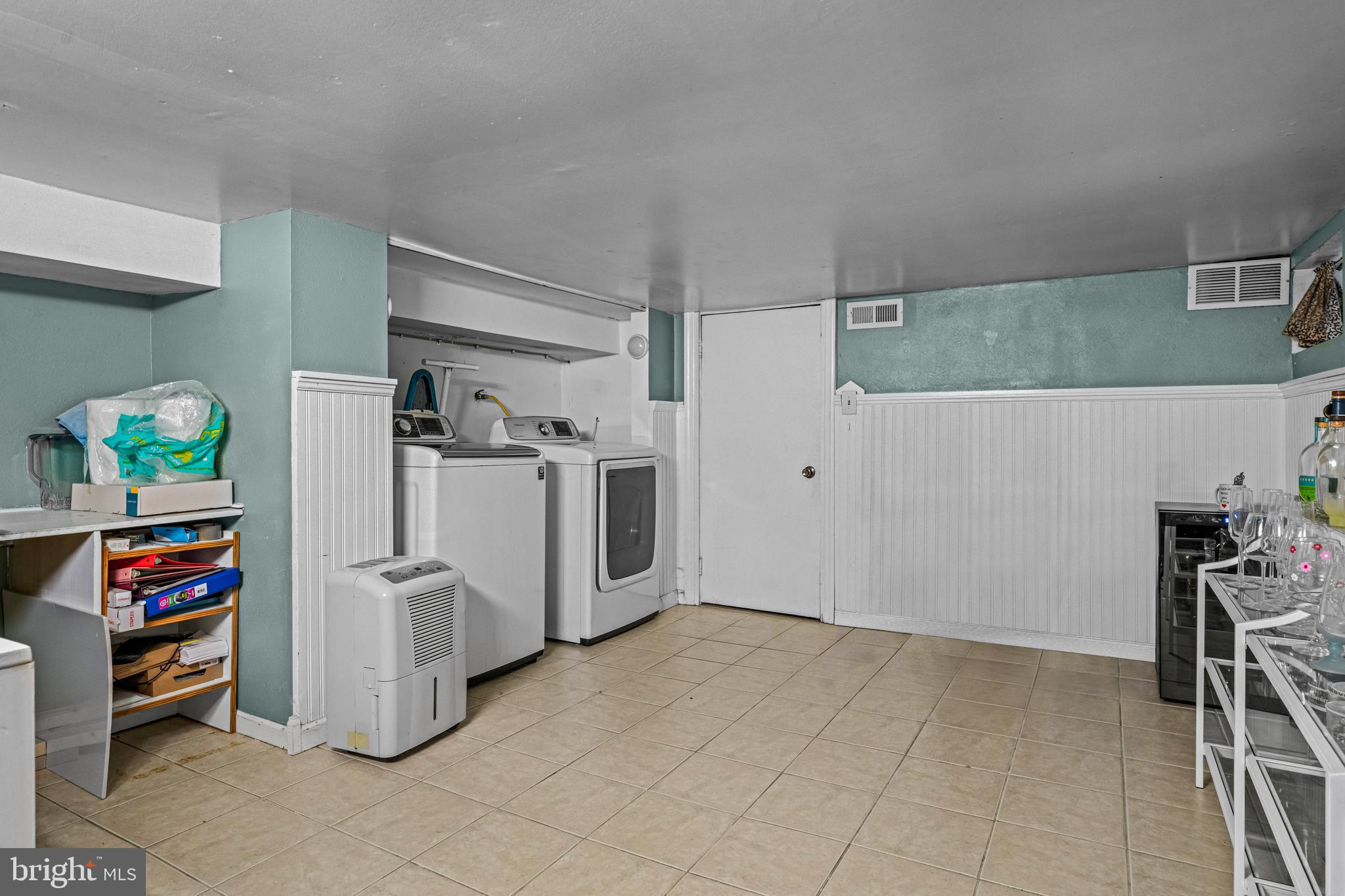 The partially finished basement houses the laundry area and has ample storage space.