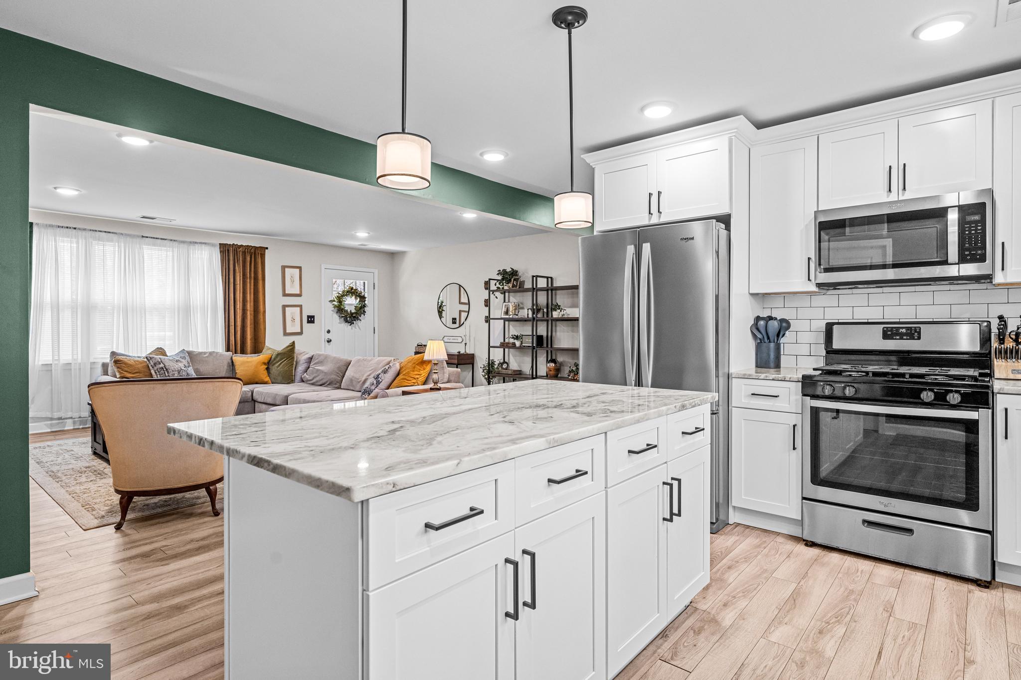 Welcome to your dream home at 803 Murray Avenue in Cherry Hill. Step inside to discover a spacious open concept floor plan with a cozy living area boasting a warm and inviting gas fireplace. The living room is open to the kitchen, which is perfect for entertaining all your guests. The kitchen is a chef's delight, featuring ample storage and a large island that serves as both a meal prep station and a gathering spot. Additionally, the kitchen boasts stainless steel appliances, white cabinetry and a subway tiled backsplash. The kitchen seamlessly leads into the expansive dining room; perfect for hosting memorable dinners.